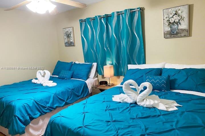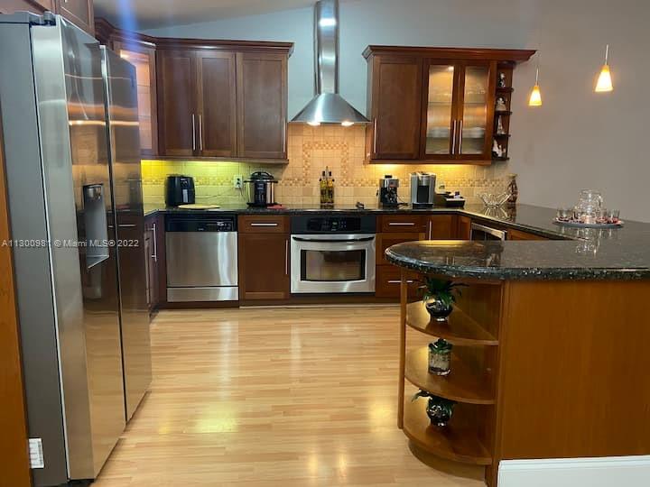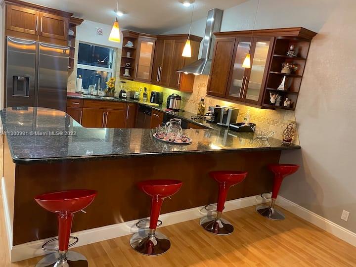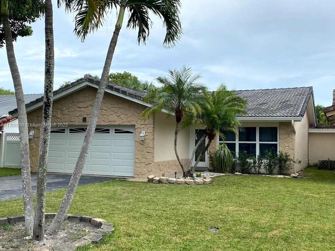 Great location! This 4 bedroom split plan features a gorgeous remodeled bathroom, new closets in two of the bedrooms, a kitchen with granite & stainless & LOTS of storage, freshly painted exterior impact glass windows & sliders, and an inside laundry room with a new washer and dryer, pull down stairs to attic, knockdown textured ceilings in great room, exterior storage closet, open remodeled heated pool with child fence & salted-water system & travertine deck & awning to enjoy outdoor living at its best. Garage with new impact door. Walk to parks, shopping and restaurants. Roof 2006, A/C 2019.