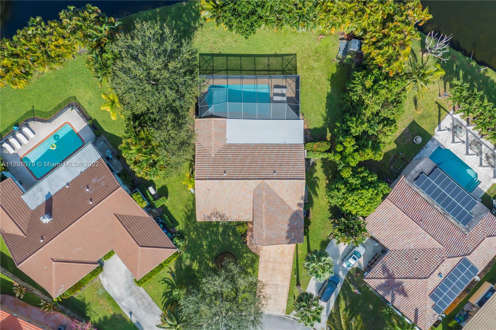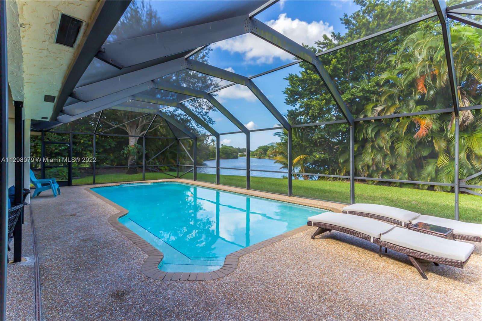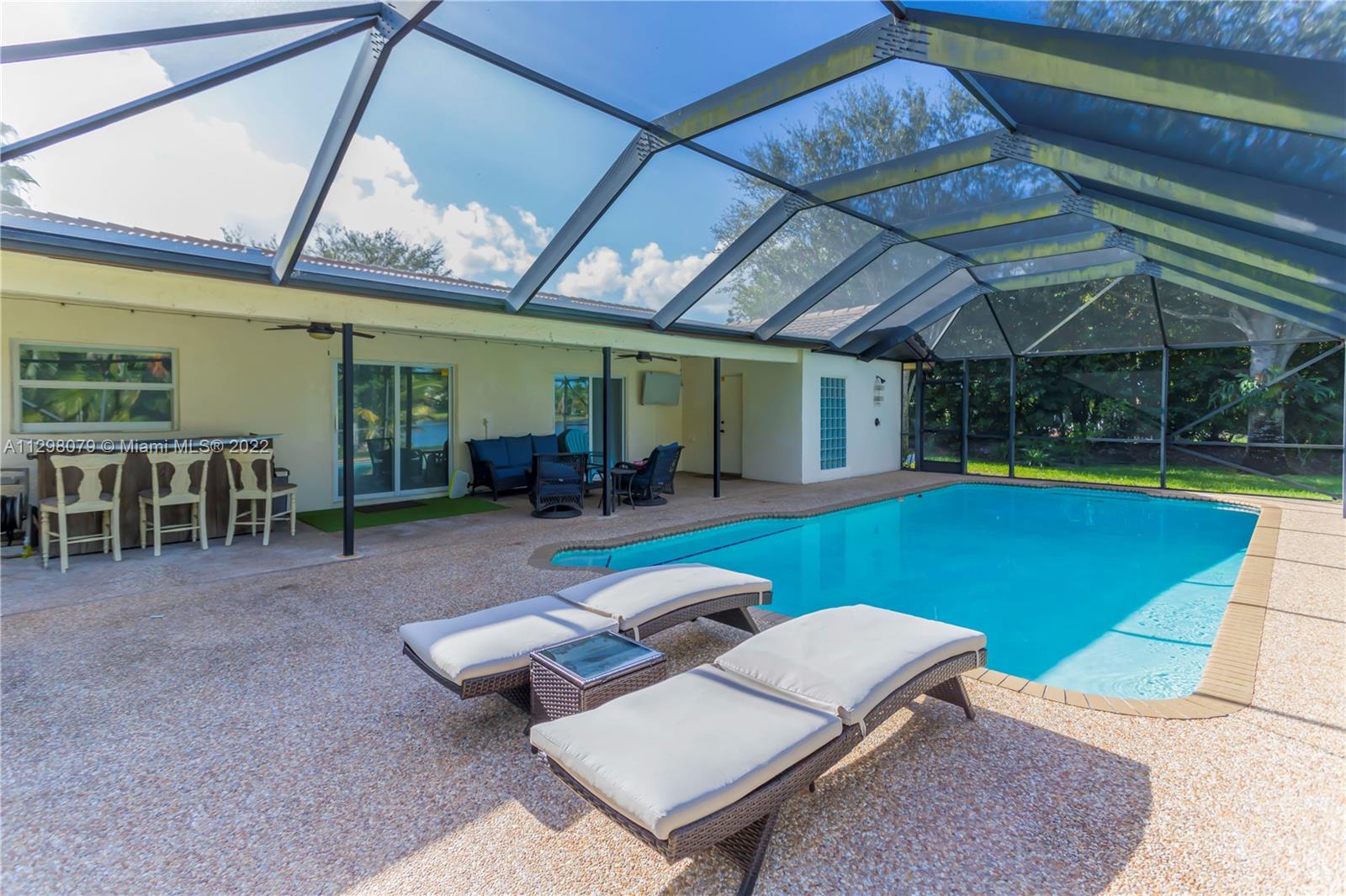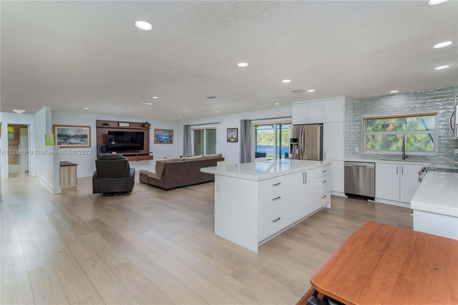 Beautiful 3 bedroom/2 bath lakefront home with a salt water pool. Completely remodeled home features luxury plank flooring, recessed lighting, hurricane impact windows/doors. Kitchen features all new SS smart appliances and quartz countertops. As you enter into an open living room with impact sliding glass doors taking you out to the screened-in pool area with your very own surf bar & outdoor shower. The amazing landscaping and tall trees provide ultimate privacy. Completely new irrigation system. All bedrooms feature ceramic faux-wood flooring. Master bathroom highlights a large marble-lined shower with an oversized shower and a modern sink w/ granite countertops. Brand new AC. Alarm system with exterior cameras. Washer & Dryer do not convey.