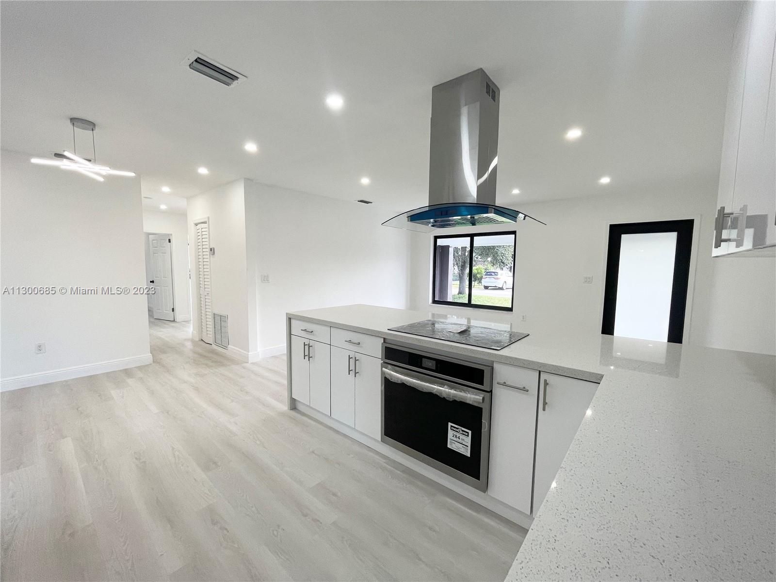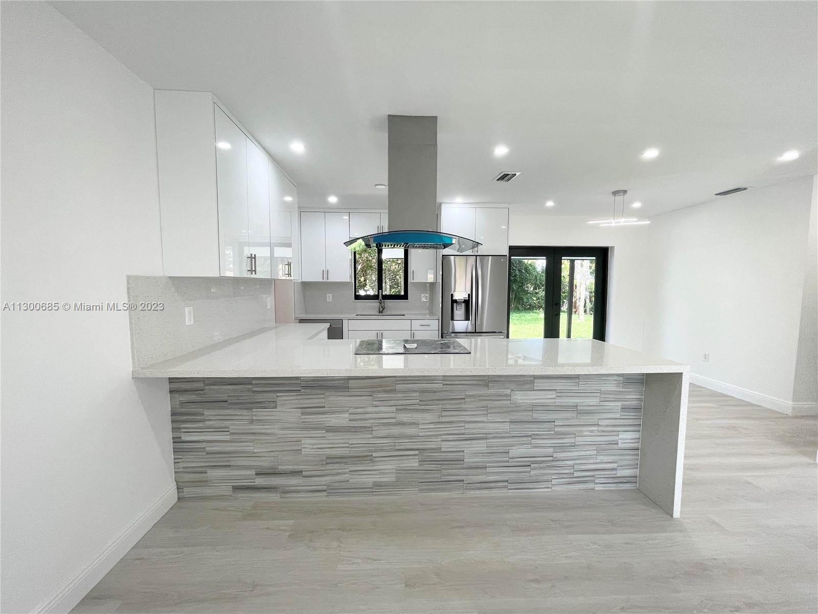 Completely updated 3/2 home in a beautiful Hialeah residential area. With almost 10,000 sf lot, this home features a new modern kitchen, white quartz countertops with a waterfall island, stainless steel appliances, ceiling-mounted range hood, white acrylic cabinets. LED lighting. Porcelain tile floors. Interior doors and closet doors. Updated bathrooms with vanities. New interior and exterior freshly painted. Covered parking. New 2022 Roof with 3D shingles. New car garage door. New impact windows and doors. Large backyard offers a covered terrace with new outdoor ceiling fans. Newly planted lawn with functioning sprinkler systems.THIS IS A SINGLE FAMILY HOME WHICH CAN BE USED AS A 3/1 AND 1/1 WITHOUT MAKING ANY ILLEGAL CONVERSIONS. CASH ONLY OR NO APPRAISAL CONTINGENCY.