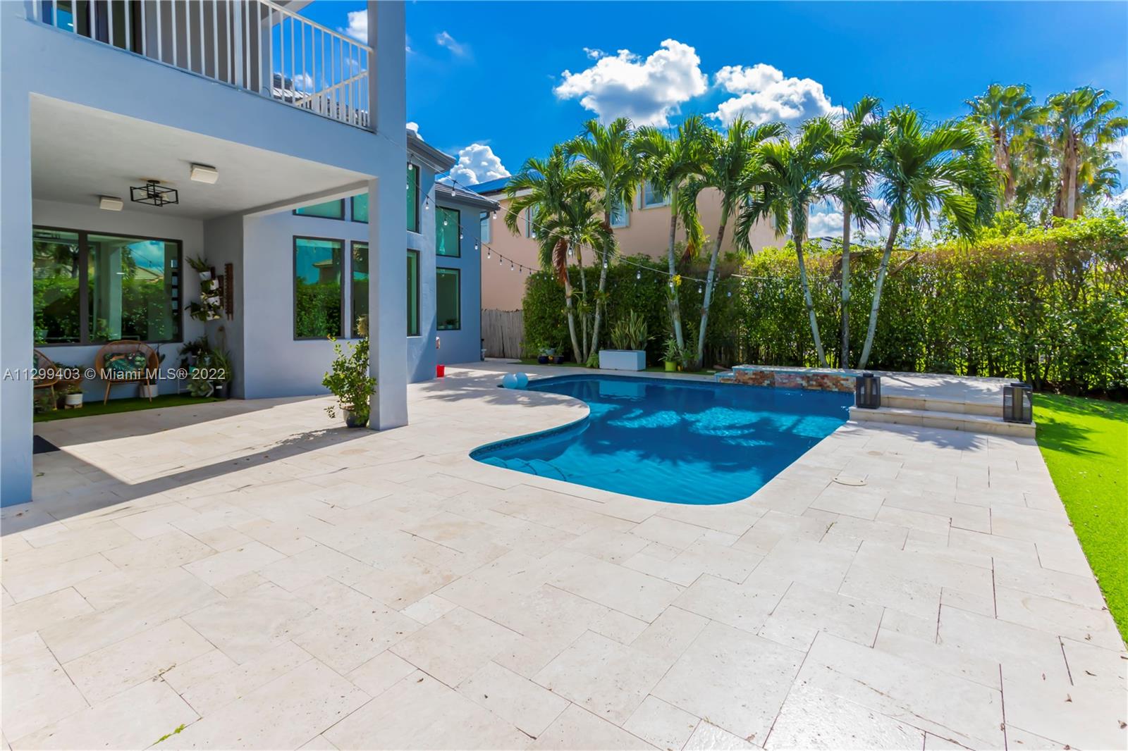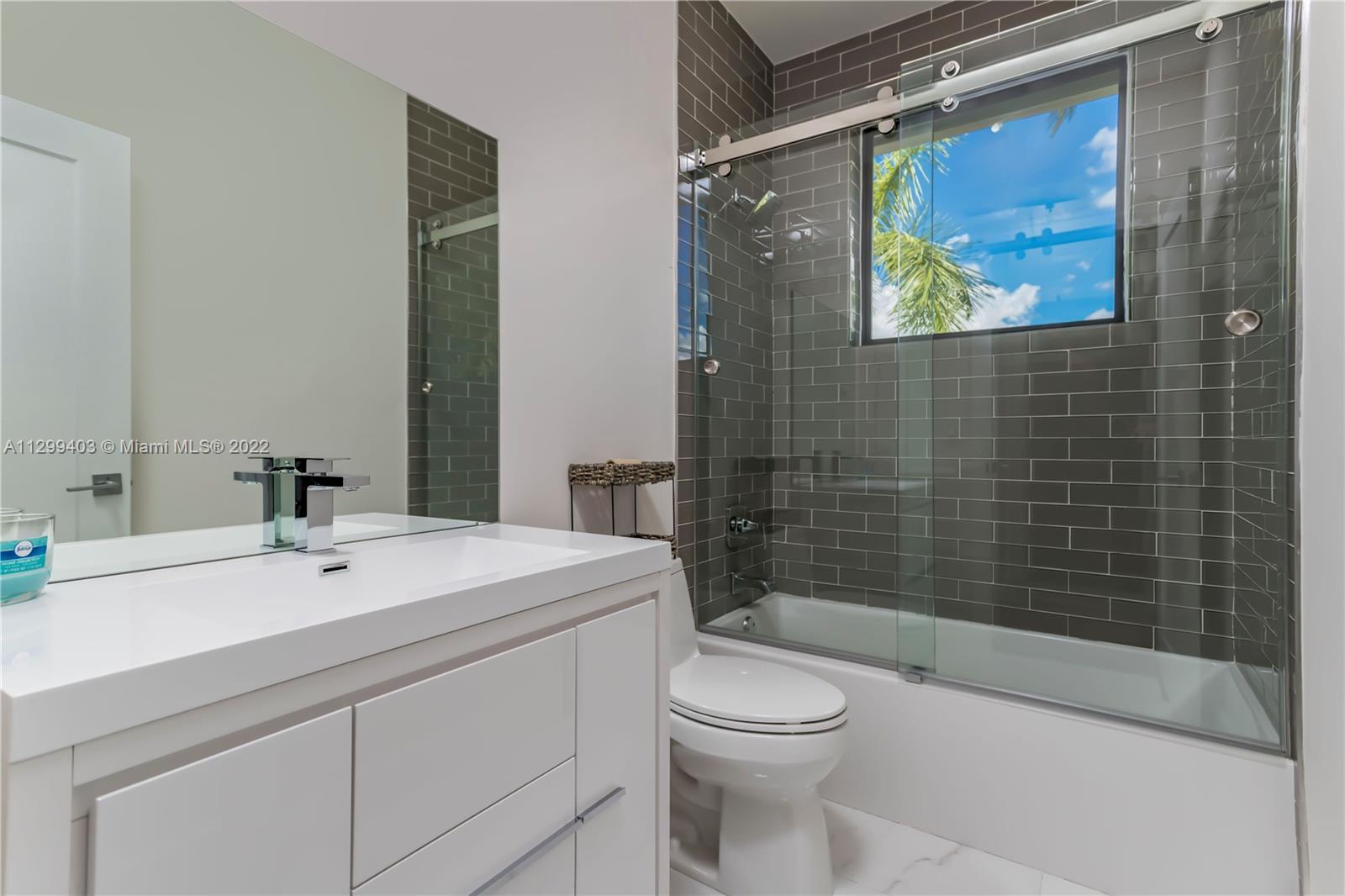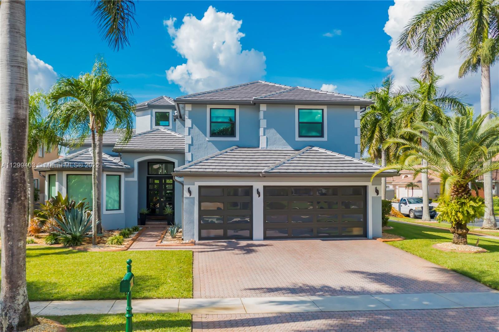 Absolutely gorgeous! Completely remodeled in a modern style. All new Roof, new impact windows & doors. New modern kitchen w soft close doors & drawers, new SS appliances & exhaust hood, New porcelain flooring on lower level. New modern glass railing on stairs. All remodeled bathrooms w gorgeous new vanities, lights, rolling shower doors, tile, floors & toilets. All new light fixtures throughout. Freshly painted interior and exterior. New modern garage doors. Pool recently resurfaced. Completely private backyard w lush landscaping. A covered area to entertain by the pool. No expense has been spared on this home. Ready to move in today!