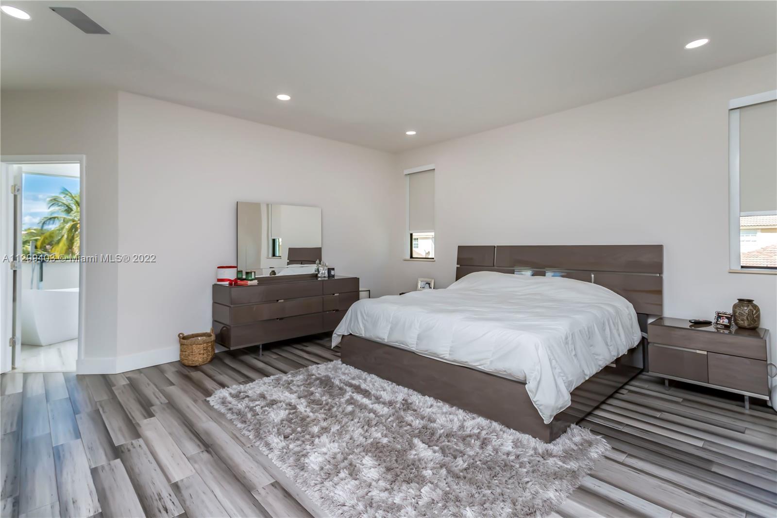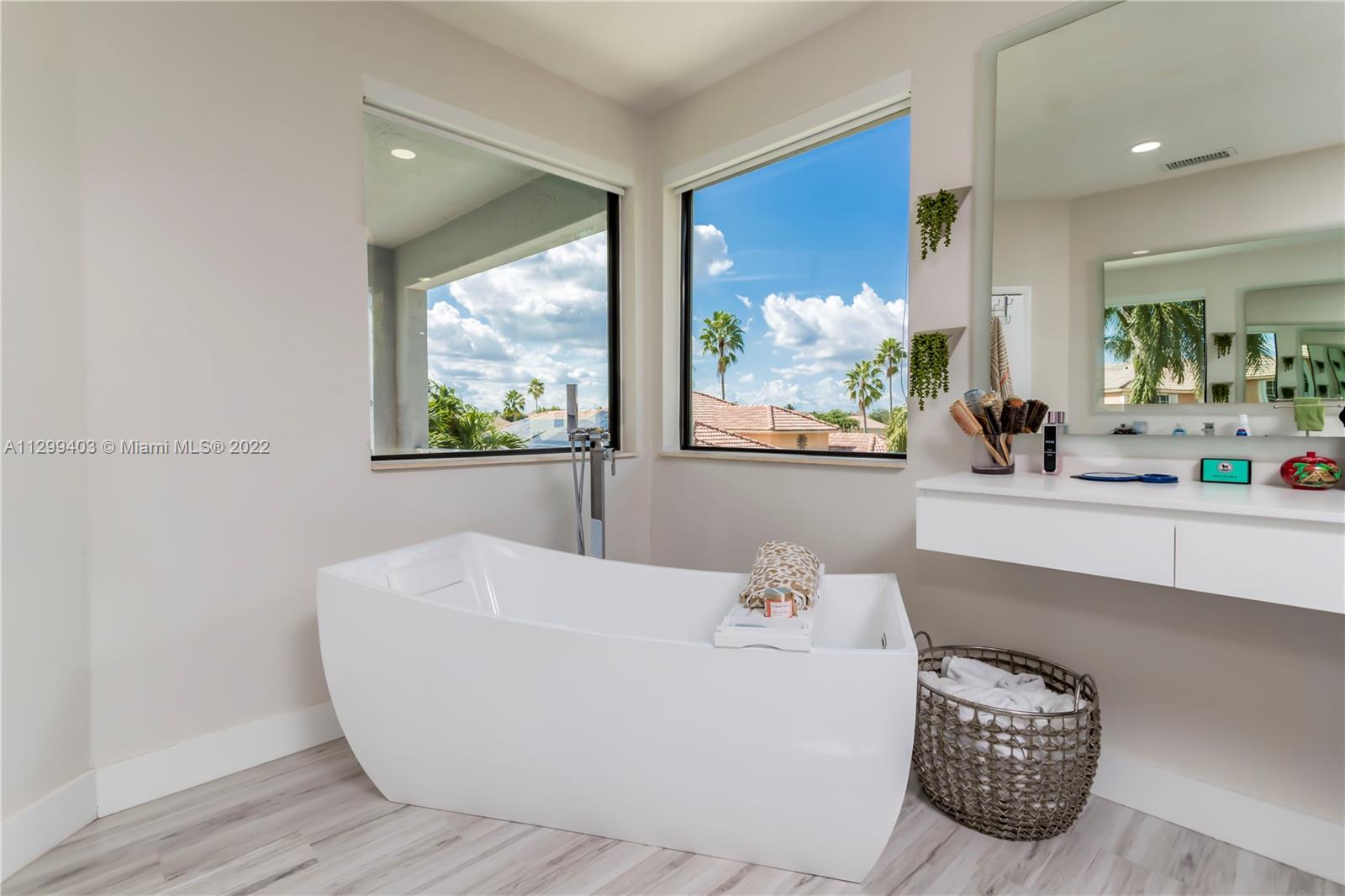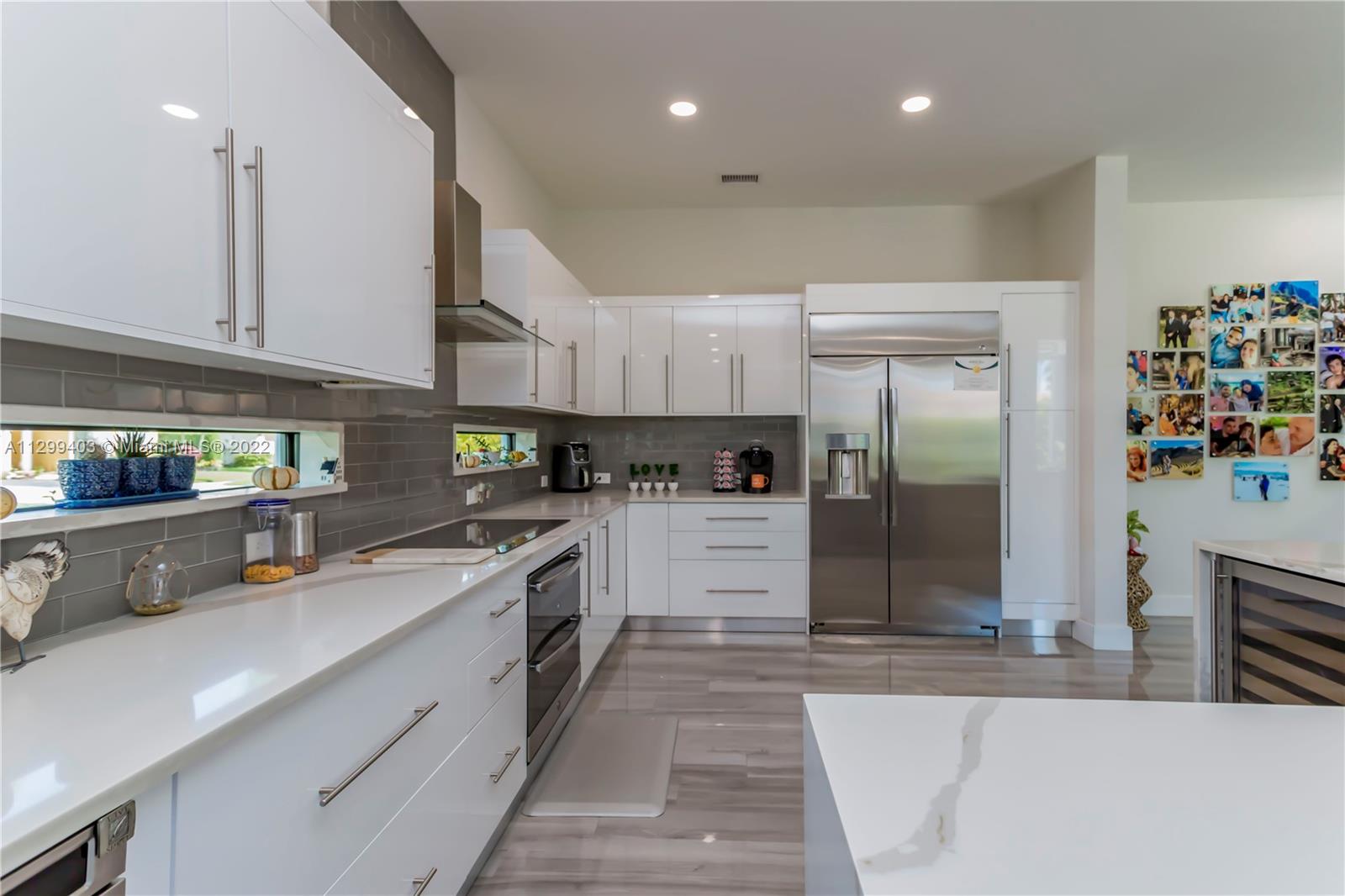 Absolutely gorgeous! Completely remodeled in a modern style. All new Roof, new impact windows & doors. New modern kitchen w soft close doors & drawers, new SS appliances & exhaust hood, New porcelain flooring on lower level. New modern glass railing on stairs. All remodeled bathrooms w gorgeous new vanities, lights, rolling shower doors, tile, floors & toilets. All new light fixtures throughout. Freshly painted interior and exterior. New modern garage doors. Pool recently resurfaced. Completely private backyard w lush landscaping. A covered area to entertain by the pool. No expense has been spared on this home. Ready to move in today!