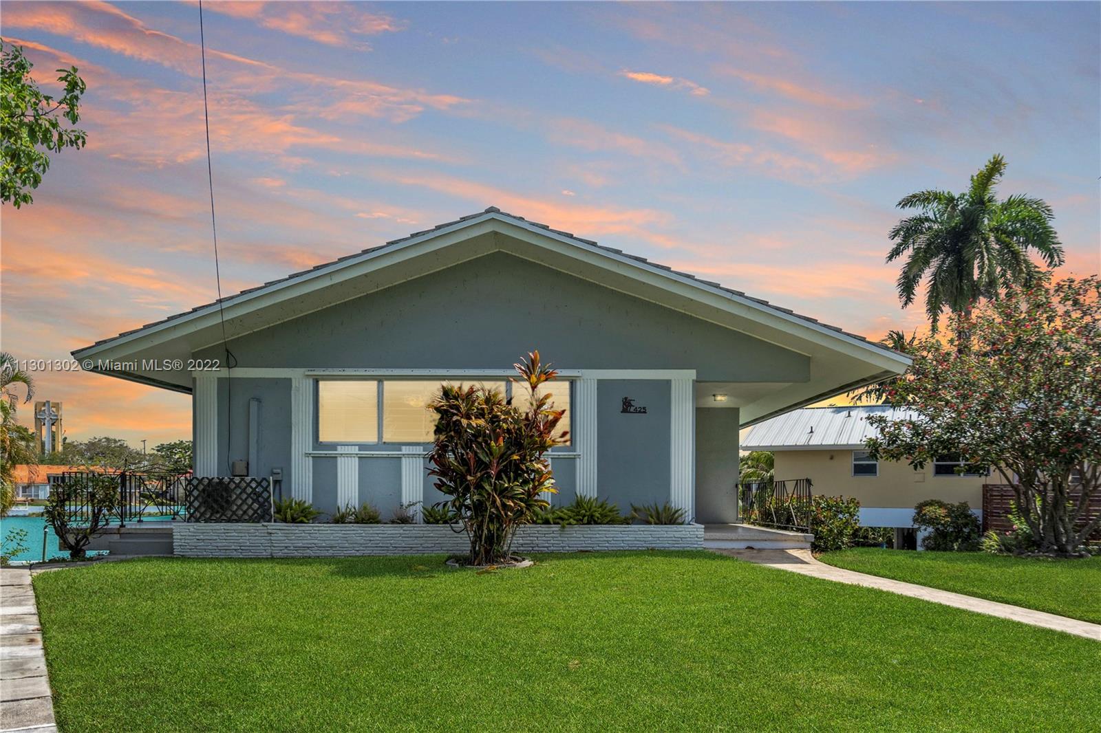 Miami Shores Lakefront home. Rare opportunity to own a Miami Shores home under $1m on Mirror Lake. 1950’s Mimo style home with carpet over Terrazzo floors. 3 bedroom 2 bath home with 1462SF of AC space plus a huge downstairs covered patio/2 car carport facing the lake makes a fantastic multi-purpose area. Total of 2,613 SF as per county records. Master bedroom overlooks the lake with additional water views from the kitchen and living areas. Room for pool. Last tented in 2019 for termites. 2002 full roof replacement. Natural gas provides hot water. Not in a flood zone! Centrally located in Miami Shores and walking distance to local private and public schools. Enjoy kayaking and paddleboarding right from your own backyard. A great Place to call home!