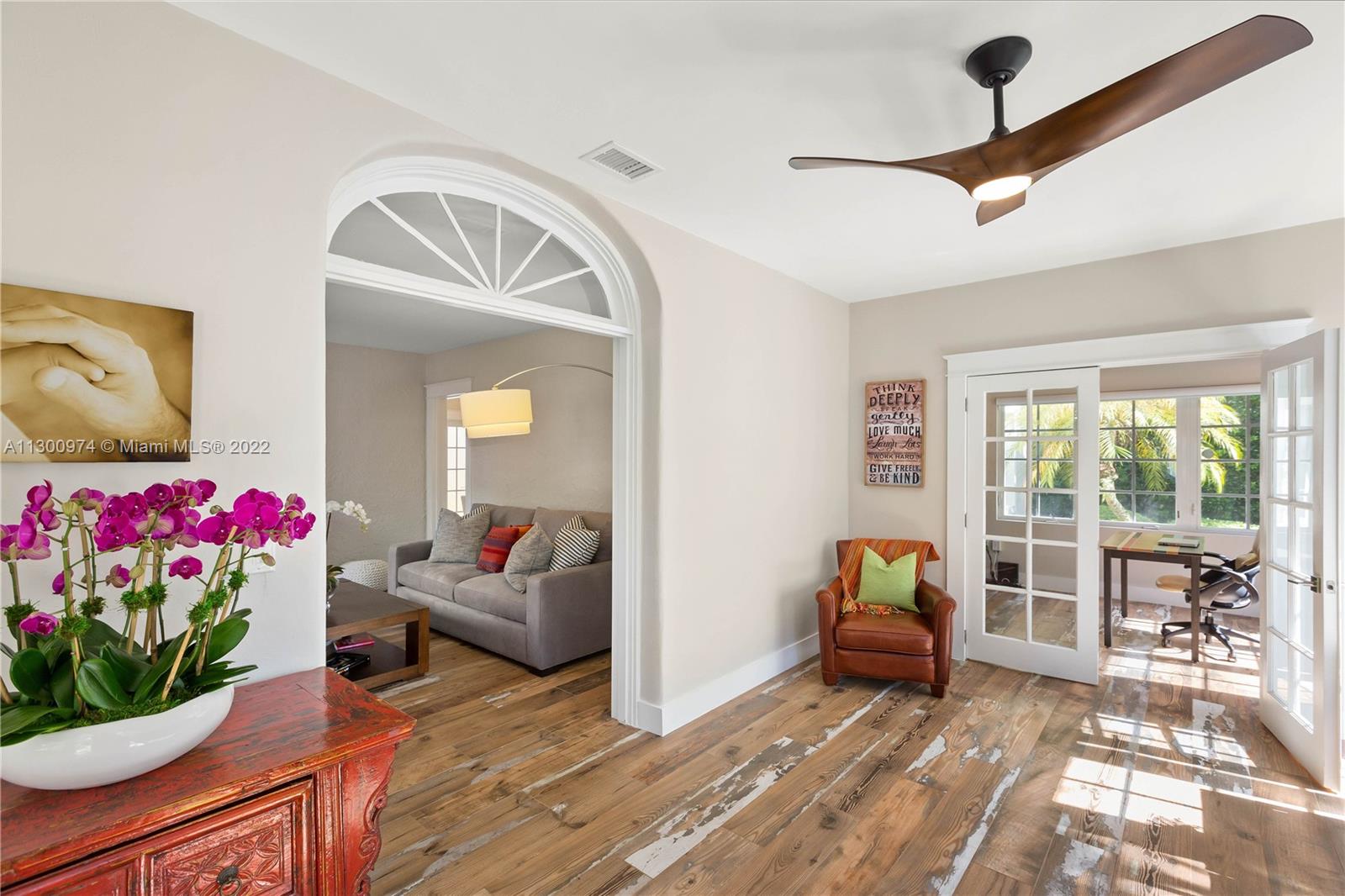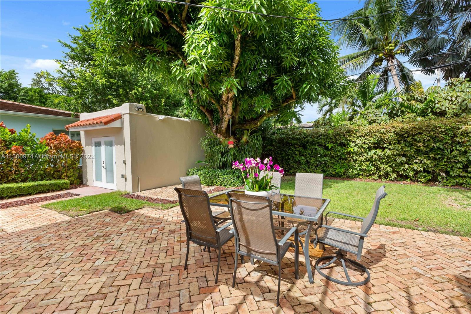 Charm and beauty reside on Alesio Avenue. Sunlight pours into this beautiful home, just blocks from all that downtown Coral Gables has to offer shopping, restaurants & culture. The property features a 3/2 main house with a detached 1/1 cottage. Great layout, fireplace, and arched transitions complement modern enhancements like new A/C, impact windows, and updated kitchen and bathrooms. It has room for a pool, has a large foyer and fruit trees. The updated kitchen has a built-in Breakfast nook with views of the yard. The professionally landscaped yard includes a Chicago Brick patio, driveway, and carport. This Old Spanish charmer will have you at “Hello!”