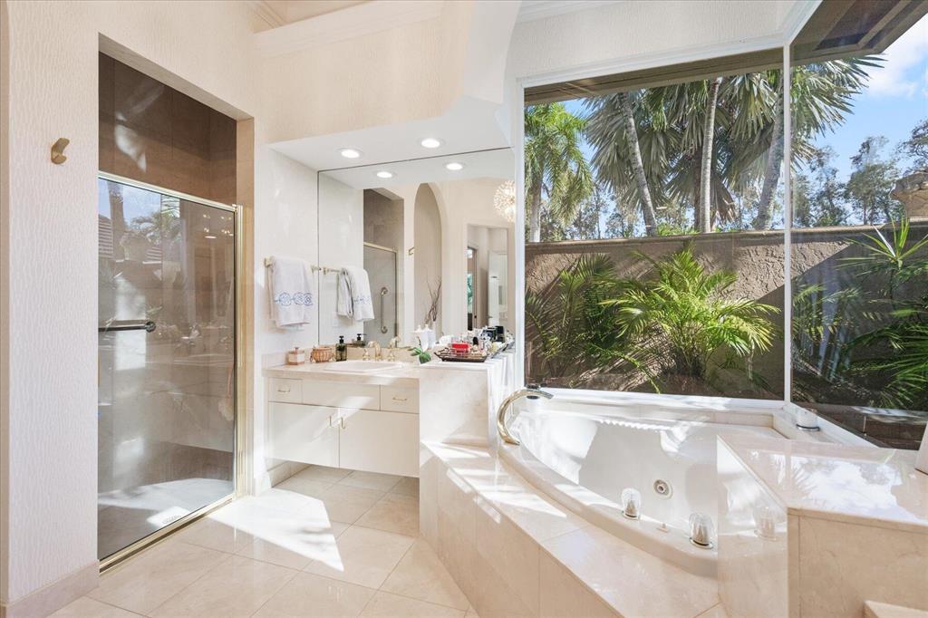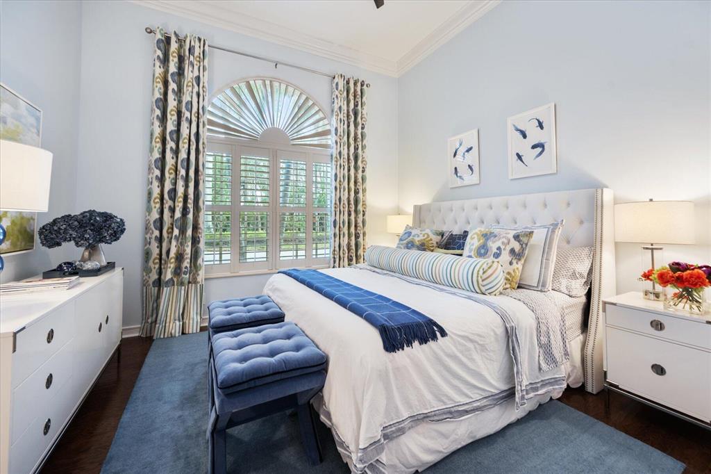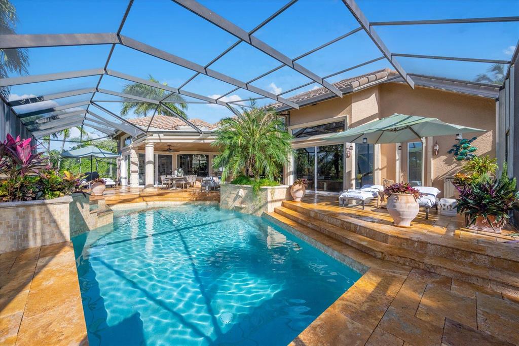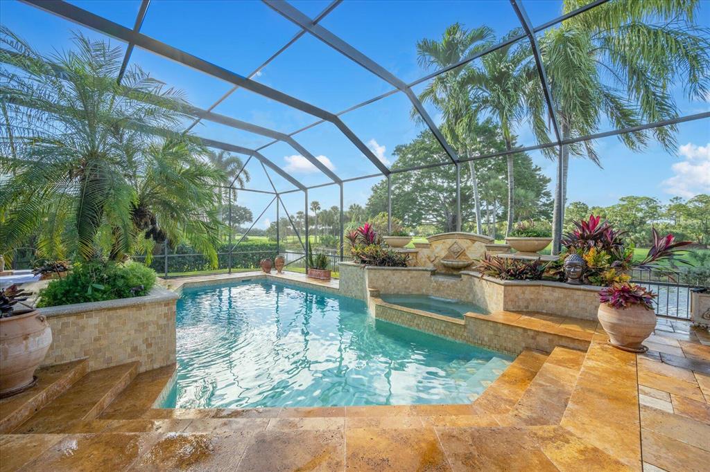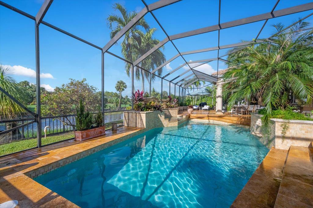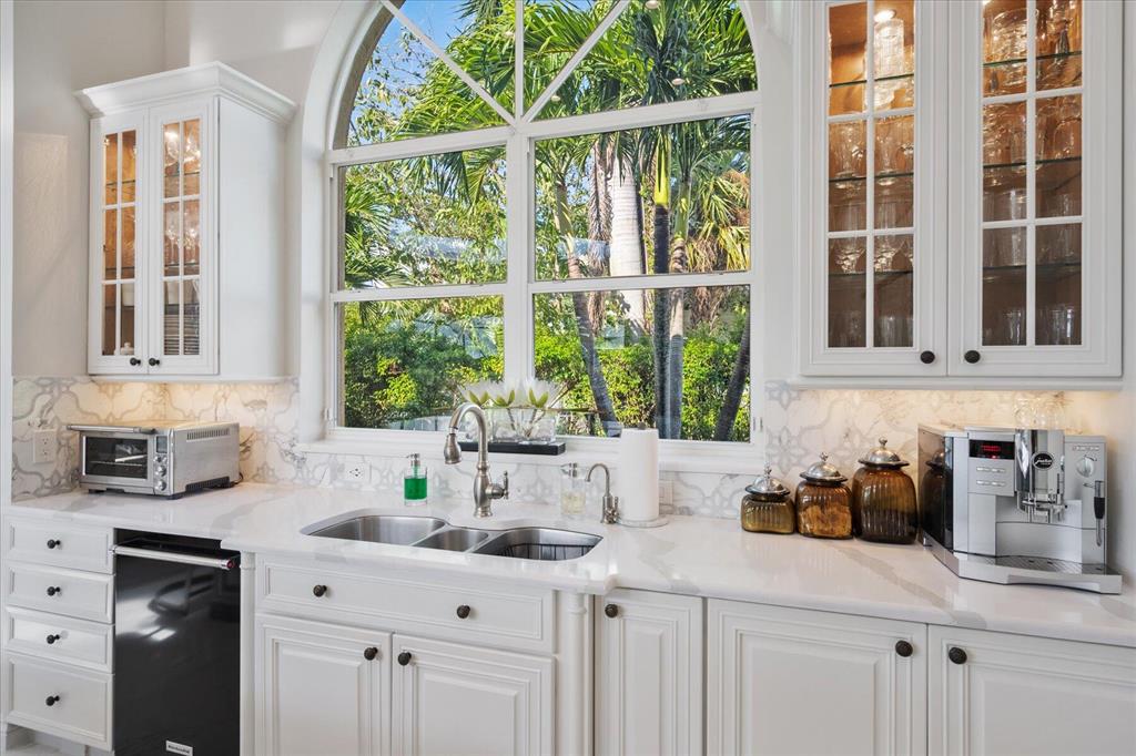One of a kind expansive views of water & 13th and 14th fairways along Breakers Rees Jones course in Breakers West! This lovely custom home offers 3 Bedrooms with ensuite Baths + beautiful Office/Library, and 2 car + golf cart garage. Designer-renovated over the past 18 months, updates include gorgeous oversized porcelain flooring in main living areas, wood flooring in bedrooms/office, extensive millwork including coffered box ceilings and floor-to-ceiling bookcases with fireplace in Living Room. Sophisticated Restoration Hardware chandeliers and wall sconces elevate the lighting throughout. The chef's kitchen is a stand-out with its grey & white backsplash, white quartz countertops and lg center island with new Wolf cooktop w/downdraft, wine refrig and counter seating.