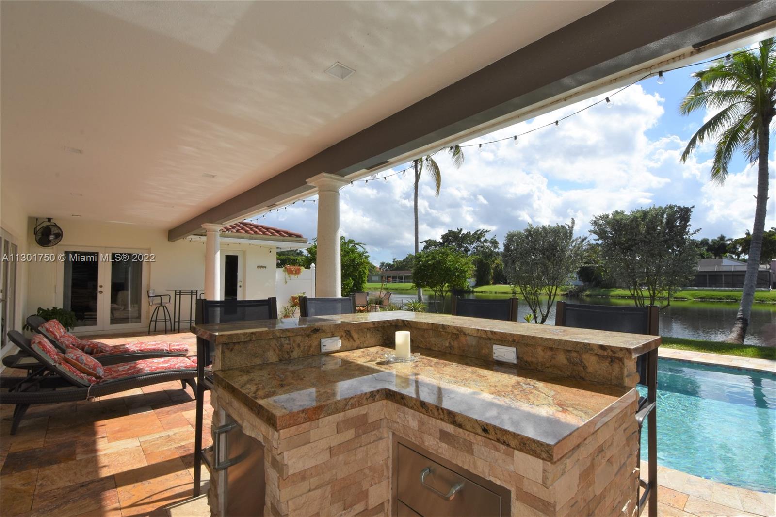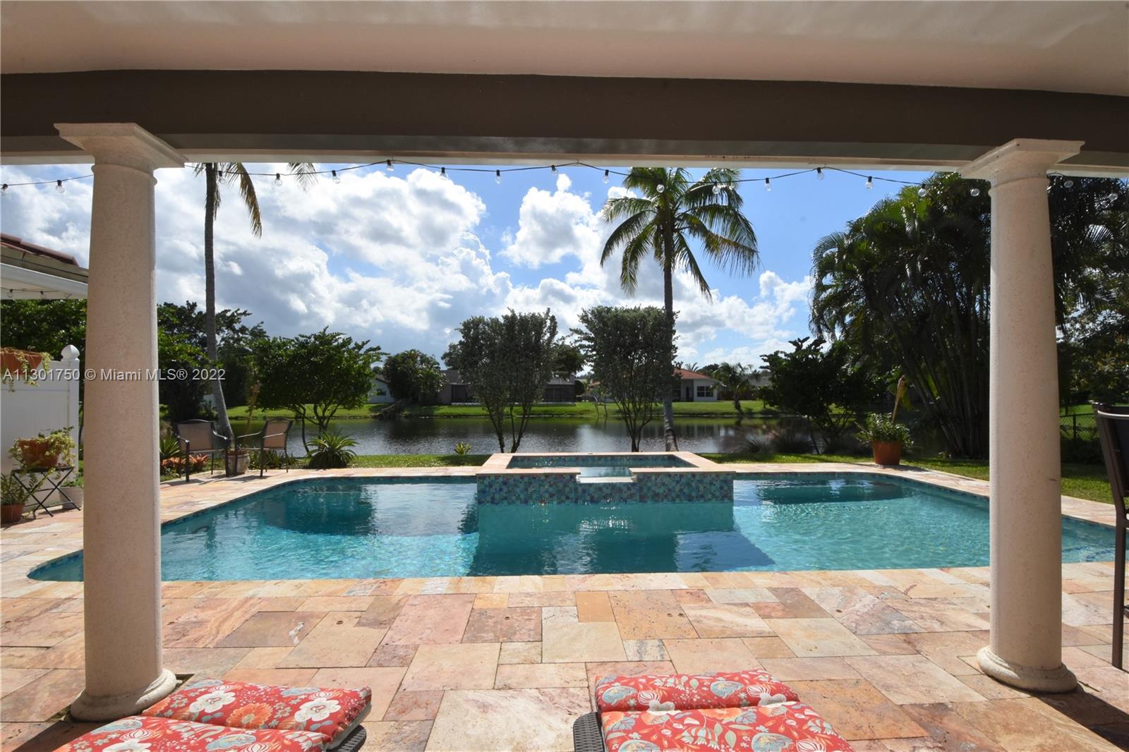 So much room to live, work & play! As you approach this sprawling lakefront home with its lush landscaping, its character is quite evident! Updated Kitchen with White Quartz Countertops, Stainless Steel Appliances, and lovely Breakfast Bar that lends itself to open concept living! Custom-made Wall Unit in Family Room, with Crown molding, recessed lighting in many living areas and updated Bathrooms throughout add to the attraction of this home. A spacious Family Room and a separate Den affords everyone in the family plenty of their own space - especially if you work from home! The Crown Gem is the completely renovated Patio and Saltwater Pool with Jacuzzi that overlooks the lake - enhanced by a magnificent Summer Kitchen - an entertaining dream, just perfect for all your social gatherings!