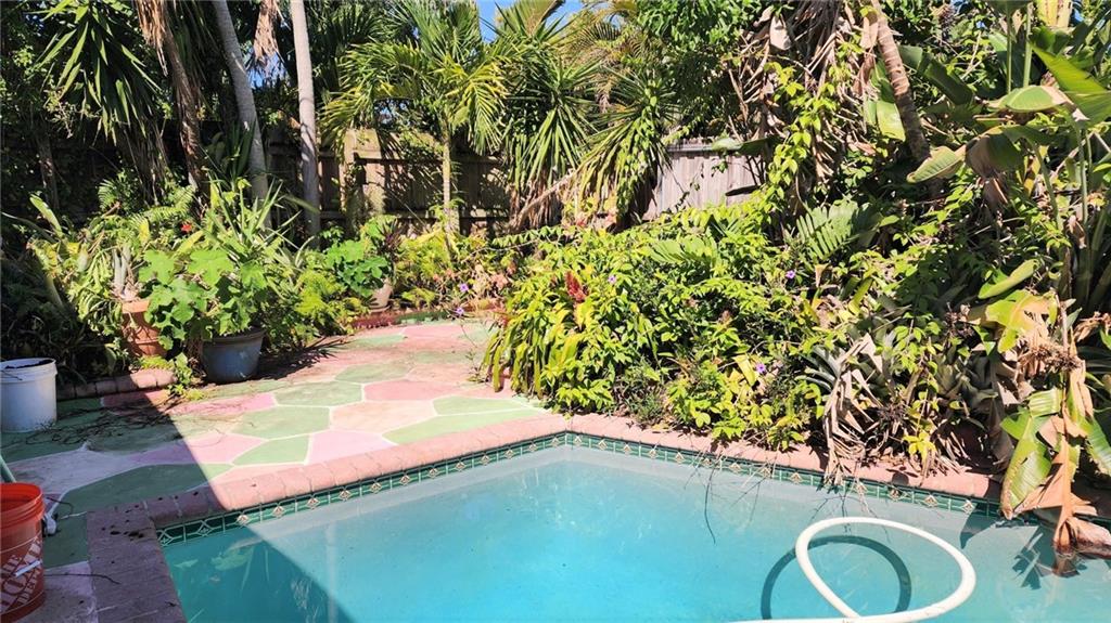 Main house is a 3/2 ready for a total renovation, including the roof. The guest house is one bedroom ready for cosmetic improvements. Very tropical and full of potential.