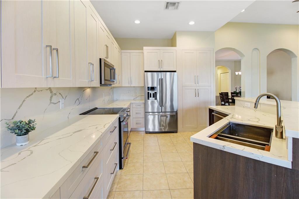 Must see 4 bedroom 3 bath in prestigious Heron Bay. Waterfront property features wide lake views. Impact Windows and Doors. Gorgeous gourmet kitchen with custom cabinets and quartz countertops & backsplash. Stainless steel KitchenAid appliances. Updated baths feature new vanities, countertops and frameless glass showers. Tile and wood laminate throughout. Guard gated community. Heron Bay 5 star amenities include 2 clubhouses, resort style pools, kids play areas, gyms, spa, tennis, basketball and so much more. HOA monthly fees include lawn maintenance and alarm security.