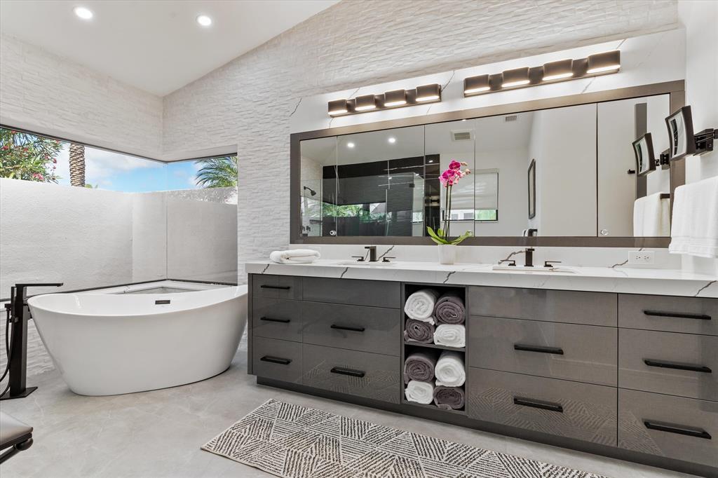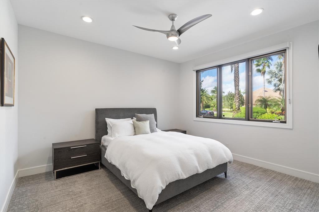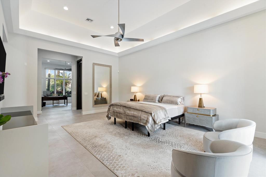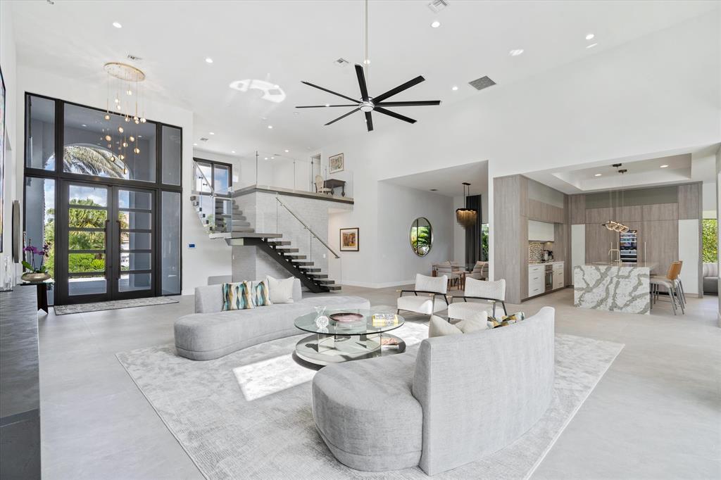 This palatial residence embodies the ultimate Florida luxury lifestyle and features 4,472 square feet under air with exceptional finishes throughout. Designed with intention, every detail of this four bedroom, five and a half bath home has been thoughtfully planned and appointed, from the breathtaking curves to the soft modern lines to the vast open spaces and grand ceilings. The gourmet kitchen is a chef's dream with Thermador appliances, quartz countertops, plentiful storage and a wine fridge. Adjacent breakfast nook is flooded with natural light. First floor primary suite with custom fitted closets and luxurious his and hers bathrooms.
