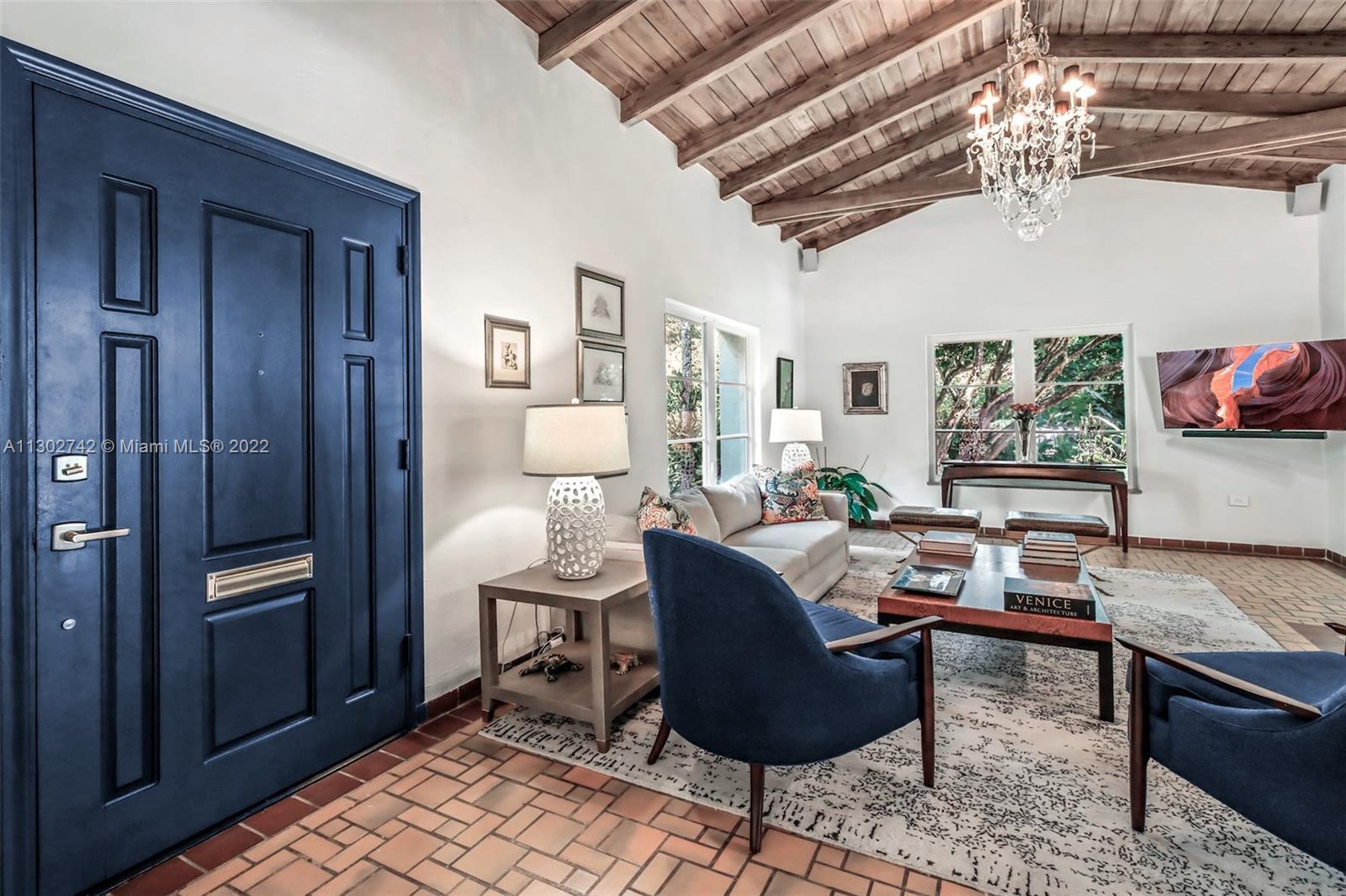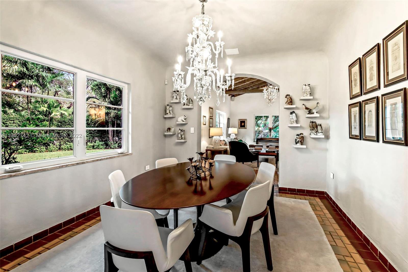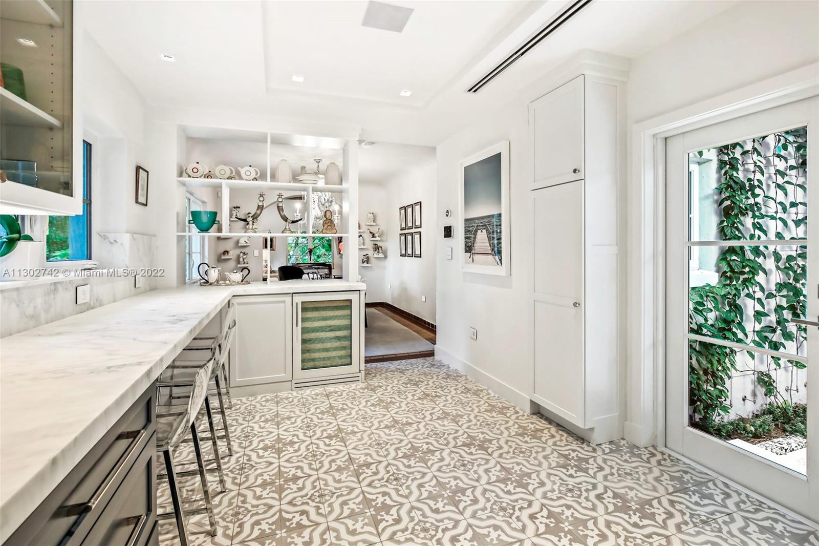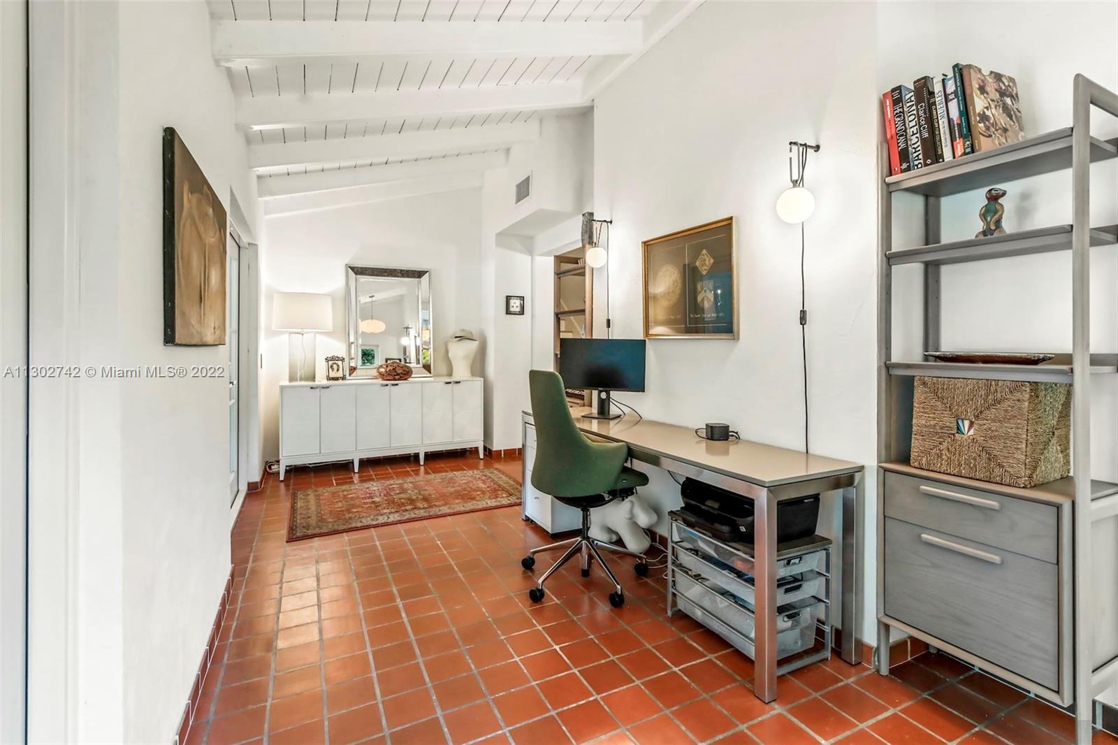 One of a kind 1925 Spanish style home located in the Golden Triangle of Coral Gables beckons you inside. The stately front door welcomes you into a beautifully designed living room with original cypress vaulted ceilings & stone fireplace. This elegant property contains 4 bedrooms & 3.5 baths including a private guest house. The gourmet kitchen features the finest Miele appliances with Calacatta marble countertops & Cuban tiled floors. Bathroom upgrades include new lighting, fixtures & marble mosaics. You will be swept away by the home's screened-in covered patio that leads to a lush landscaped pool area containing exquisite 100+ year old Banyan trees. New Japanese Glazed ceramic tiles & shell reef stone surrounds the entire pool area. Conveniently located. This home is a must see.