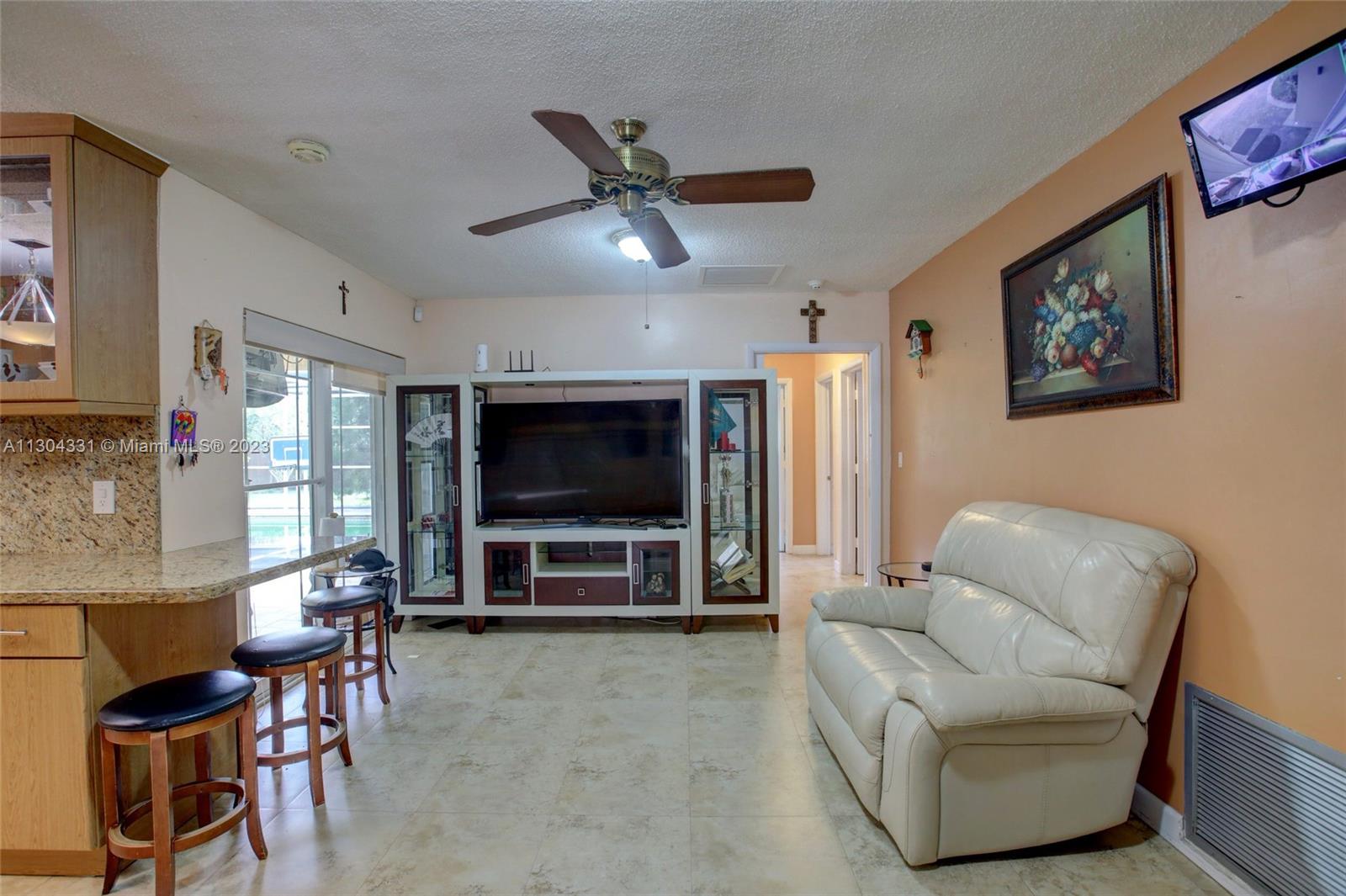 **BRING ALL OFFERS -- PRICE REDUCED -- CREDIT TOWARDS CLOSING COST ***Over- Sized Corner Lot ( 12,950 SQFT Lot) Pool Home, Fully Modernly Updated. Granite Kitchen with Stainless Appliances. Matching Title Floors throughout the entire home. All Bathrooms Match in Design. Double Sink Master Bathroom, Standup Glass Showers. Updated Windows and Doors. Fully Enclosed Rear Patio with Heated Pool. Half Bathroom Accessible on the Pool Patio. Custom Bar/Serving Station on Pool Patio. Privacy fence surrounds entire property, with various Fruit Trees. Pool and Drive Way Pavers have been updated. Wired with Security Cameras and Surround Sound speakers interior/ exterior. Newer AC and Flat Roof, updated in year 2020. No Association/ No Restrictions.