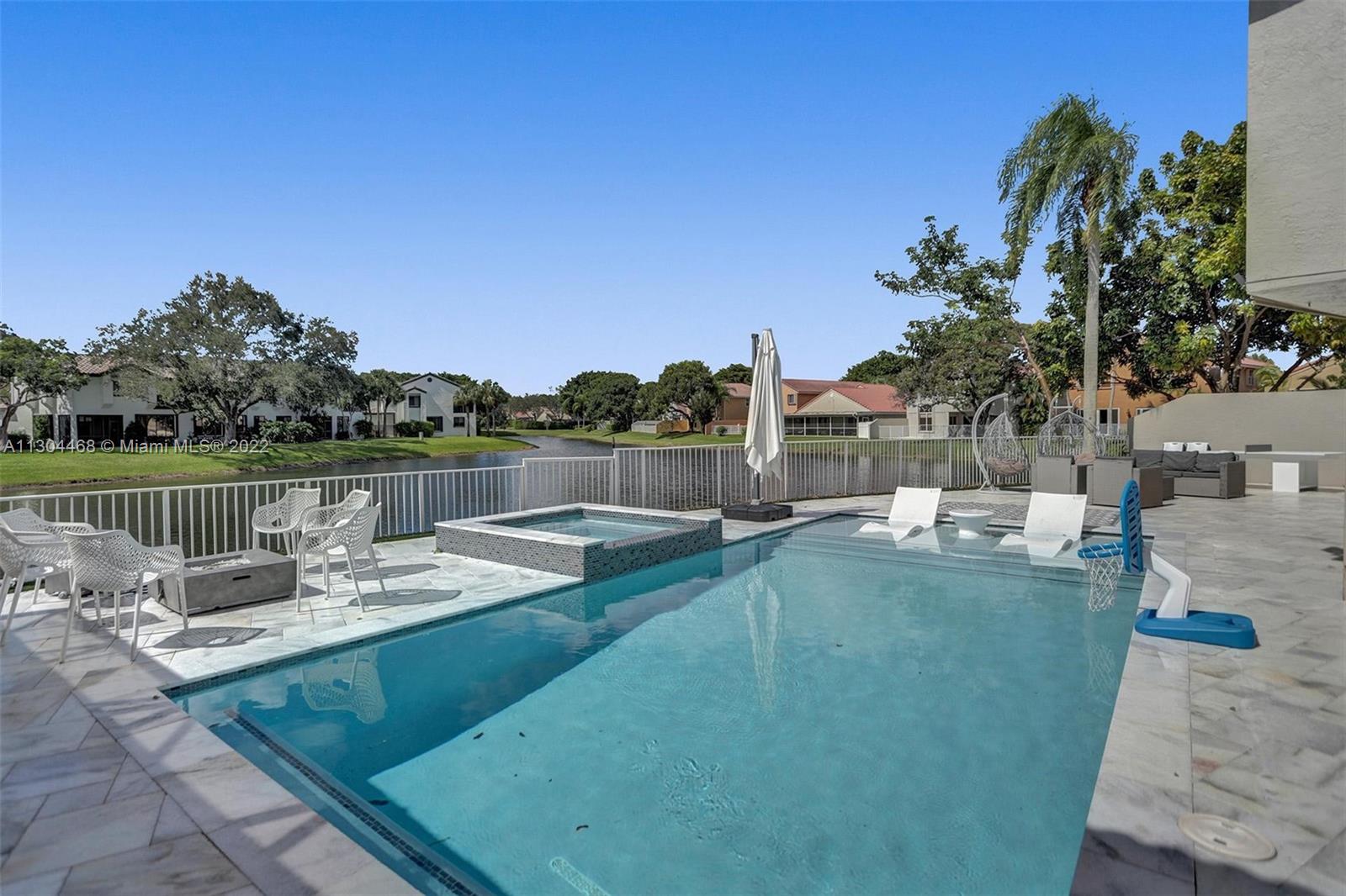 Fabulous Waterfront Pool Home in Mill Run Parkland. This 2,750 SQFT home is on a pie shaped lot and the largest in Mill Run. Brand new 2021 Modern heated pool and Jacuzzi overlooking the water with a sundeck. 1500 SQFT brand new Patio deck to enjoy and entertain. This house has 5 bedrooms and 2 and a half bathrooms. All bathrooms are beautifully remodeled with a modern touch. Additional playroom and office/ bedroom off of the garage. Brand new 2022 Hurricane impact windows. S.S Appliances, Upgraded bathrooms, High hats throughout the house, New Washer & Dryer, and Much More! Located in the city of Parkland within the a Grade A School District, and right across the Street from TERRAMAR Public Park. AA Rated public SchoolsHigh only 1 mile from the Chabad of Parkland.