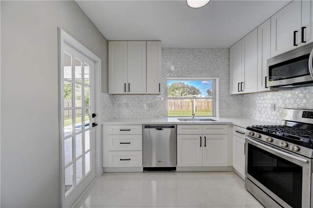 Stunning completely remodeled 3 bedroom 2 bath home with a huge yard and pool. Brand new porcelain floors, brand new kitchen and bathrooms, freshly painted inside and out, full set of storm shutters, and roof from 2013. Brand new pool equipment just installed. Newer water heater and AC. This is a must see!! Vacant and easy to show.
