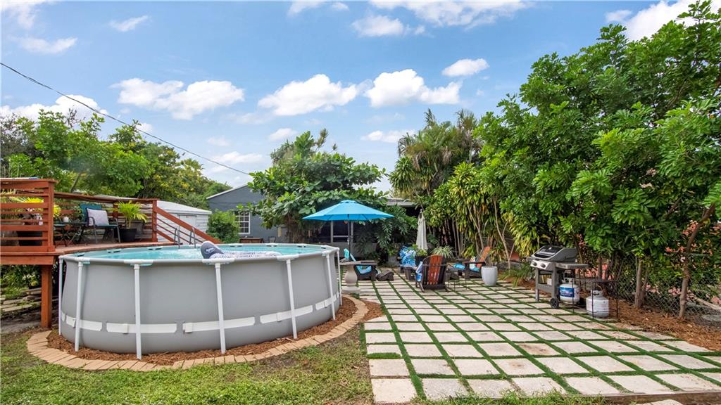 Updated home with central air & den, boasting custom finishes and state of the art kitchen with oversize island, quartz countertops and soft close hardwood cabinets. Property has neutral color laminate flooring with split floorplan offering privacy. This backyard is a true Floridian paradise, fitted for large entertainment as well as having an intimate tucked away retreat or even both simultaneously. The dining area steps out to a covered screen patio which then leads to a large Turfstone paved area with an above ground pool & deck. Backyard continues further with access to rear alleyway with room for a trailer, boat or recreational vehicles. Minutes away from the beach & Downtown Hollywood with no restrictions on AIRBNB.