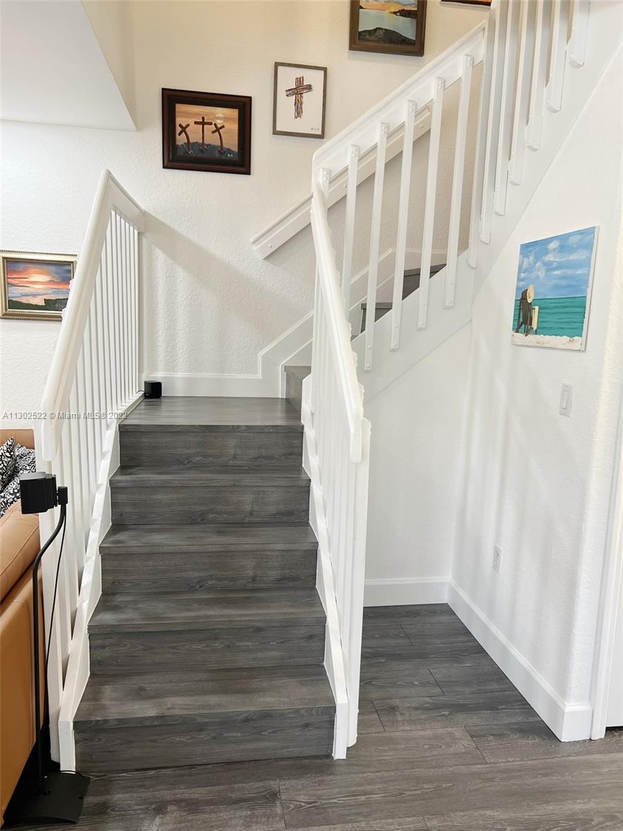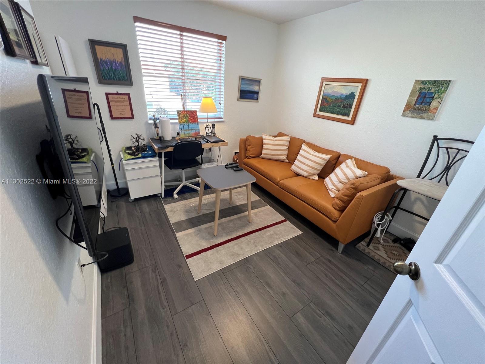 Unique, spacious, and beautiful CORNER UNIT, a 2-story townhouse in one of the best areas of Doral, located in the quiet gated community of Dimensions at Doral. 3 bedrooms, 2 1/2 bathrooms. Updated kitchen with quartz countertops, new appliances, laminated floors on both levels, accordion hurricane shutters, den/office/loft upstairs, gutters with a net. New patio wood fence. AC 4 ton 2016. One car garage and plenty of space for driveway parking. Close to restaurants, shopping centers, A+ Rating Charter Schools, supermarkets, and more. Also great for investors. A must-see!