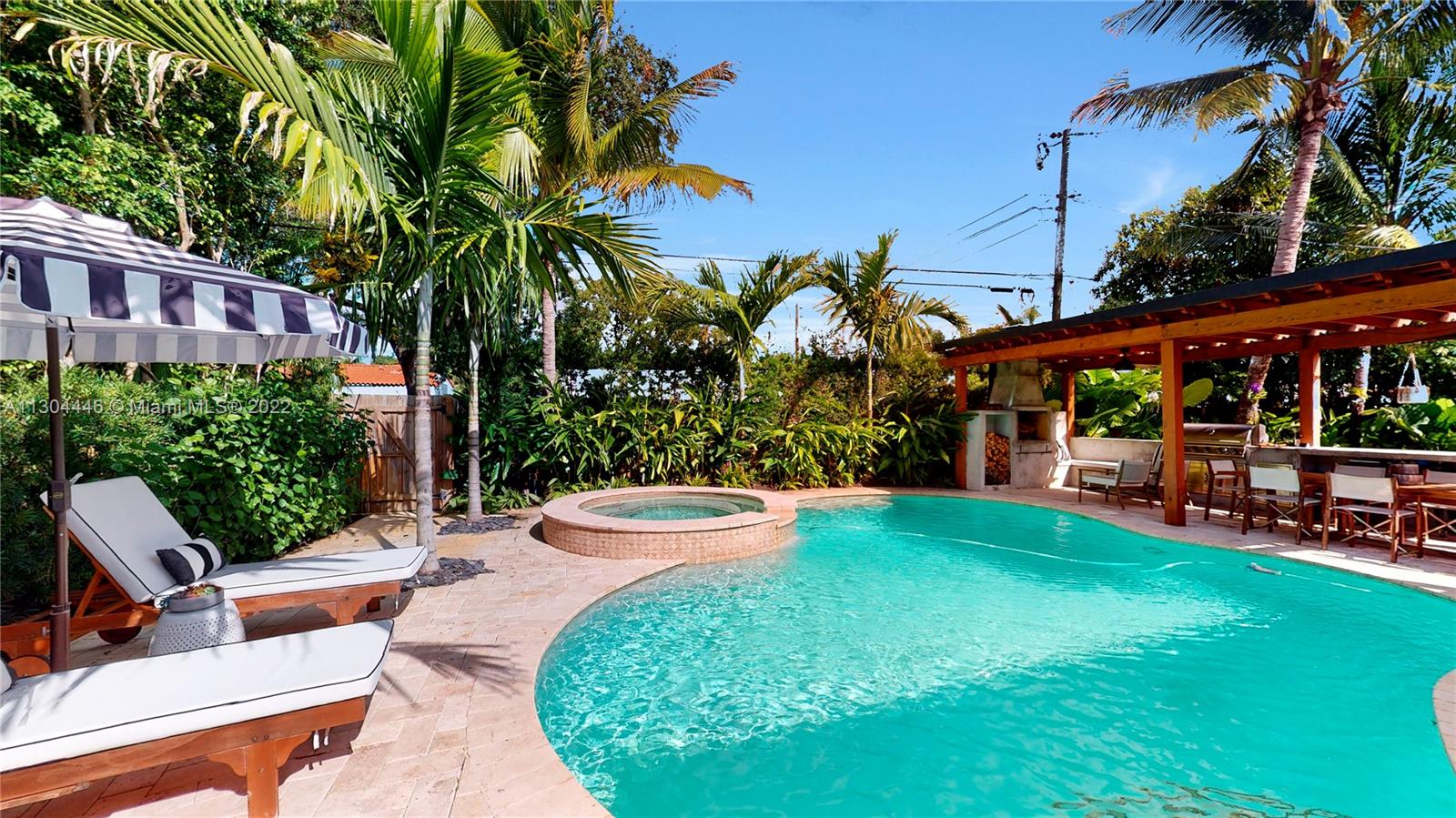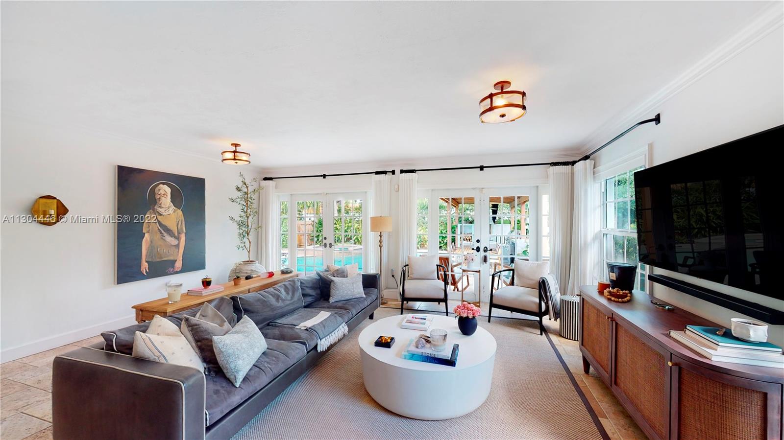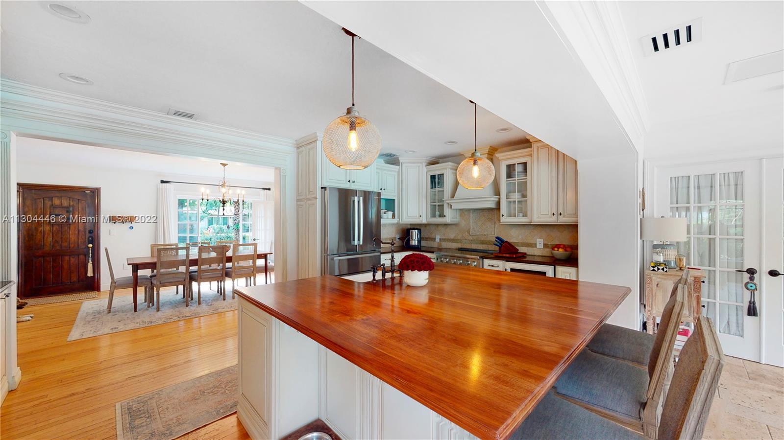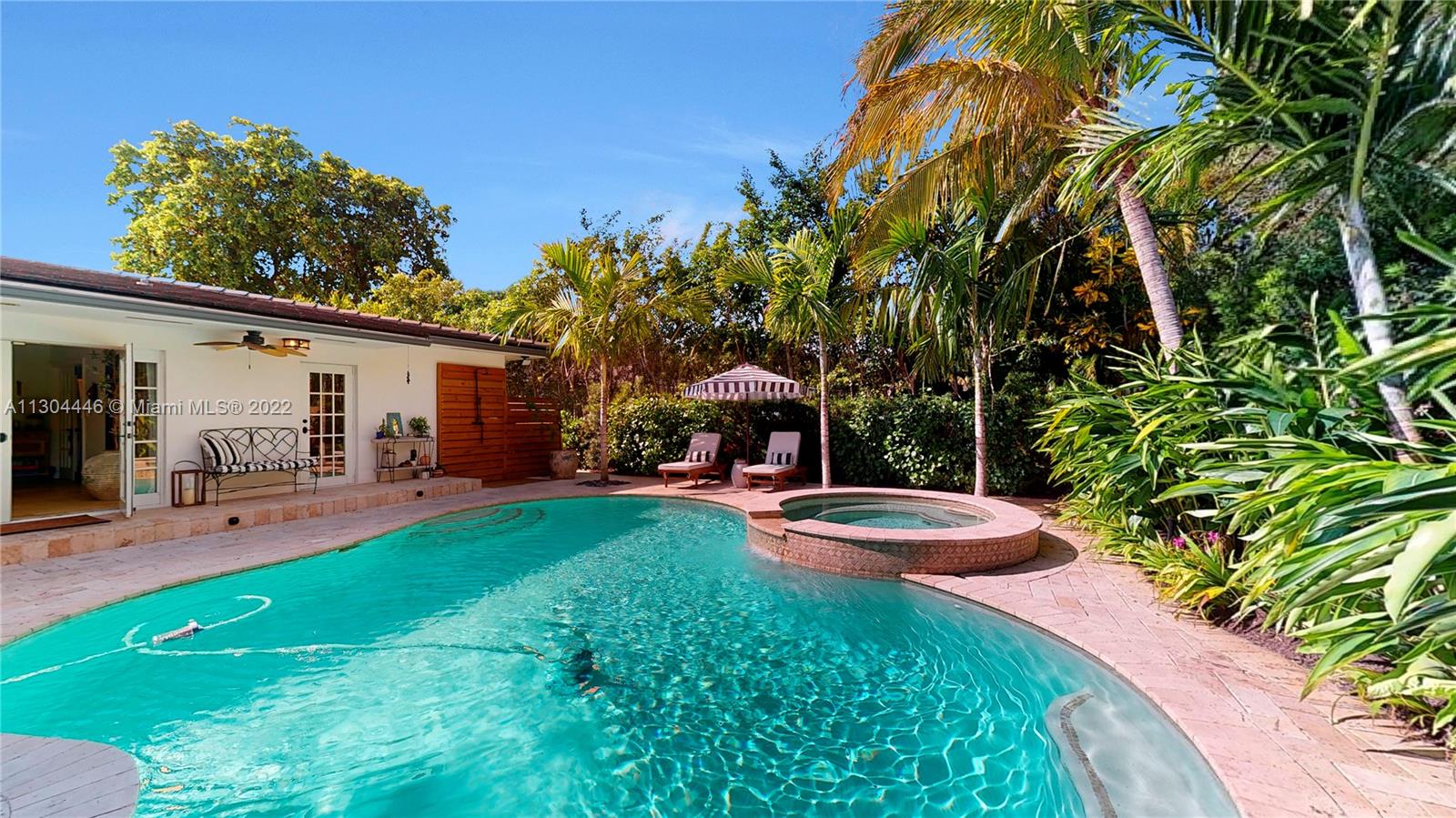 3 bedrooms and 2 full baths plus office and one car garage. This Miami Shores home has it all both inside and outside. Awesome private fenced yard with lush landscaping, heated pool and outdoor kitchen. Very private. Beautiful formal dining room with fireplace opens to a huge eat-in kitchen. Big family room overlooking the pool and garden. Big master suite with walk-in closet and spa-like bathroom. Private office space, great for work-at-home space. Attached one car garage with laundry and storage. Impact windows and doors, updated plumbing and electric, central a/c. Move-in condition, totally updated.