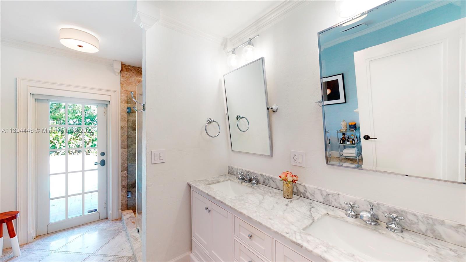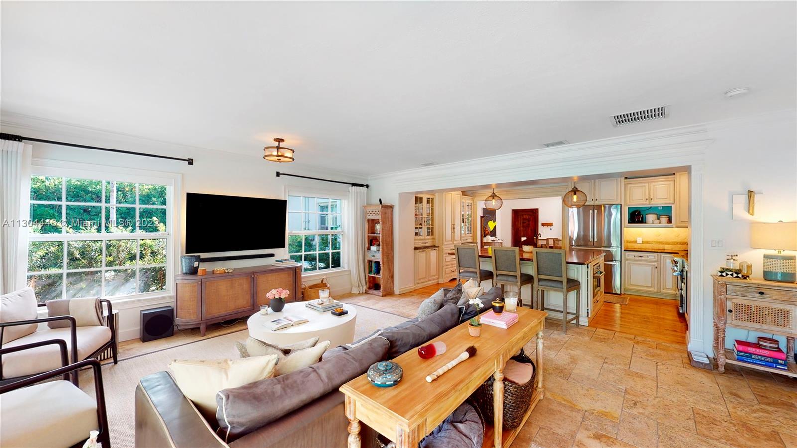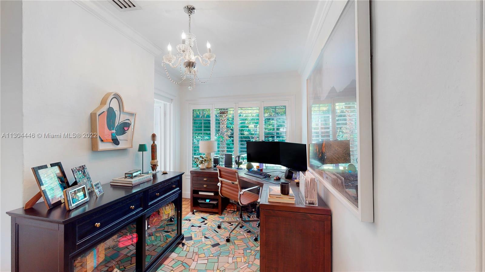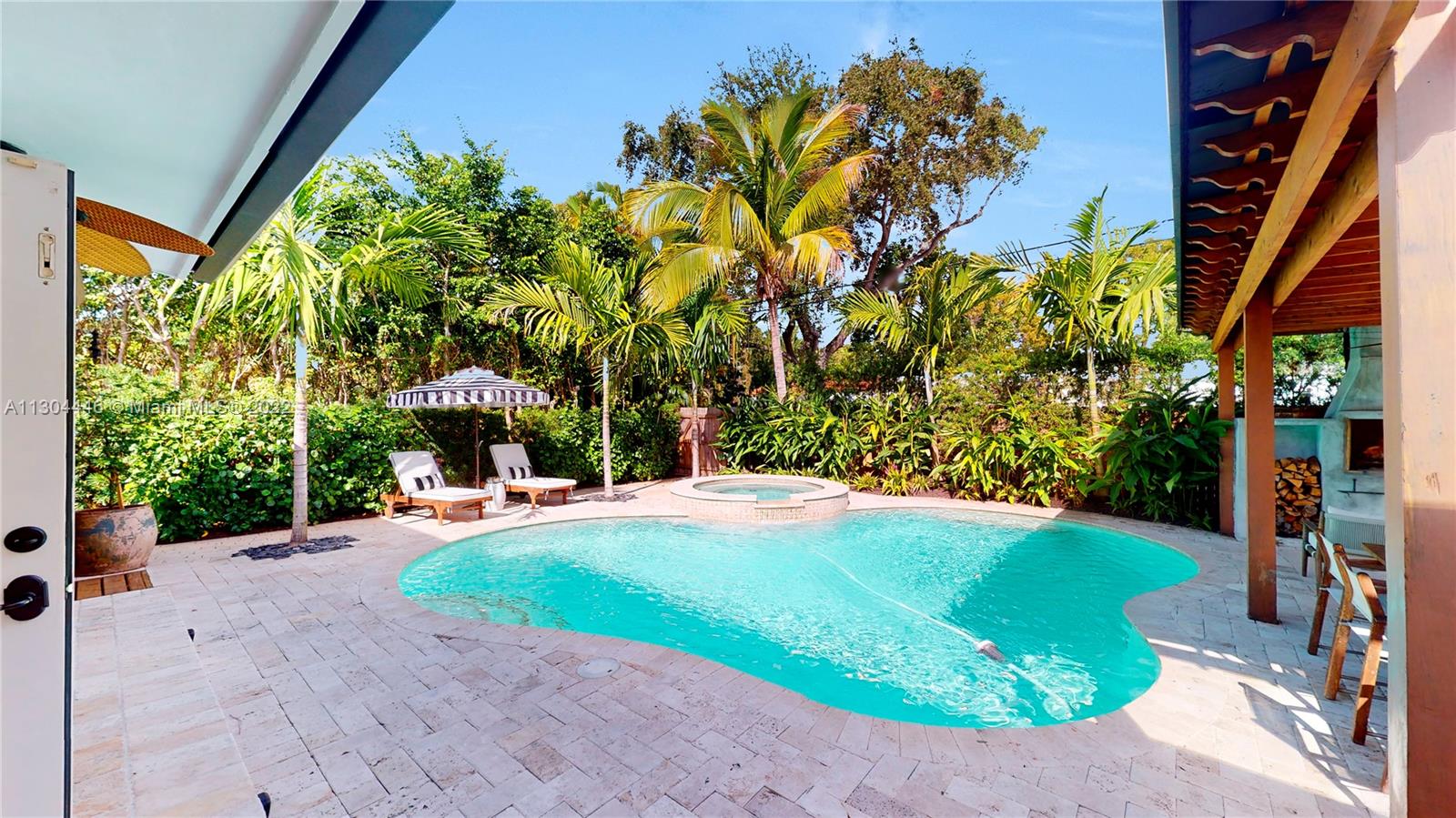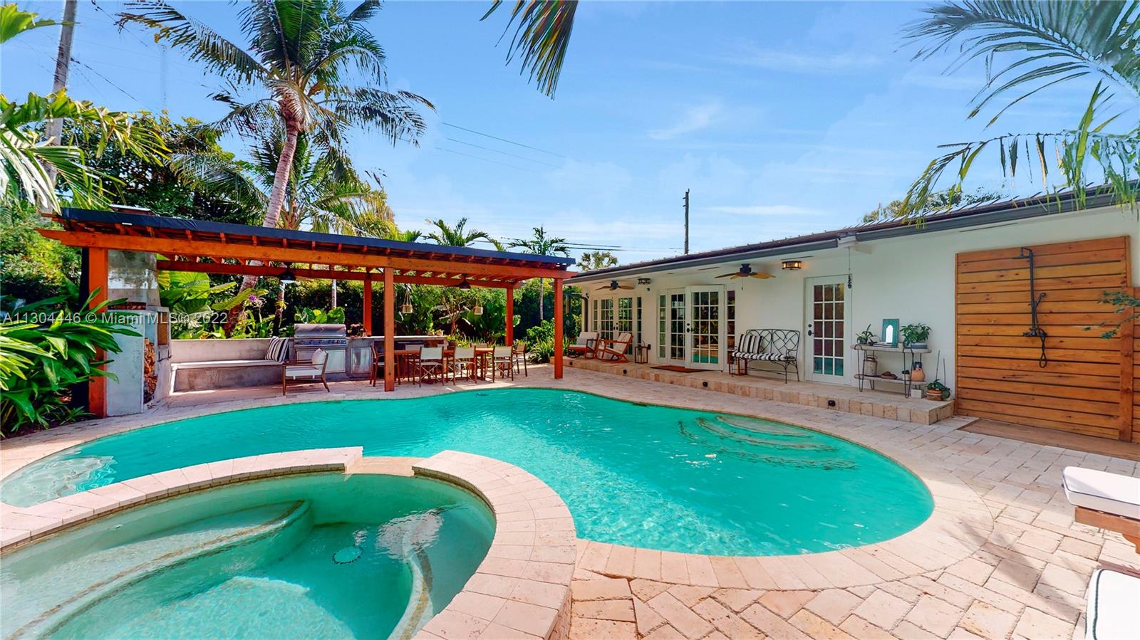3 bedrooms and 2 full baths plus office and one car garage. This Miami Shores home has it all both inside and outside. Awesome private fenced yard with lush landscaping, heated pool and outdoor kitchen. Very private. Beautiful formal dining room with fireplace opens to a huge eat-in kitchen. Big family room overlooking the pool and garden. Big master suite with walk-in closet and spa-like bathroom. Private office space, great for work-at-home space. Attached one car garage with laundry and storage. Impact windows and doors, updated plumbing and electric, central a/c. Move-in condition, totally updated.