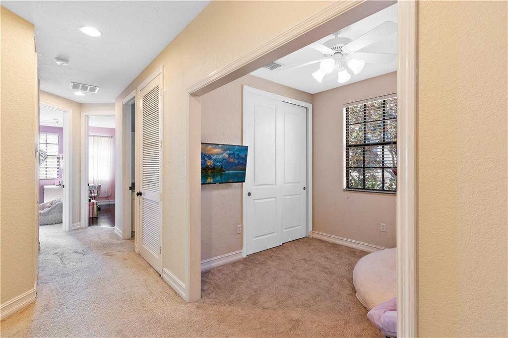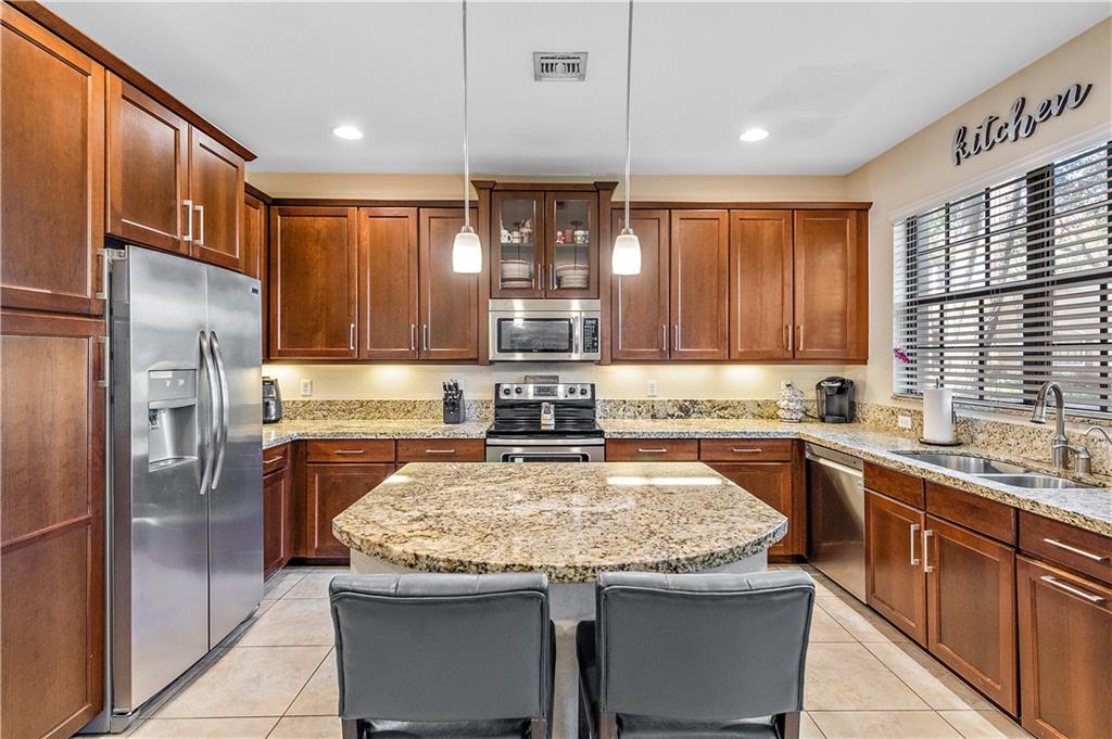 Spacious Parkland Townhome!! This 4 bedroom, 2 bathroom townhome is located in the beautifully maintained community of Parkland Reserve. This unit features 42" wood cabinets with granite counters, stainless steel appliances (refrigerator and dishwasher are newer), large bedrooms with built ins in the closets, screened in patio with large common green space. Two car garage with refrigerator and built in cabinets. Impact windows and doors. Corner unit features more windows and lighting throughout. New AC. Parkland Reserve is within walking distance to schools, the city park, and YMCA. Low HOA!