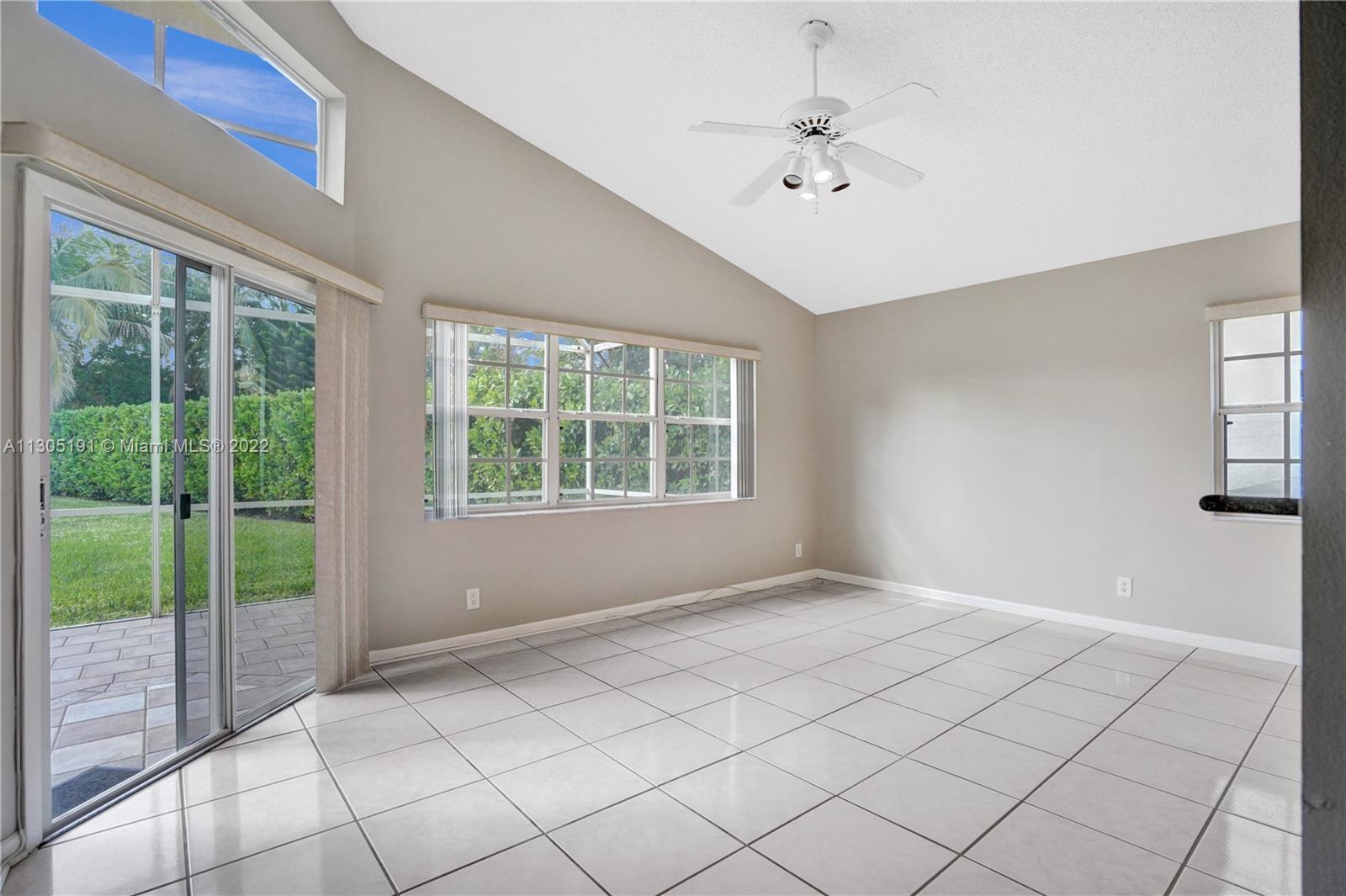 Very large 4/3 one story home on a huge 10,000 sf corner lot. Light and bright home that truly shows great with a nice open floor plan and high cathedral ceilings. Ceramic tile flooring in main areas and new laminate flooring in bedrooms. All bathrooms have been beautifully remodeled. Upgraded kitchen with granite, wood cabinets and newer stainless steel appliances. Big covered screened patio and a huge backyard with room for a pool. Great neighborhood with community pool, A-rated schools and close to shopping and restaurants. Will not last!
