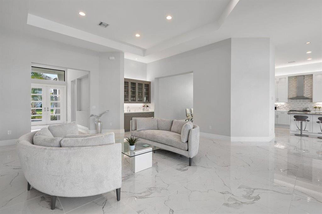 Magazine worthy, ''like new'' FURNISHED Contemporary Charleston Grande model situated on approx. a 1/3 acre lakefront lot in luxurious Boca Bridges. Equipped with full home generator! Spectacular single story floor plan features 4000+/- under air, 4 bedrooms & 5 full baths, office or 5th bedroom with French glass doors, living room open to the kitchen, clubroom & office both have wet bars with marble countertops, gourmet kitchen, breakfast area and huge private dining room plus 3-car garage. Modern porcelain tile and hardwood floors. Fully upgraded kitchen, walk-in pantry, quartz countertops, extra large Subzero refrigerator + Wolf appliances. Built in 2020, with impact windows/doors, plantation shutters and motorized window treatments throughout. The one you've been waiting for!