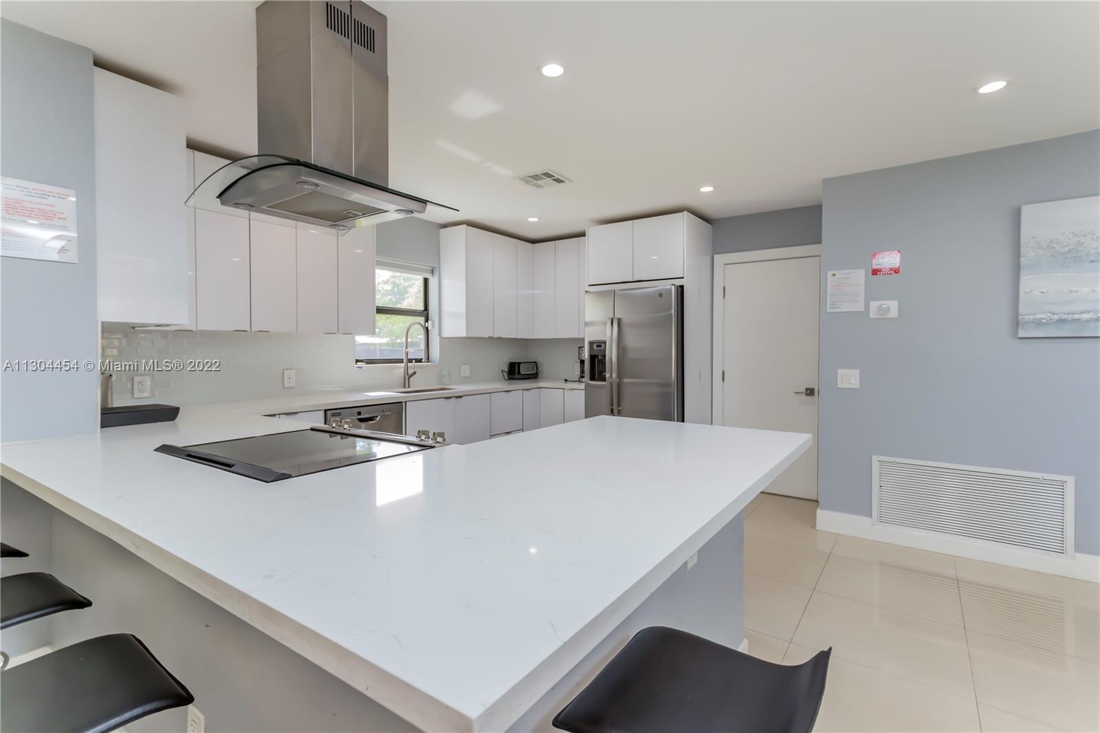Stunning fully updated 5 bedroom 3 bath home in Hollywood just minutes from Hollywood Beach! Endless income potential as home is permitted for Airbnb! NO HOA! This modern and sleek home features open concept floorplan, quartz countertops, new ss appliances, floating bar, fireplace & porcelain tile throughout. Ready to produce immediate income w/all NEW roof, AC, water heater, impact windows, insulated duct system, plumbing & electrical, all done with permits! Sits on an oversized 10,843 sq ft lot. Oversized backyard with room for pool and much more!! The income possibility is endless or enjoy as your gorgeous primary residence! Just minutes from Hollywood Beach, Gulfstream, shopping, dining and more!