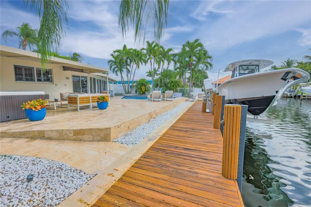 Boater’s Dream! This 3/2 ocean access pool home with 60 foot dock on a quiet cul-de-sac in Garden Isles is the perfect place to call home. Beautifully maintained and upgraded with impact windows and doors, modern granite kitchen and bathrooms, and tile throughout. Over 1900 sqft under air, enjoy fantastic canal views via the panoramic Florida room. This lovely home has a 1.5 car garage, and an open layout that is perfect for entertaining, hosting a backyard BBQ, or just unwinding in the pool or spa. With a huge travertine-paved backyard, resurfaced pool, and even a faux-grass play area, you’ll enjoy low-maintenance weekends. Don’t forget to bring your boat – just minutes to the Intracoastal, with a single fixed bridge at Federal Highway and a newer 16k lb aluminum boat lift.