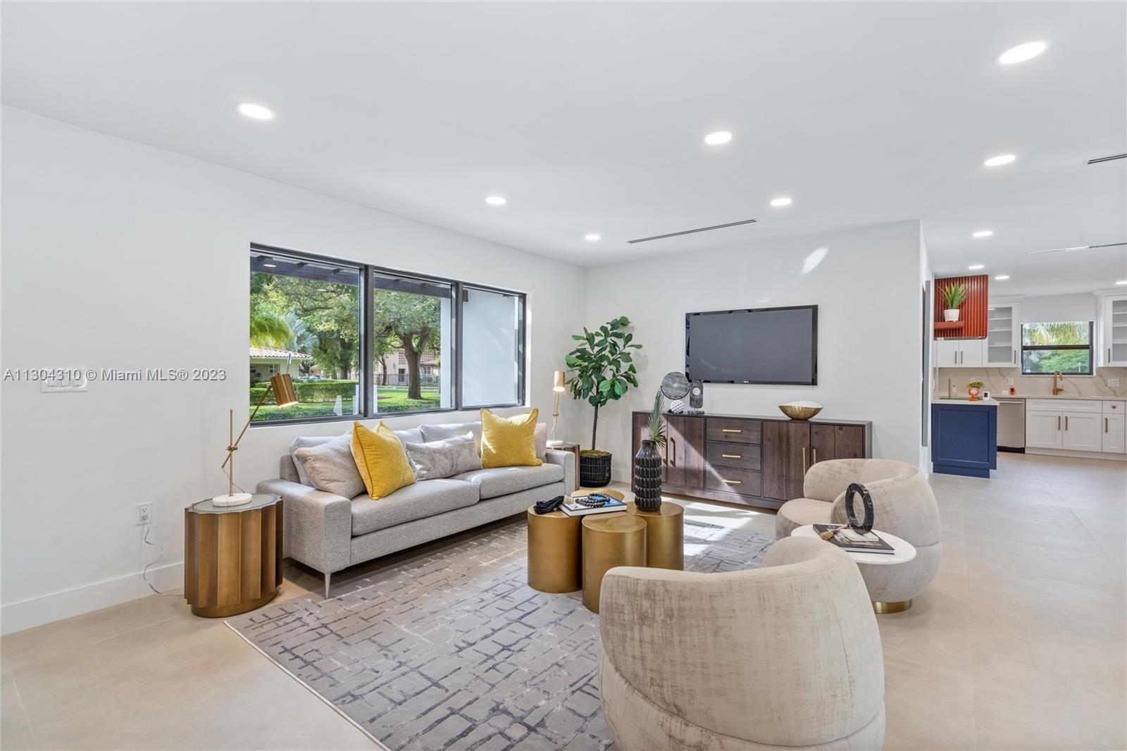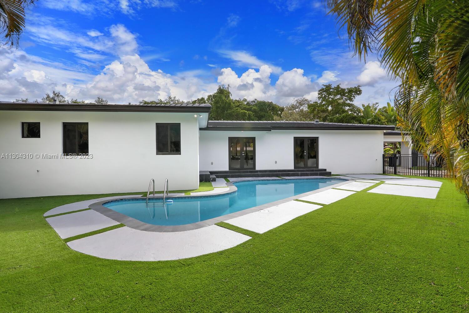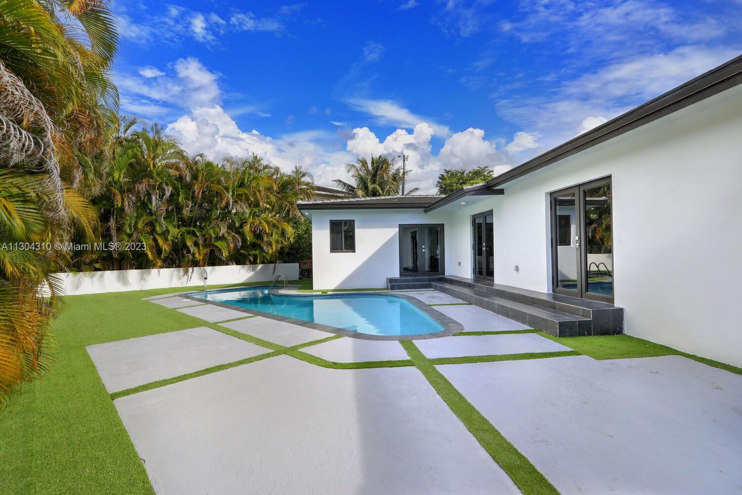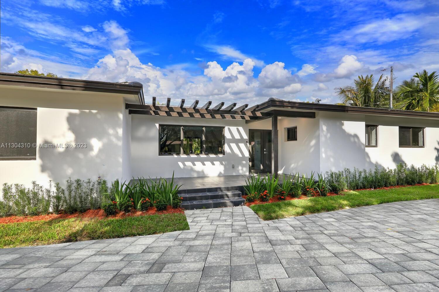 New South Coral Gables turnkey move-in-ready home lives large. This spacious turnkey home has 4 bedrooms, 5 bathrooms, pool, & 2-car carport on a perfectly located gated corner double lot. A rare find, each bedroom has ensuite bathrooms & generous closets. New plumbing, electrical, mechanical, roof, impact windows, cabinetry & flooring. Property has 3 electric gates with access from San Remo Ave and Domenico Ave. Open floor plan with beautiful custom kitchen, Bosch appliances & large walk-in pantry. Other features: spacious laundry, mudroom, 32x32 porcelain flooring, LED recessed lighting throughout. Located within top rated Sunset Elementary school district & walking distance or fun golf cart ride to restaurants, shopping, groceries, park & top rated schools Coral Gables has to offer.