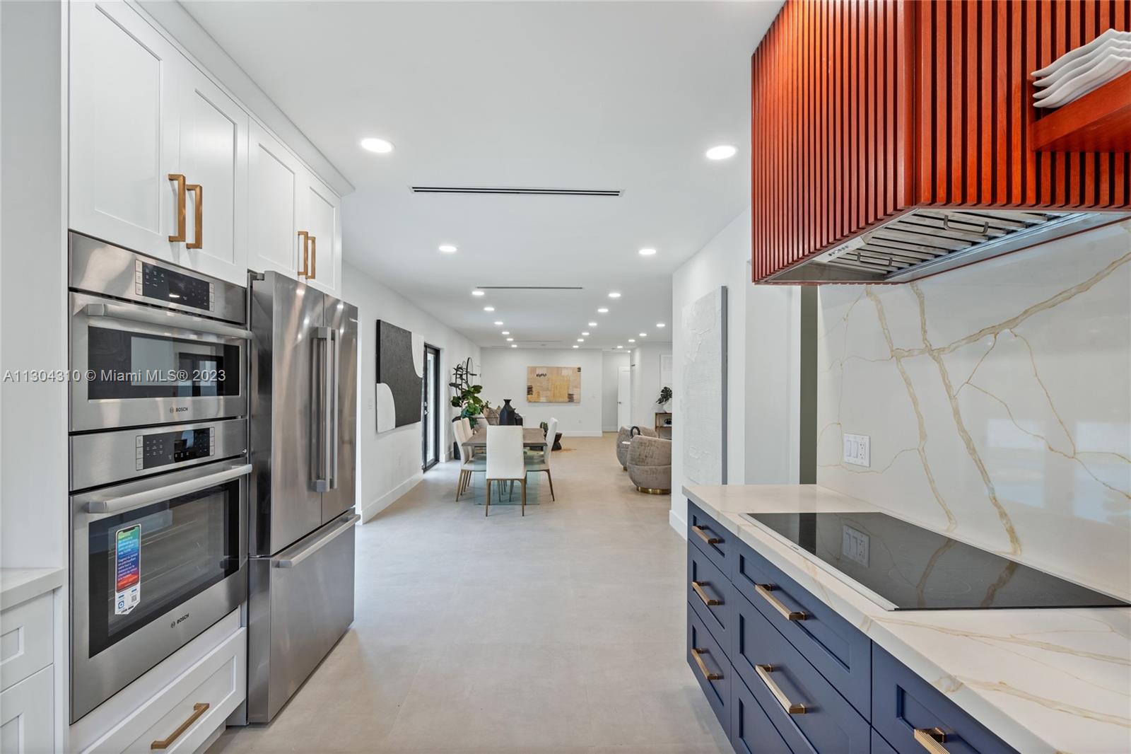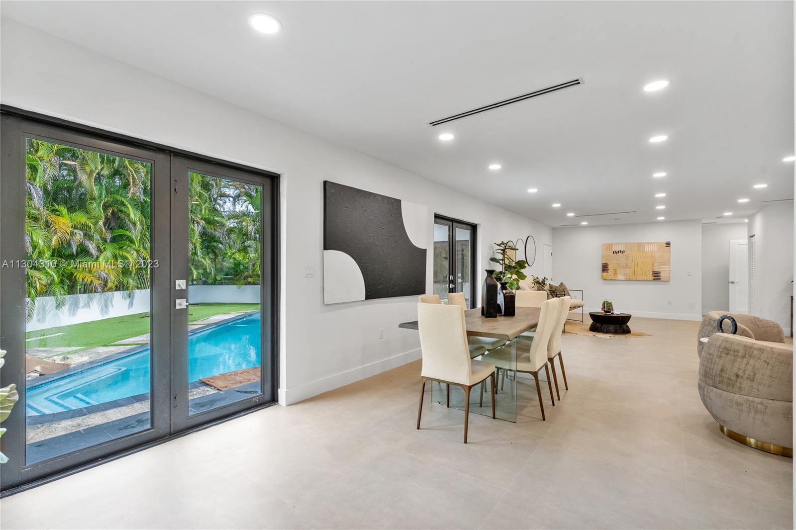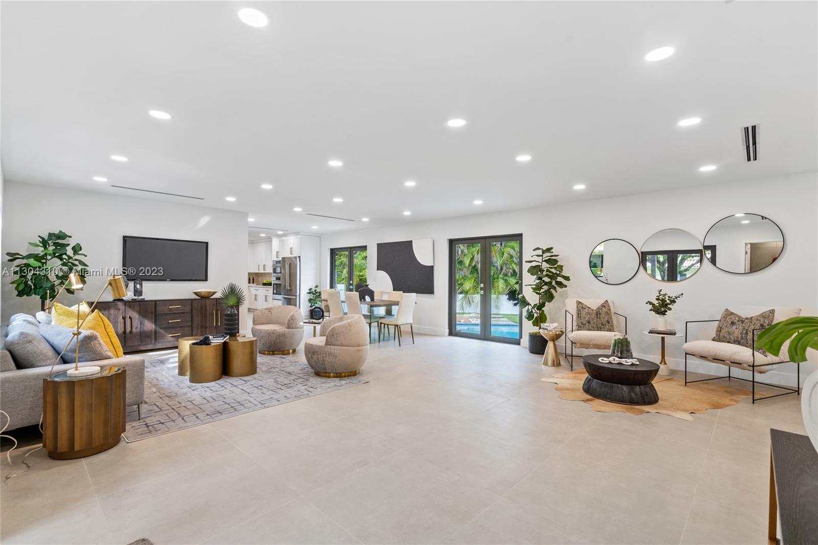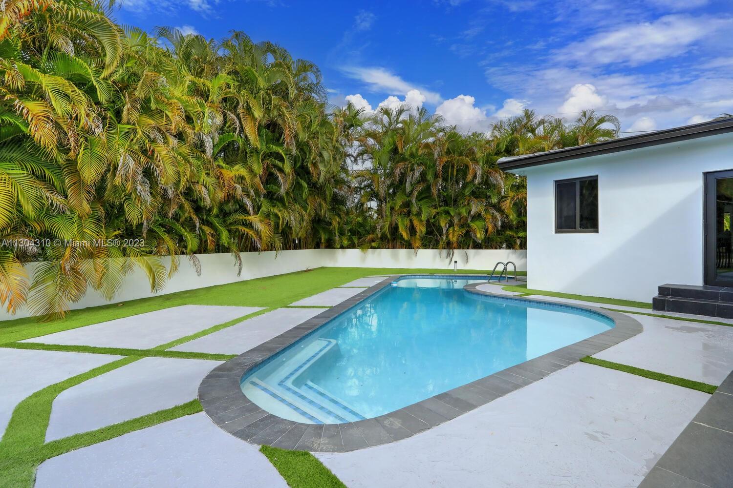New South Coral Gables turnkey move-in-ready home lives large. This spacious turnkey home has 4 bedrooms, 5 bathrooms, pool, & 2-car carport on a perfectly located gated corner double lot. A rare find, each bedroom has ensuite bathrooms & generous closets. New plumbing, electrical, mechanical, roof, impact windows, cabinetry & flooring. Property has 3 electric gates with access from San Remo Ave and Domenico Ave. Open floor plan with beautiful custom kitchen, Bosch appliances & large walk-in pantry. Other features: spacious laundry, mudroom, 32x32 porcelain flooring, LED recessed lighting throughout. Located within top rated Sunset Elementary school district & walking distance or fun golf cart ride to restaurants, shopping, groceries, park & top rated schools Coral Gables has to offer.