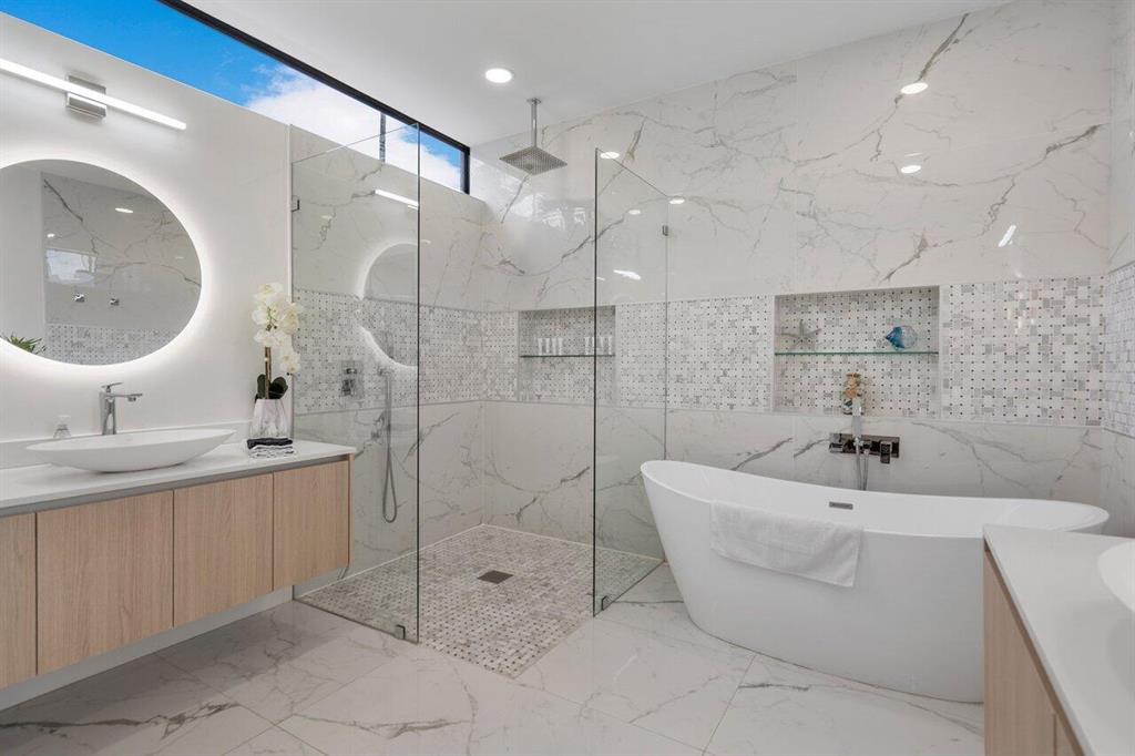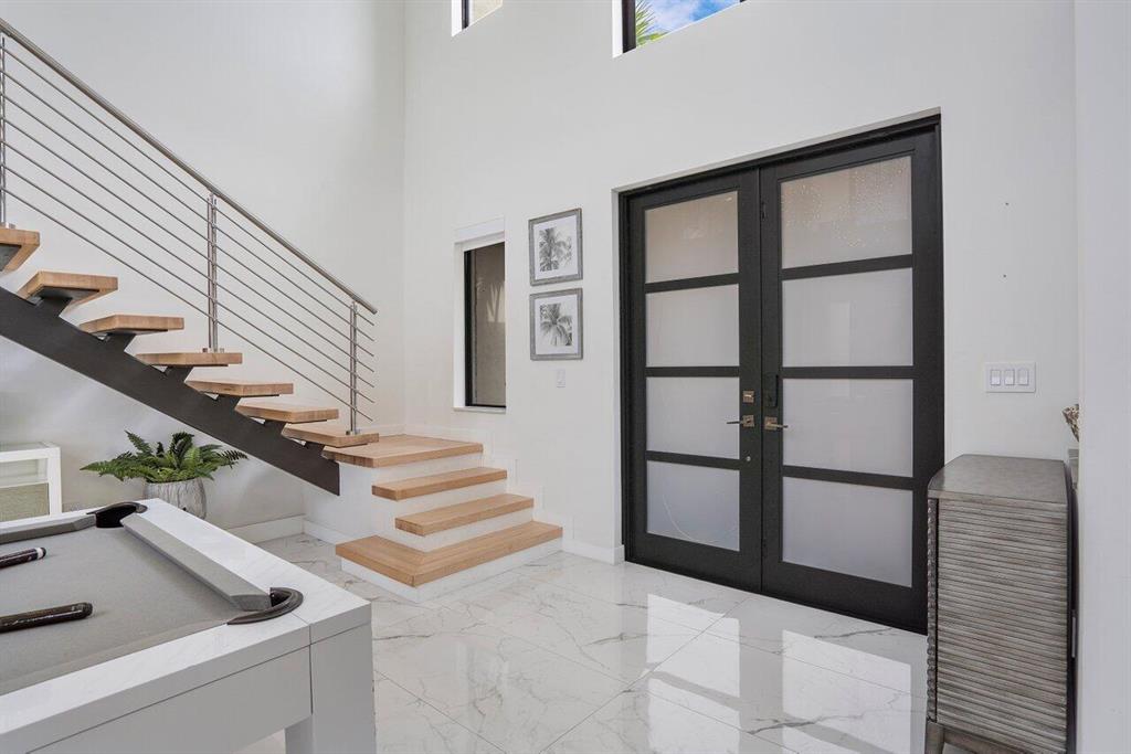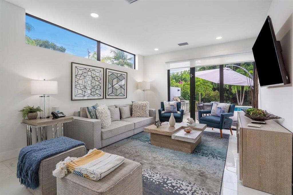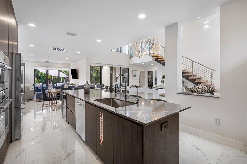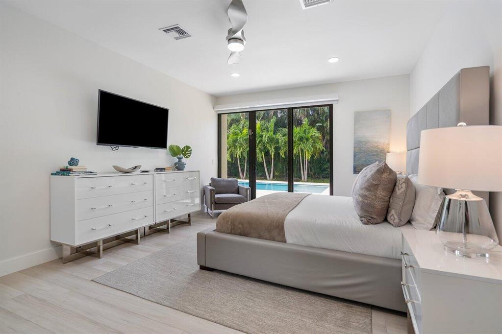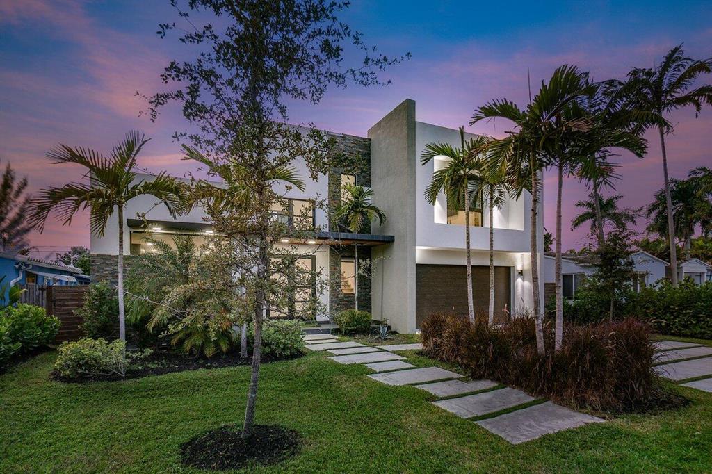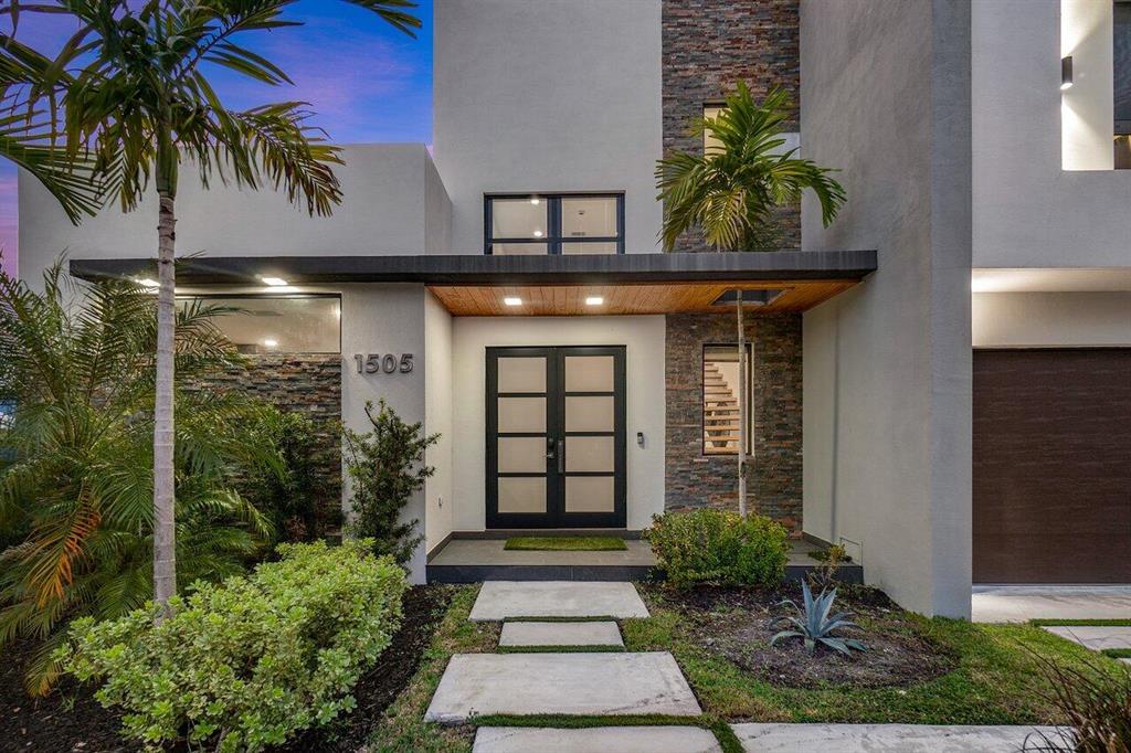 Newly constructed modern masterpiece in desirable Poinsettia Heights boasts 4 bedrooms, 3.1 baths, and over 3,000 sq ft of living space. Built in 2021, this stunning residence has a flexible floor plan with one of two primary bedrooms downstairs, double-height ceilings in the great room, and a chef's kitchen complete with sleek two-tone cabinetry, Quartz counters, center island w/ waterfall, and Bosch appliances. Ground floor primary bedroom opens to the pool deck; a luxurious bathroom features separate vanities w/ LED mirrors, soaking tub, and oversized shower. A dramatic floating staircase leads to the second level which has two en-suite bedrooms, laundry room, and oversized balcony with views of the pool and private backyard. Great location minutes from downtown, restaurants, and more!