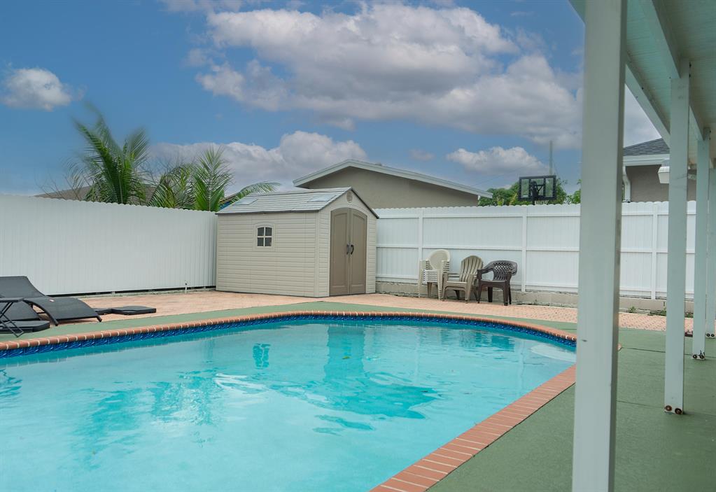 Single family residence in the heart of West Palm Beach, perfect for first-time home buyers OR investors/rentals. This is house move-in ready conditions. Aluminum fence, driveway, garage, backyard with pavers, shed and pool.