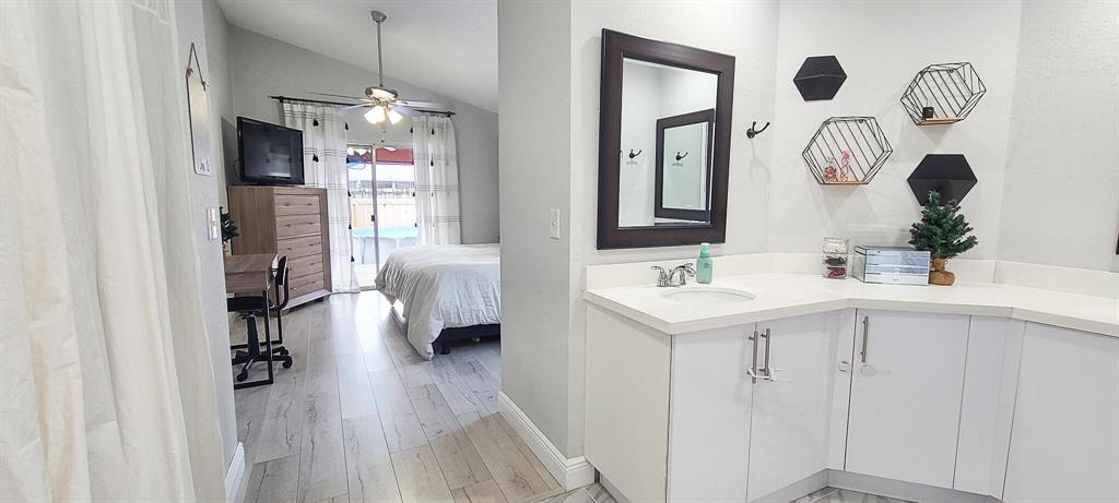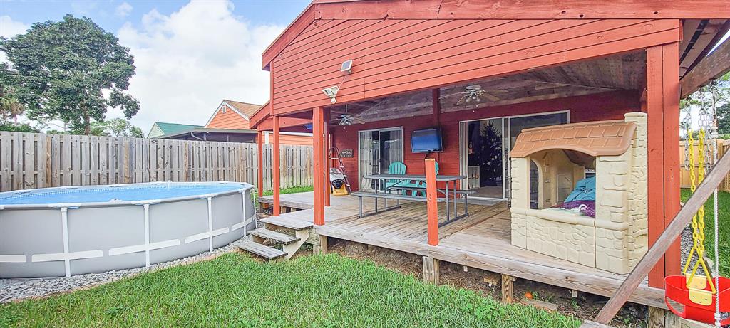 3/2/2! Beautifully Updated and fresh Home with Soaring ceilings, Spacious Living areas, and a large fully fenced backyard with deck and Pool! Light & Bright! Updated & Upgraded Bathrooms. Spacious 2 car garage with lots of storage space. Beautiful covered deck with ceiling fans. Plenty of room to roam in the fully fenced backyard. Brand New Privacy fencing! Brand new above-ground pool is just perfect for cooling off. This home was made for entertaining! 2 Car garage, fantastic upgraded flooring and so much more. Guard-Gated Community featuring tennis courts, deluxe playground with sand-play pits, beach volleyball, basketball, Community Pool, handball/paddleball courts, pickleball, BBQ Area, baseball diamond and more! LOW HOA Dues.