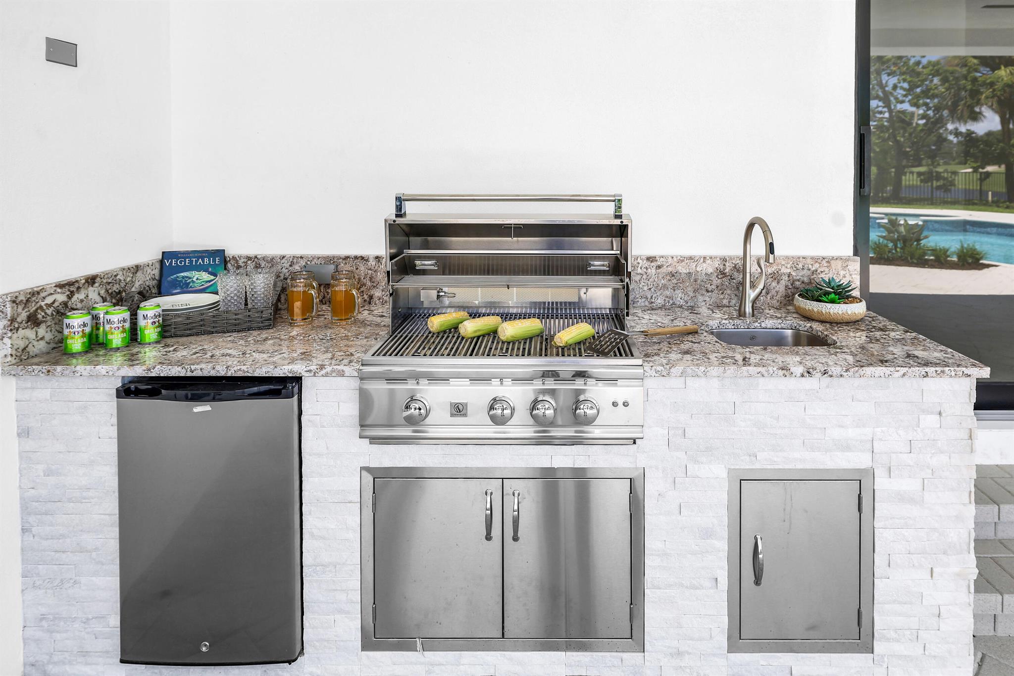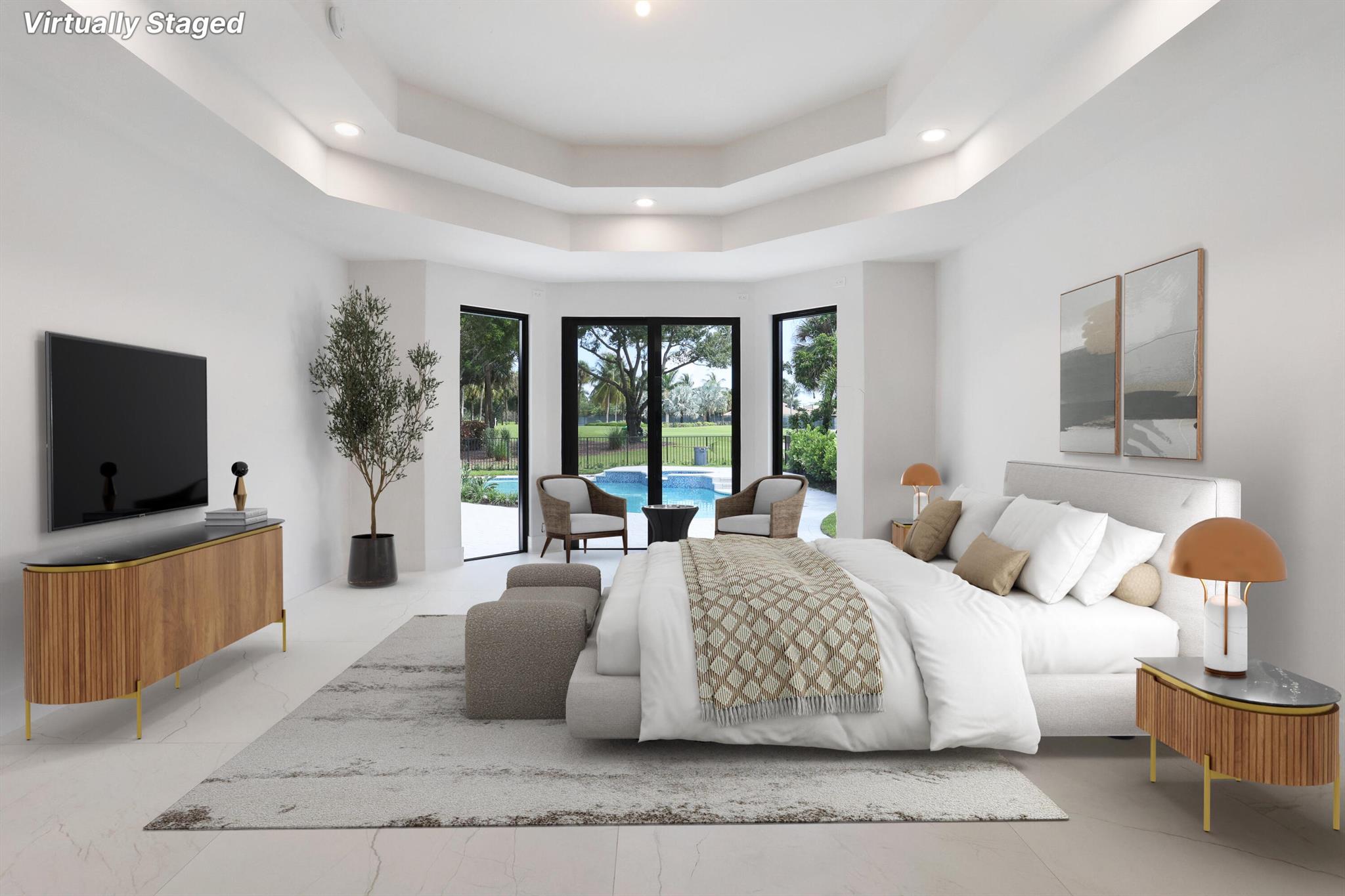 CONTEMPORARY RENOVATION JUST COMPLETED - Sheer openness is the immediate impact from the 15 foot high ceiling foyer, great room, kitchen, dining area and family area as they blend into one dramatic living space. At the center of all living and entertaining activity is an oversized kitchen with a grand center island. The primary bedroom suite features dual bathrooms, adjacent to a full ensuite bedroom/office, while the secondary wing offers two ensuite bedrooms. An open pool/spa and patio features a covered outdoor kitchen, all with golf and water views. *** DISCLOSURE: Original date built 1994, major renovation completed in 2023See 'More' for additional details.