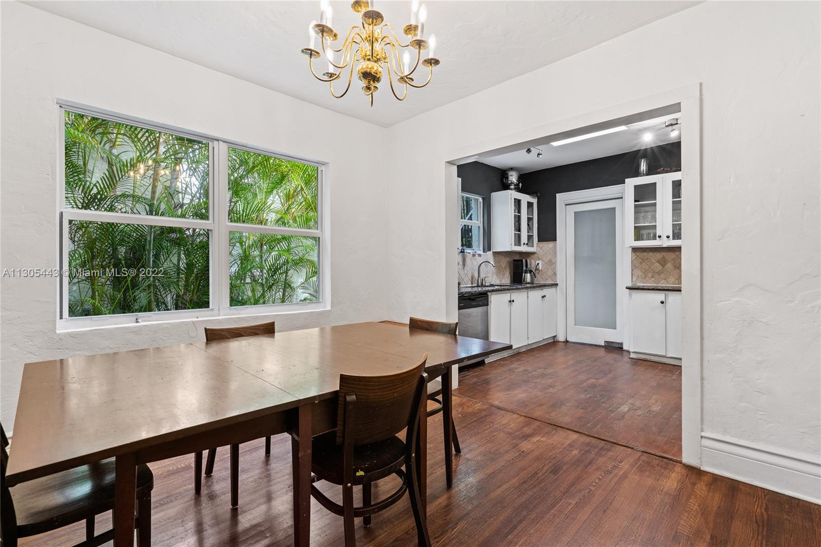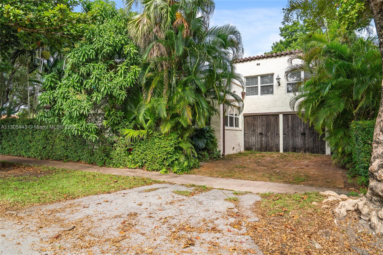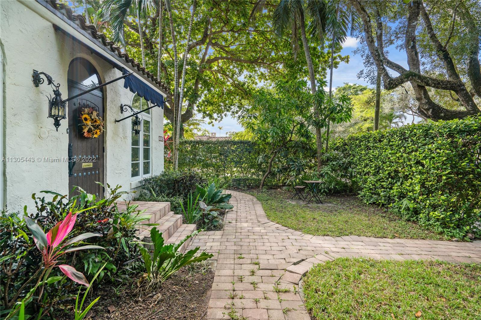 Beautiful home on a corner lot in Coral Gables. Impact Glass windows all over, 2 car garage.Spacious sun room upon entering that has high ceilings.Mosaic tile floors,charming fireplace in living room,large bright windows,hardwood floors,spacious main bedroom suite has a large walk in closet and main full bathroom,large living room and spacious informal dining room.Nice and bright kitchen,granite countertops,marble backsplash,wood chop block, and skylight. Detached 3rd bedroom on second floor, carriage house style.It has lots of light,full bathroom,kitchenette and walk in closet. Enjoy beautiful mature trees and plants giving lots of privacy and quite street. Brick paver walking path surrounds the outside. Newer AC. 2/2 main house plus detached 1/1 on the second floor.