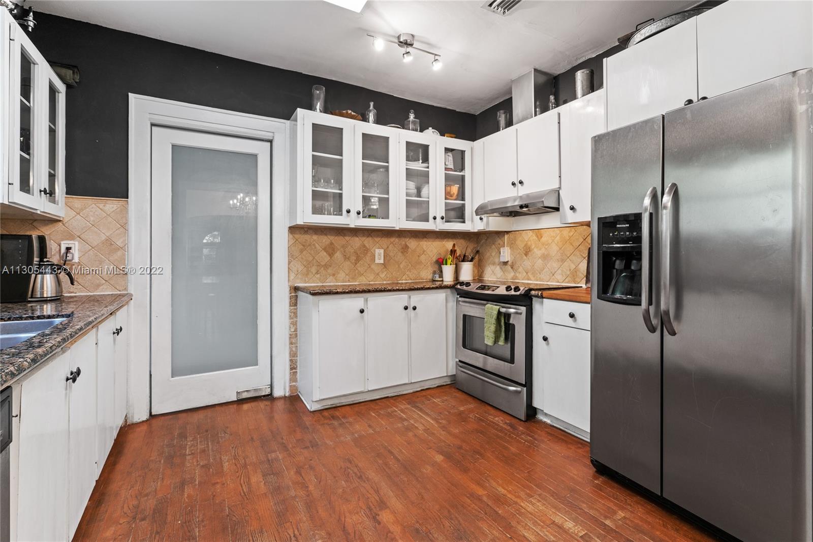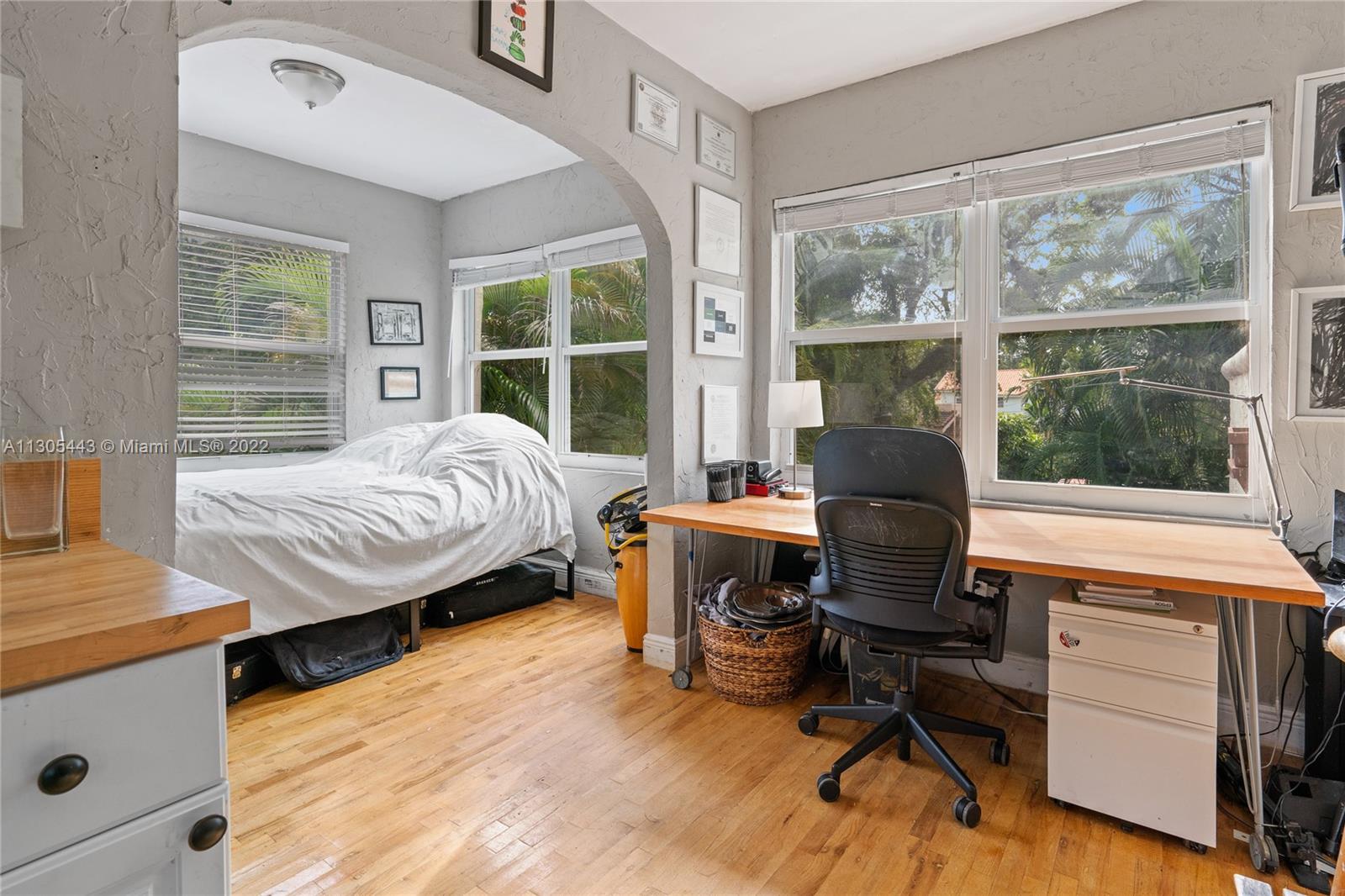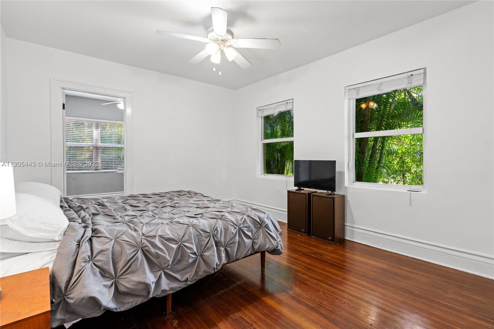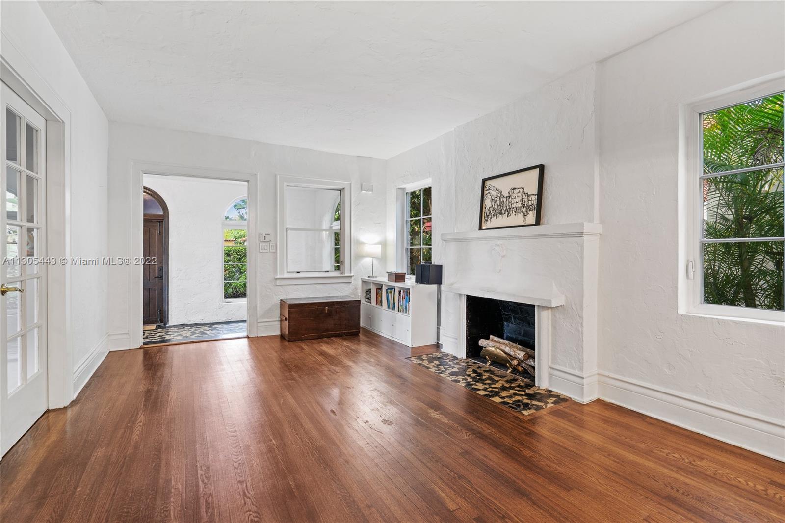 Beautiful home on a corner lot in Coral Gables. Impact Glass windows all over, 2 car garage.Spacious sun room upon entering that has high ceilings.Mosaic tile floors,charming fireplace in living room,large bright windows,hardwood floors,spacious main bedroom suite has a large walk in closet and main full bathroom,large living room and spacious informal dining room.Nice and bright kitchen,granite countertops,marble backsplash,wood chop block, and skylight. Detached 3rd bedroom on second floor, carriage house style.It has lots of light,full bathroom,kitchenette and walk in closet. Enjoy beautiful mature trees and plants giving lots of privacy and quite street. Brick paver walking path surrounds the outside. Newer AC. 2/2 main house plus detached 1/1 on the second floor.