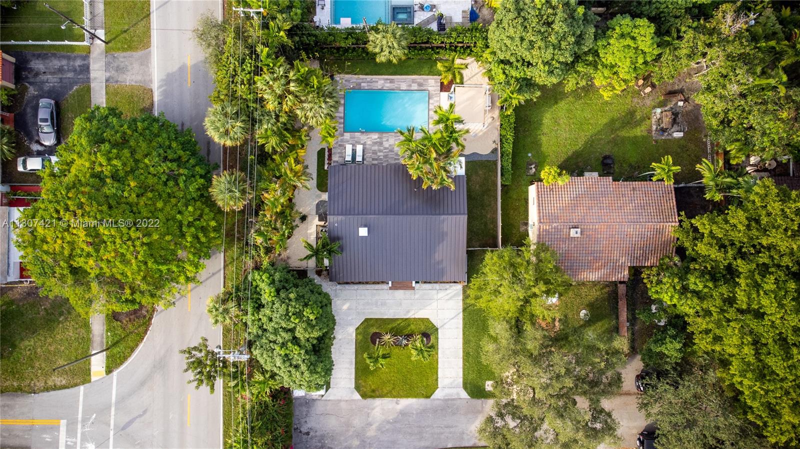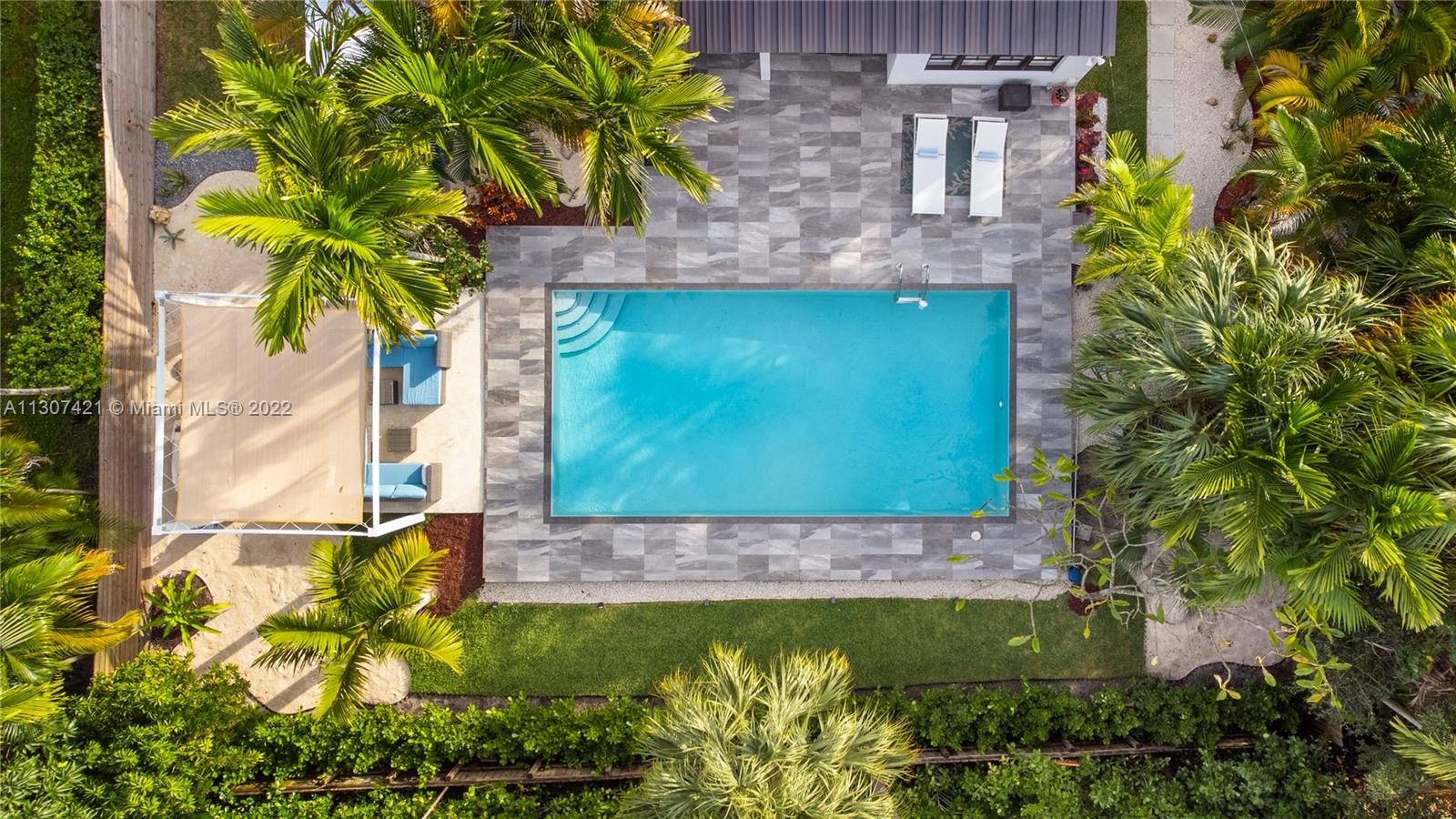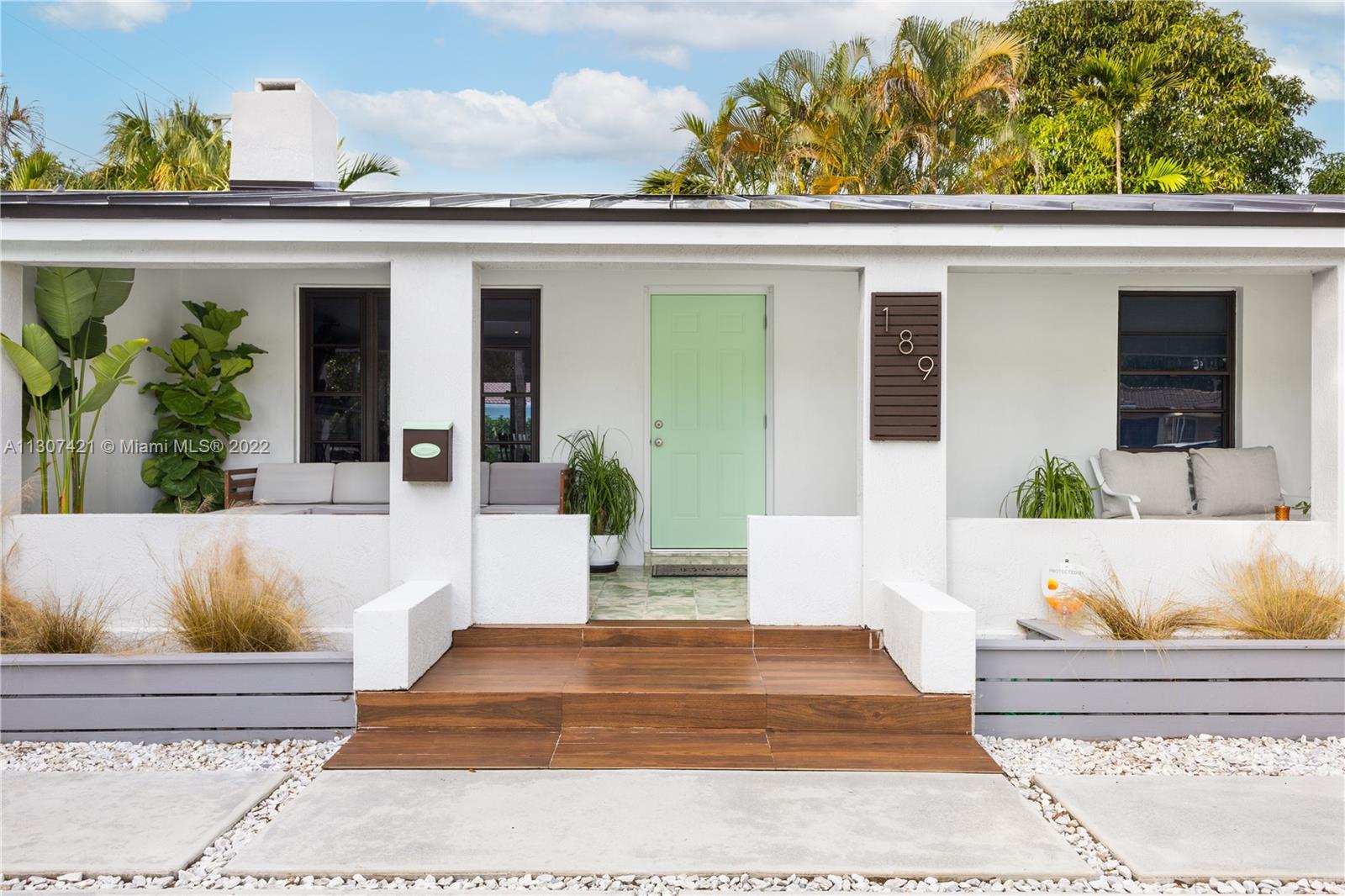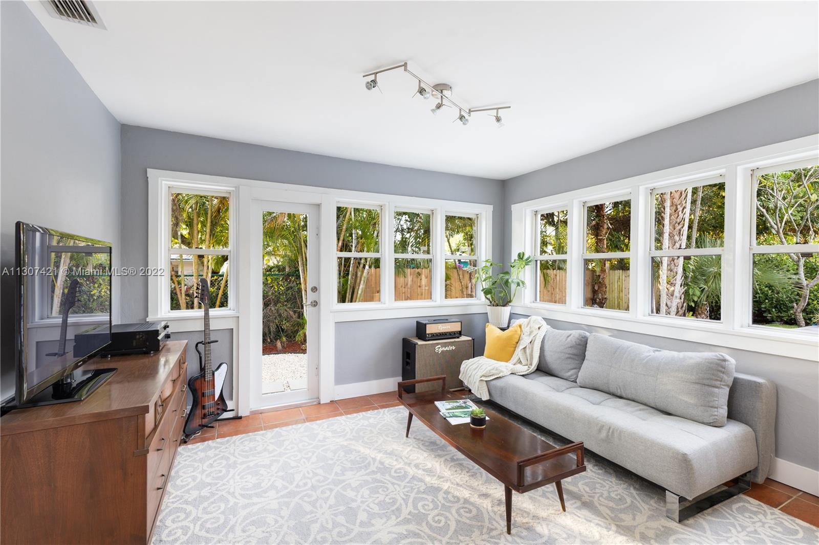 Miami Shores pool home, tastefully re-imagined to fully embrace contemporary Florida living. This home features a new metal roof, septic system, AC , updated plumbing and a modern circular driveway. Hardwood floors in the living room and bedrooms, original fireplace, expansive front porch with cuban tile floors. Newly remodeled baths and kitchen with quartz countertops and counter eating area. Open concept with french doors leading out to the totally redesigned pool area with modern decking, 'sandy beach" areas and a shaded area perfect for your poolside dining table. Enclosed Florida room on the back of the home with pool views, great for a family room or dining room. The original garage has been converted with 1380 sqft total under air Could be used as an office/media room or bedroom.