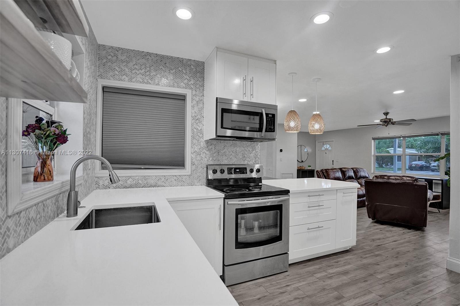 Renovated 3/2 single family home in West Hollywood. Freshly painted interior. Wood look tile floors throughout. Updated modern kitchen with quartz countertops, wood cabinets, mosaic marble backsplash, snack bar and stainless steel appliances. Recessed lighting in main living areas. New interior doors throughout. Smart home: smart outlets, keypad, thermostat, cameras and doorbell camera. Remodeled master bathroom with frameless shower doors and rainfall shower head. Upgraded guest bath. A/C replaced 2019. Newer electrical panel. Tankless water heater 2020. Spacious laundry room. Front loading washer & dryer replaced 2018. Impact Windows on front of the house. Large covered patio. Two storage sheds. Large circular driveway. Room on side of the house for RV or Boat. A must see home!