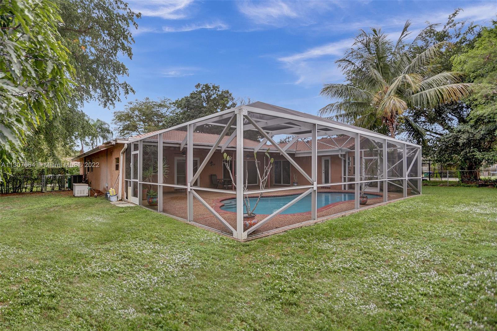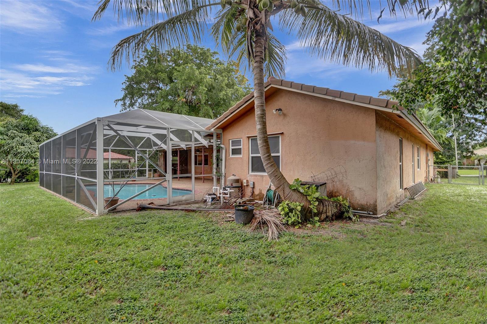 Home Sweet Home! This adorable and spacious, corner lot home in Coral Springs is a rare opportunity just in time for the holidays. This home features 5 bedrooms, 2 full bathrooms, laundry room, 2 car garage, screened-in pool, all impact windows and doors. The kitchen has perfect view to the pool, perfect for hosting. The roof was recently worked on to make sure it's in top shape and carpets were just cleaned professionally. The Hi-efficiency A/C is only 4 years old. As you tour this beautiful home on the outside you'll see a lot of land and even a honey mango tree. No HOA! Special bonus this home has a generator connected to the house with enough power to last at least 2 weeks. Very close to great schools, parks, shopping malls, and Costco. This home is ready for you to make it your own!