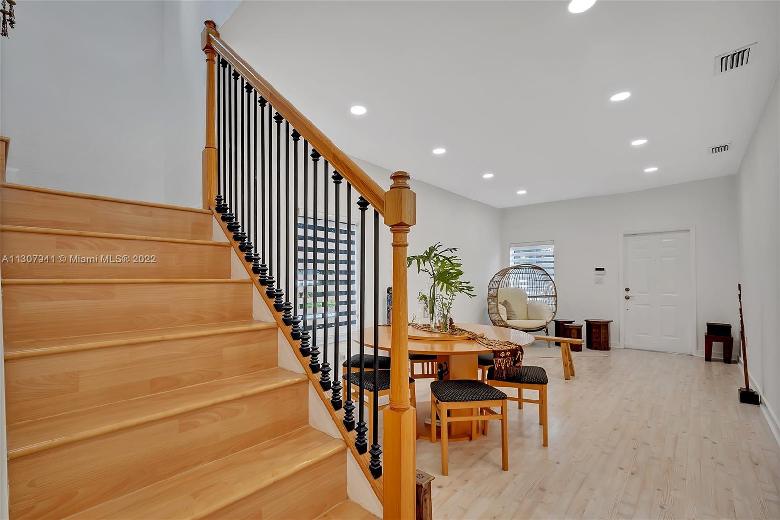 Beautiful Townhouse. CORNER UNIT with 4 Beds - 3.5 Bathrooms. Open Kitchen leading to the family room, large breakfast counter and pantry. Stain Steel Appliances. Laminate floors. Spacious patio with screen, retractable awning great for shadows and entertaining and floor with stamped concrete. Dead End Street location. Electric 1 car Garage door plus 2 parking spaces, and convenience guess parking just across the street. Shutters. Storage. Gated community and gate guard on site. Located in the best School District in Miami Dade County. Close proximity to all major highways with easy access to Dade and Broward County. Great location close to Dolphin Mall and International Mall.