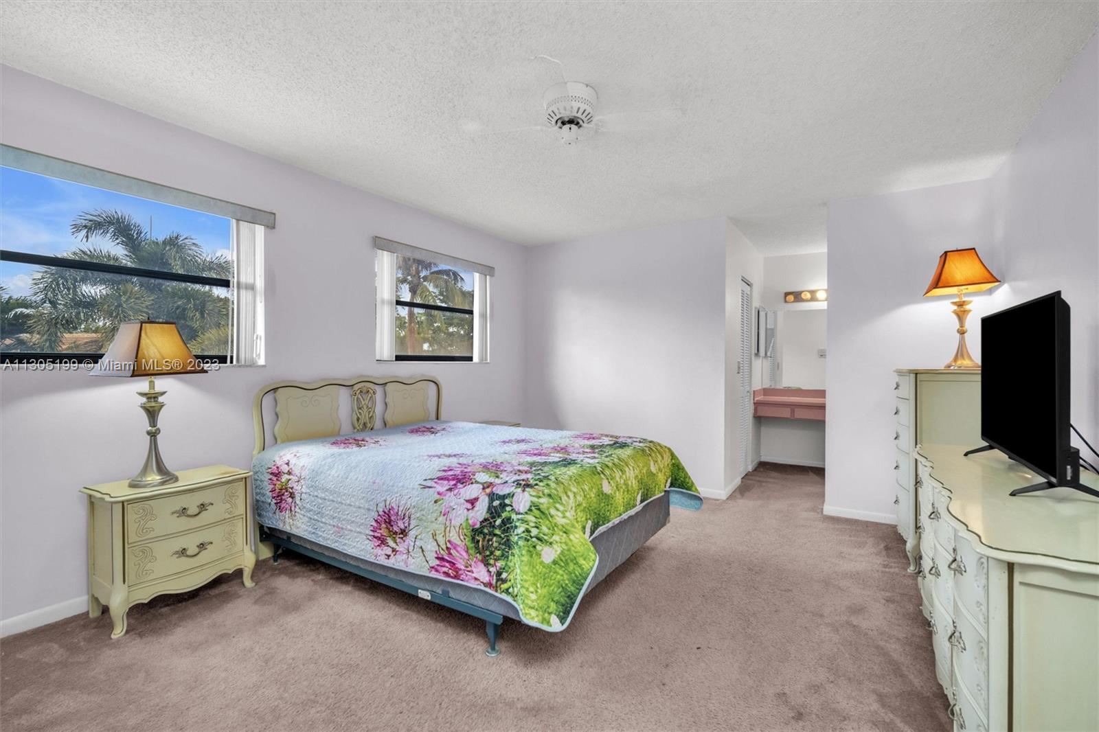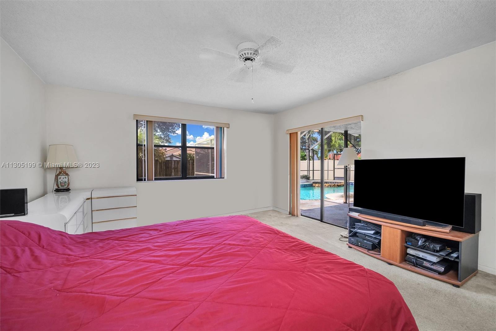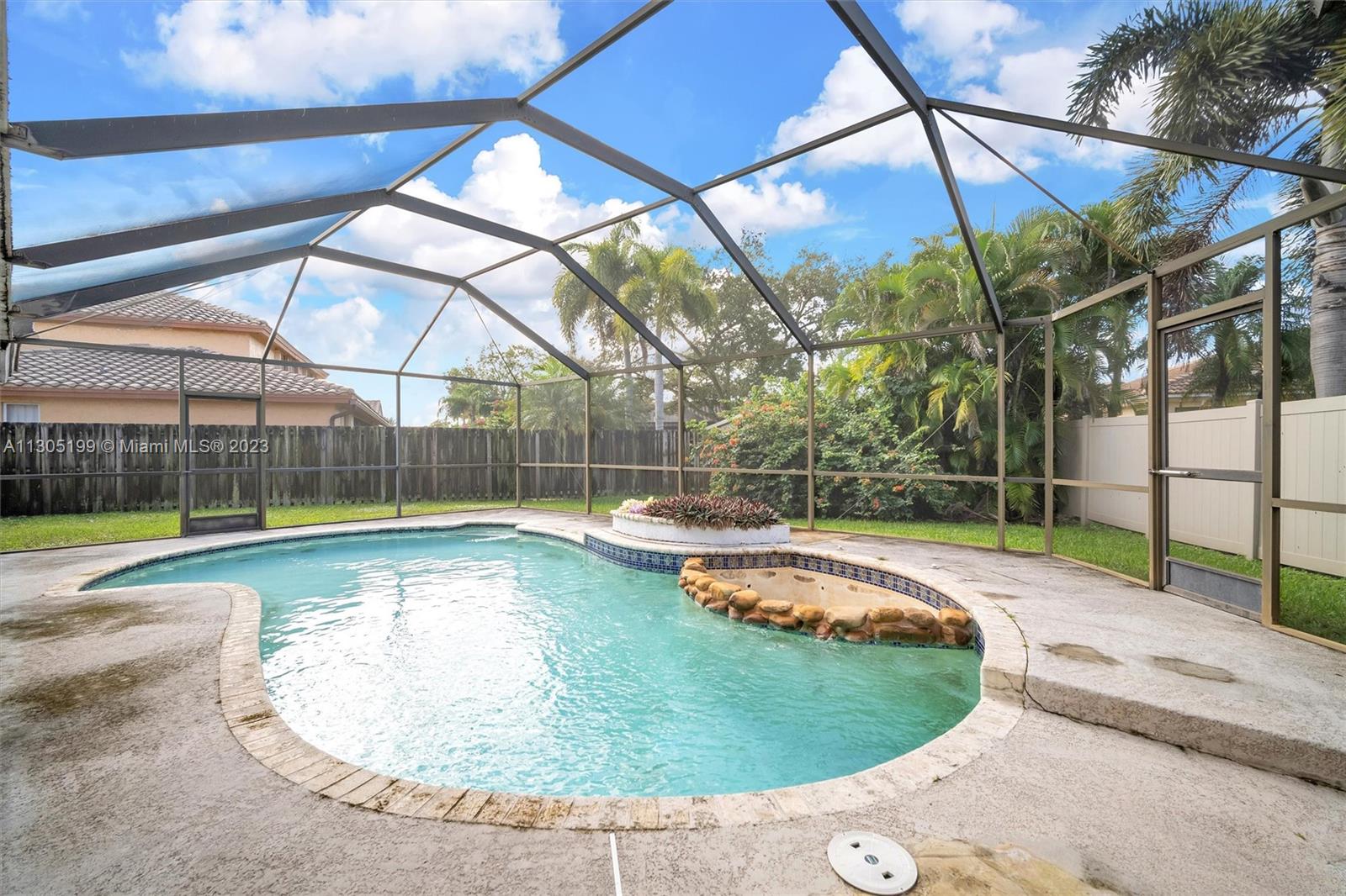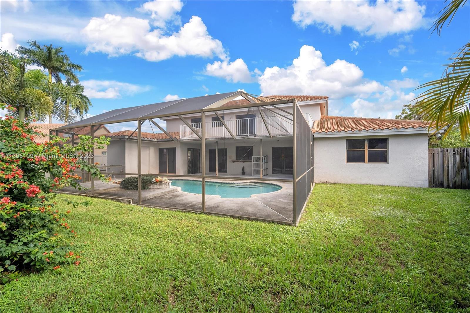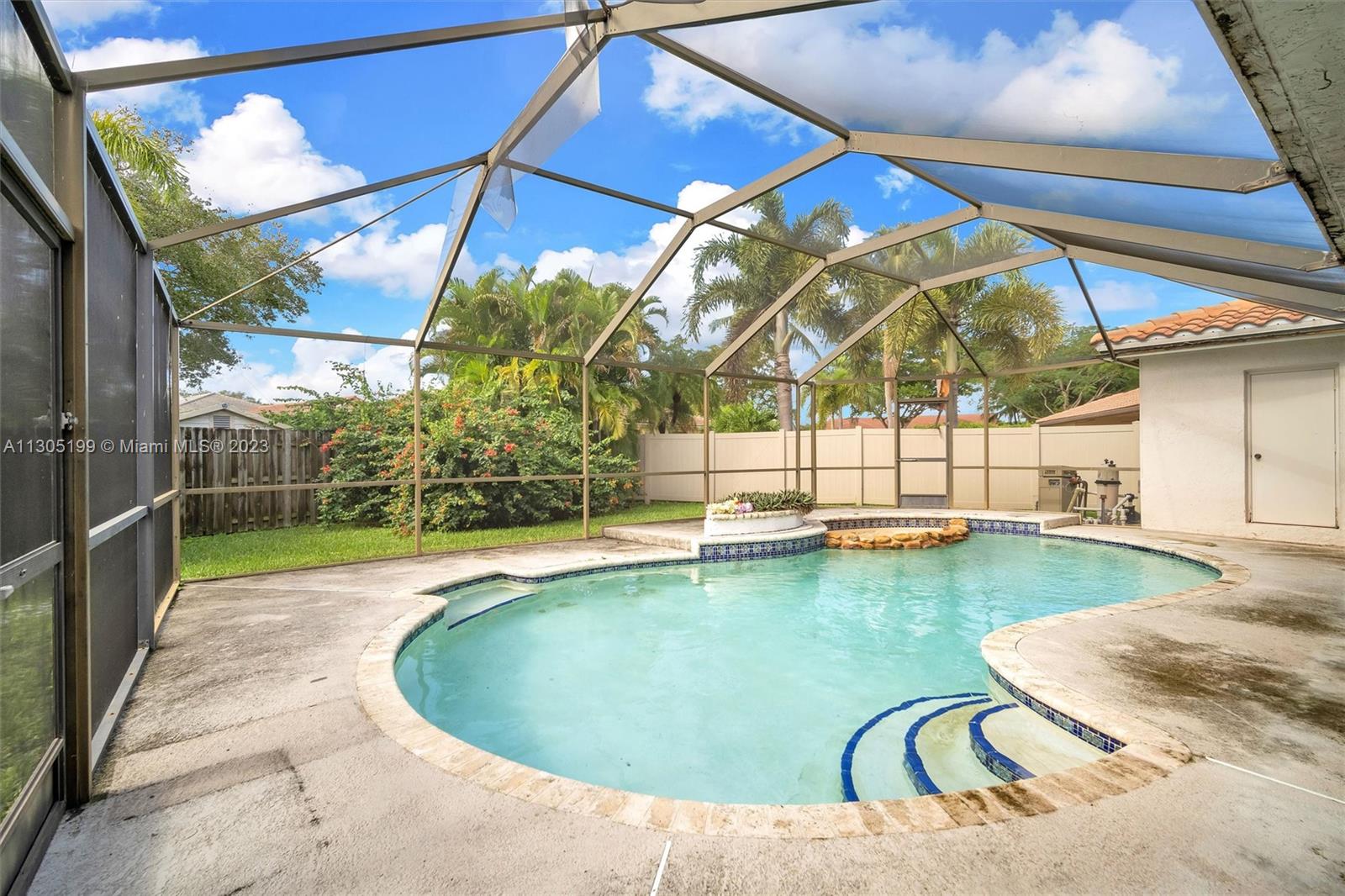 Needs repairs and updating but is currently priced $45k under appraised value! Original owner is bringing this great opportunity to the right Buyer at the right price to make this unique 3 bed + Loft/4.5 bath their very own-- remodel as you see fit. Lots of natural light, separate living areas, FIRST floor Primary suite with walk-in closet and bath with separate tub & shower with ANOTHER full bed with its own full bath upstairs. Spacious, eat-in kitchen, sliders surround and access the Pool inside a screened in partially covered patio, open terrace off the loft, cabana bath, indoor washer-dryer utility room with sink; Roof 2007, circular driveway on an oversized fenced-in pie shape yard. Conveniently located near highway, shopping, restaurants, golf, and schools. Low $350 yearly HOA.