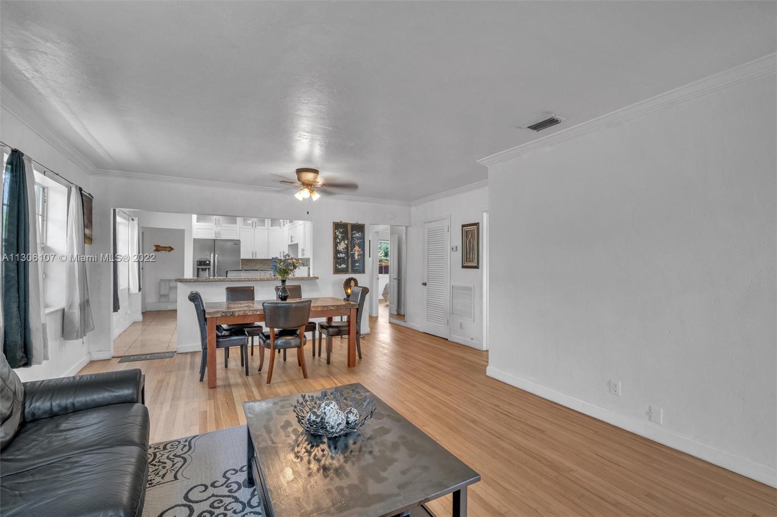 CHARM, LOCATION AND CONVENIENCE! This home is a short walk or bike ride to beautiful Hollywood Beach and Downtown Hollywood. Offering 3 bedrooms, 2 bathrooms, in-law quarter with kitchenette, laundry-utility room, privacy fence and patio. Beautiful oak wood floors and lot’s of natural light will welcome family and friends to your new home. White kitchen with stainless steel appliances, granite counter tops and recessed lights. Both bathrooms have been updated as well. This beauty also features a mother-in law quarter with ceramic tile floors, its private bathroom and separate entrance…  opening the opportunity for additional income. In addition, 2020 water heater, washer and dryer, crown molding, central air, tile roof, RV/boat parking and open porch! FAMOUS!! WORDS, GOING, GOING GONE!