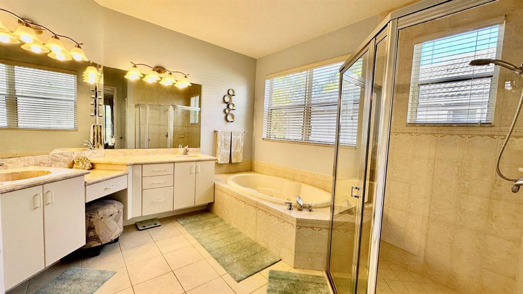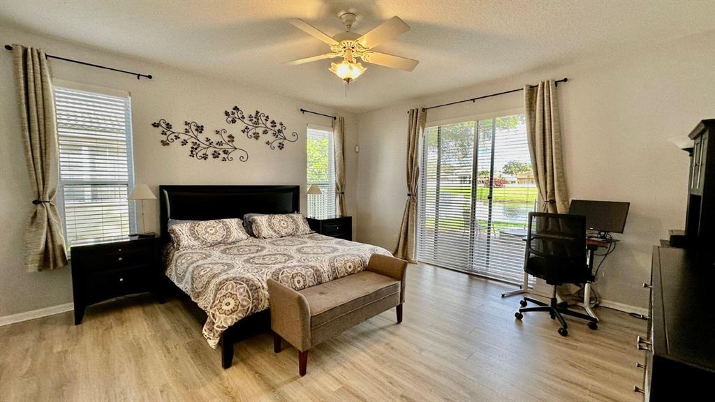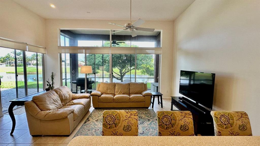 Golf course and water views await you in prestigious Rolling Hills of Lake Estates. This ideal home features high-ceilings and a polished floorplan, inviting abundant natural light throughout. The expansive kitchen overlooks the living and family room with an open exposure to the back yard, lake and golf course. Covered patio, paved area with fire pit, laundry room, oversized master closet, built in closets throughout, newer AC and water heater. Maintained immaculately and with love! Centrally located, close to top-rated schools, parks, beach, shops and restaurants. Maint. includes Cable w/HBO & internet, Alarm & 24/7 manned gate.