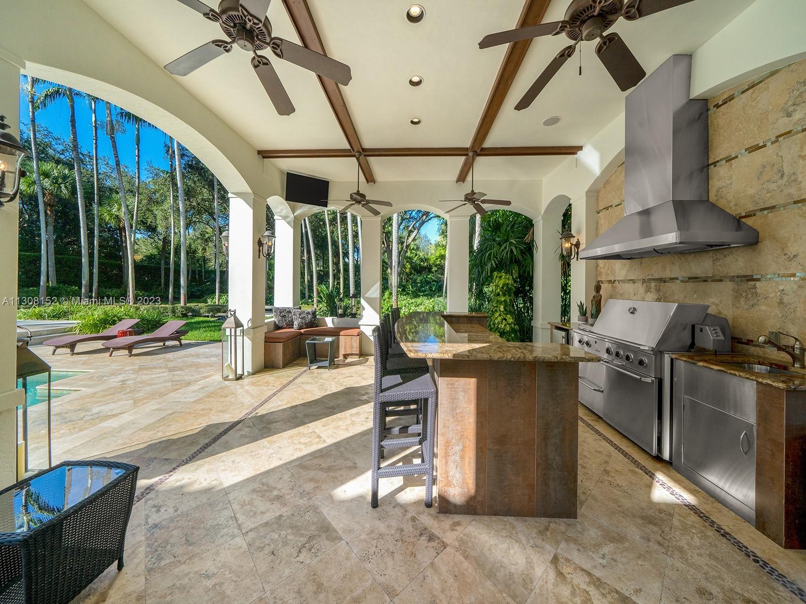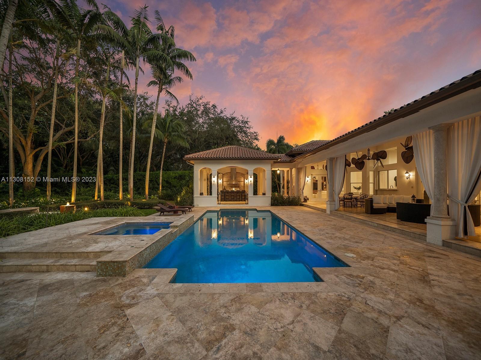 Elegance meets sophistication in the stunning one-story estate located on a quiet no-thru street in NE Pinecrest. This gorgeous home welcomes you w/ a foyer entrance, 14 ft volume ceilings & custom millwork. Discover expansive living areas including formal living & dining rms w/ direct views to the pool & manicured resort-like garden. Custom built designer kitchen w/ breakfast area, top-of-the-line appl & walk-in pantry. Huge master suite offers 3 WIC, sitting area, gym/studio rm, renovated spa like bath w/ custom cabinets & onyx finishes. Enjoy an outdoor oasis w/ covered terraces, Gazebo, fully equipped summer kitchen, ample yard, & exquisite heated pool/spa. Other features: temp-controlled wine rm, 3-car gar, generator, 1000 gal gas tank, wall & gated, security cameras, 3 fountains.