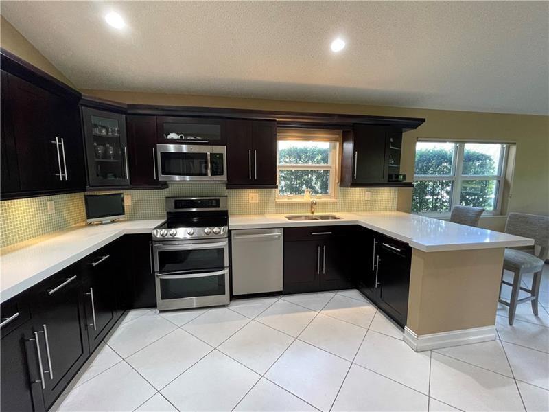 LAKE FRONT home in The Lakes...PRICED TO SELL..!! 4 bed, 2.5 bath IMPACT WINDOWS/DOORS & NEW ROOF Quiet street that ends in a cul-de-sac. Peaceful and private lake views from all areas. Flooded with natural light. Vaulted ceilings in living areas and primary bedroom. Fabulous backyard with a hurricane rated pergola. Shaded large patio where you can grill while enjoying lake breezes and amazing sunsets. (Patio furniture conveys) Room for pool. Spacious open concept kitchen with quartz counters, glass backsplash, LG & Bosch appliances and lighted wood cabinets. Split floor plan with private primary bedroom. Large office has custom built-ins. California closets in bedrooms. Paved patio, drive-way and walkway to double glass doors. "A" rated schools. 24hr guarded gate. In the heart of Weston!