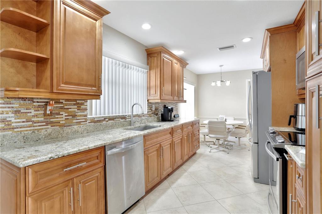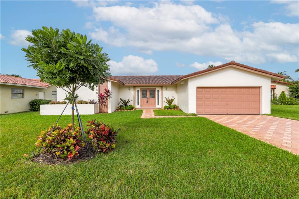 What a find this 3 bedroom plus den / bonus room very well-maintained home is. Great location in a cul-de-sac and conveniently located to shopping, schools and restaurants. Offering many upgrades, newer kitchen (2 pantry closets with pull-outs) and appliances, updated bathrooms, hurricane impact front door, accordion hurricane shutters, rust removal system for lawn sprinklers, A/C (2015) to name a few. More recent improvements include paver driveway, fully fenced yard, house painting, popcorn removal, hot water heater and new sliding glass doors all between 2020 and 2021. New pool skimmer this year. There is no HOA. Let's get it sold!!!