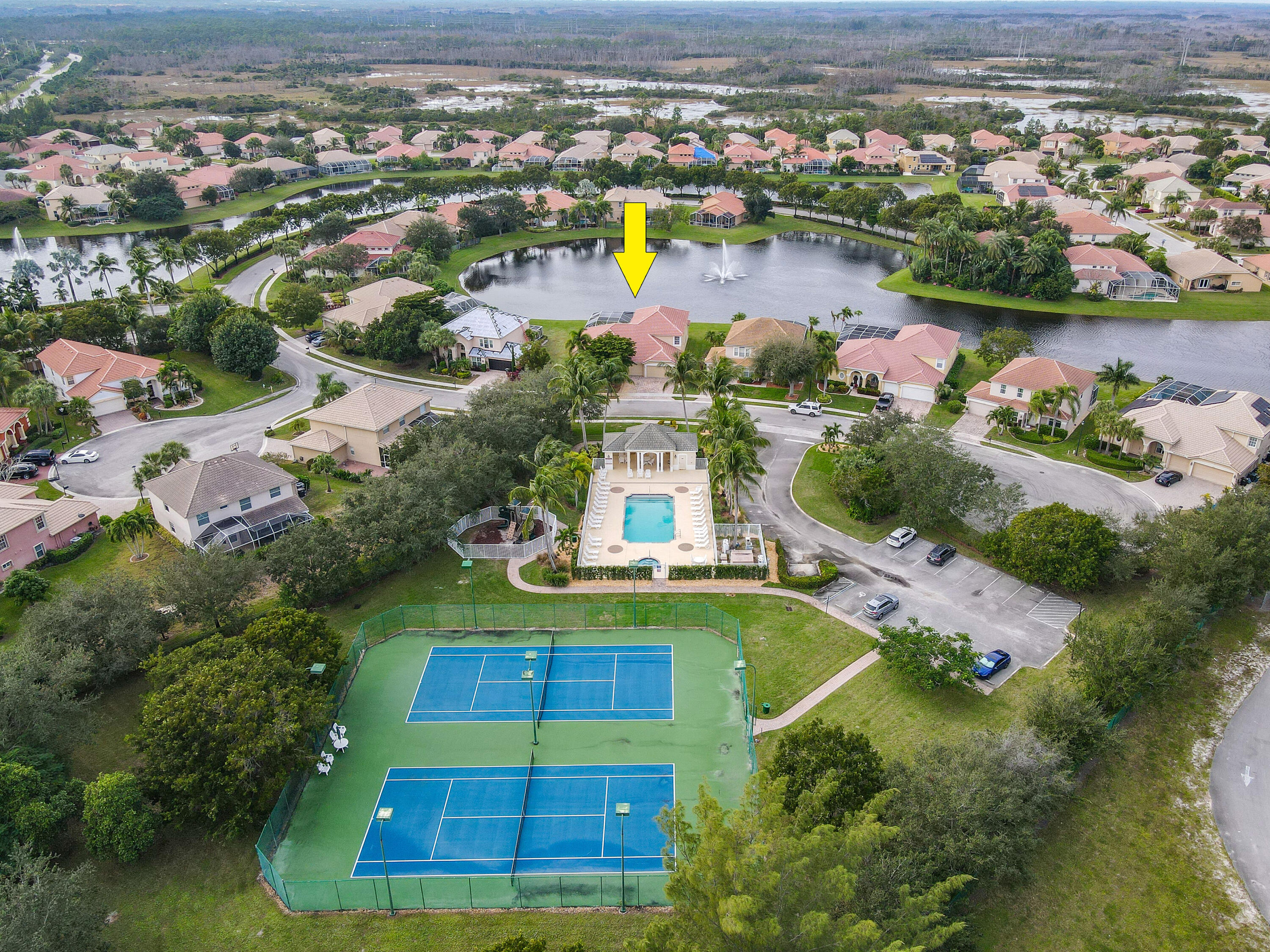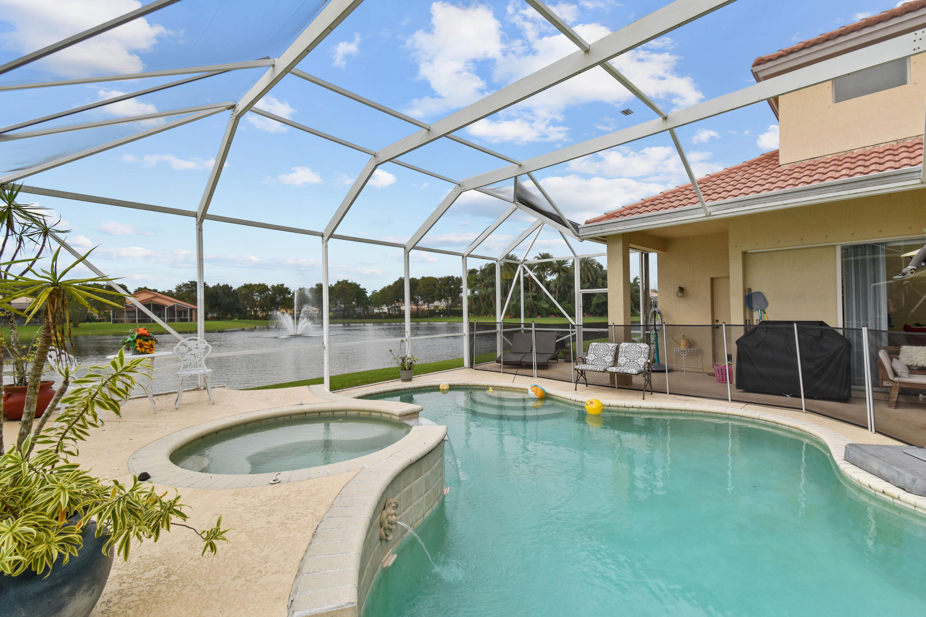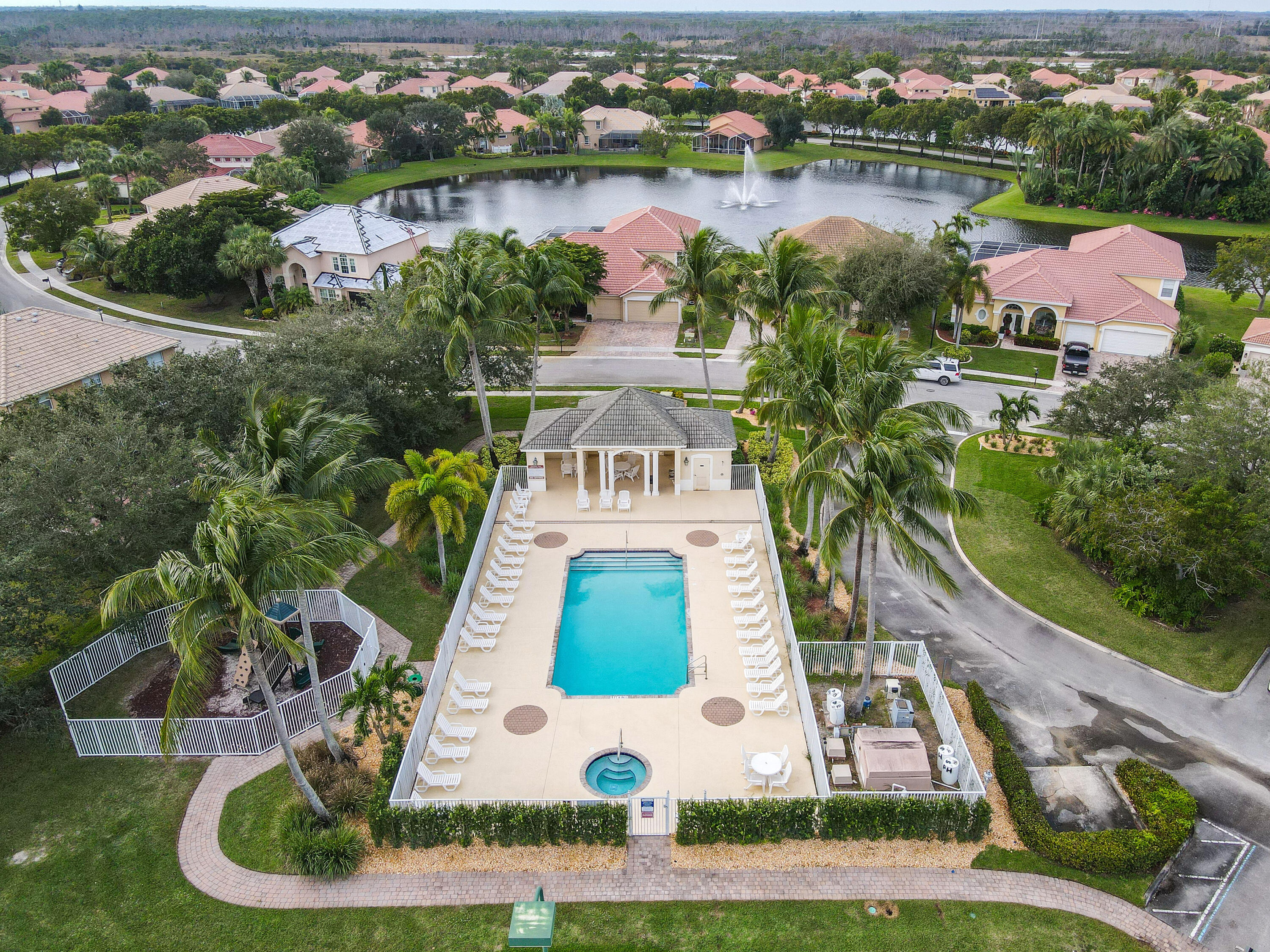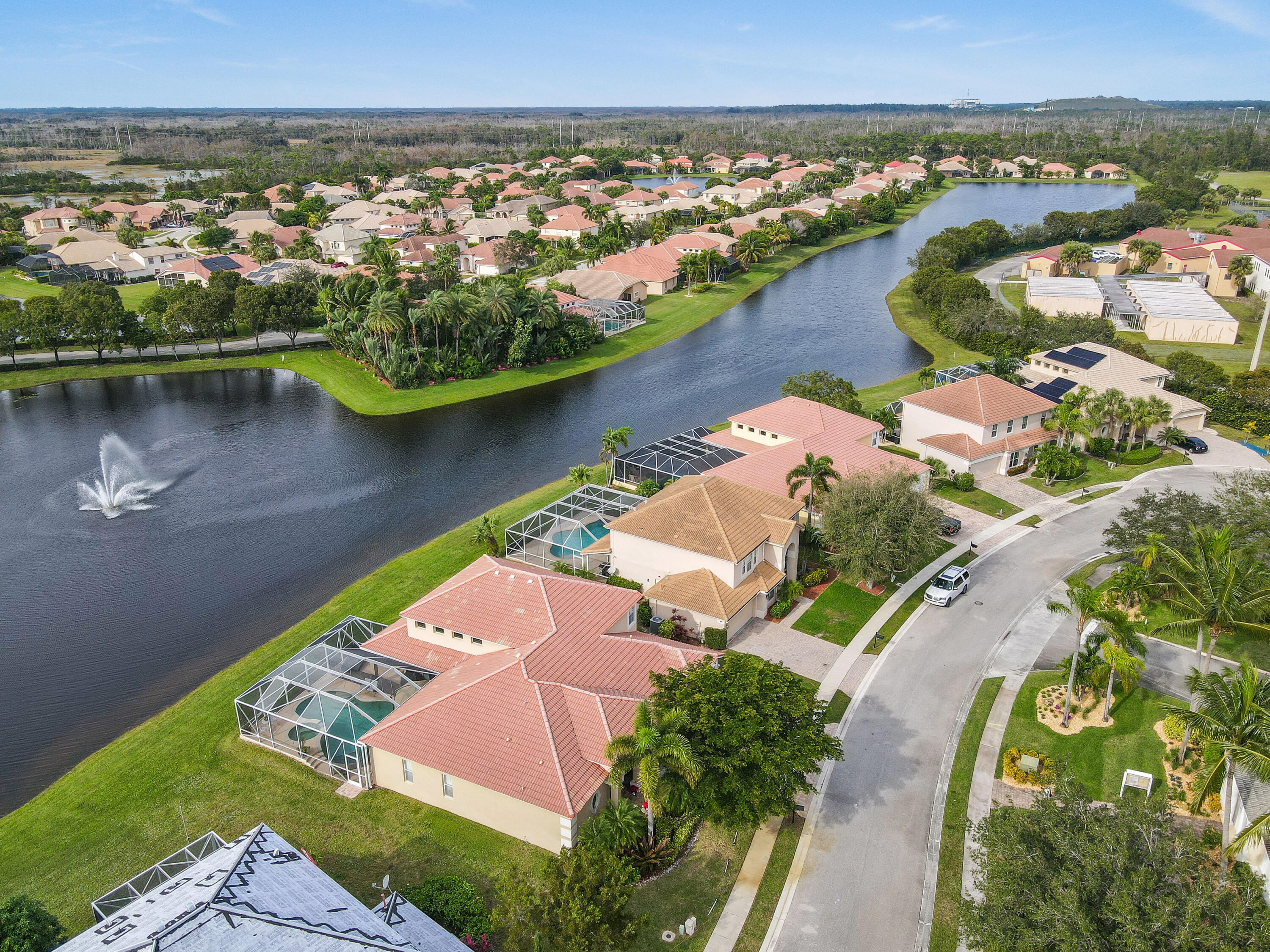 This home offers an amazing open floor plan.The lake view invites relaxation as you enjoy the sunset by the pool basking in its ambience. Master bedroom on the first floor and the other three rooms are as well (in the other wing of the house) giving you privacy. The loft upstairs can become a bedroom the second floor has the two lofts, five bedroom and full bath. New A/C unit with permit installed downstairs. Central Vacuum System.The three spacious cars garage offers spaceous room and includes an infrared sauna( for sale as well) to help you feel amazing. Across from clubhouse, tennis, playground and an array of guest parking spaces.