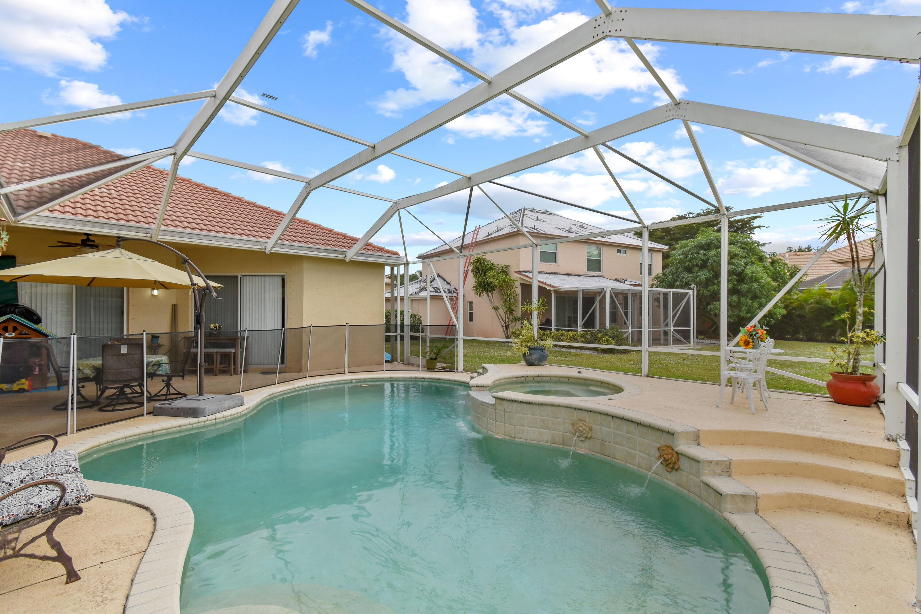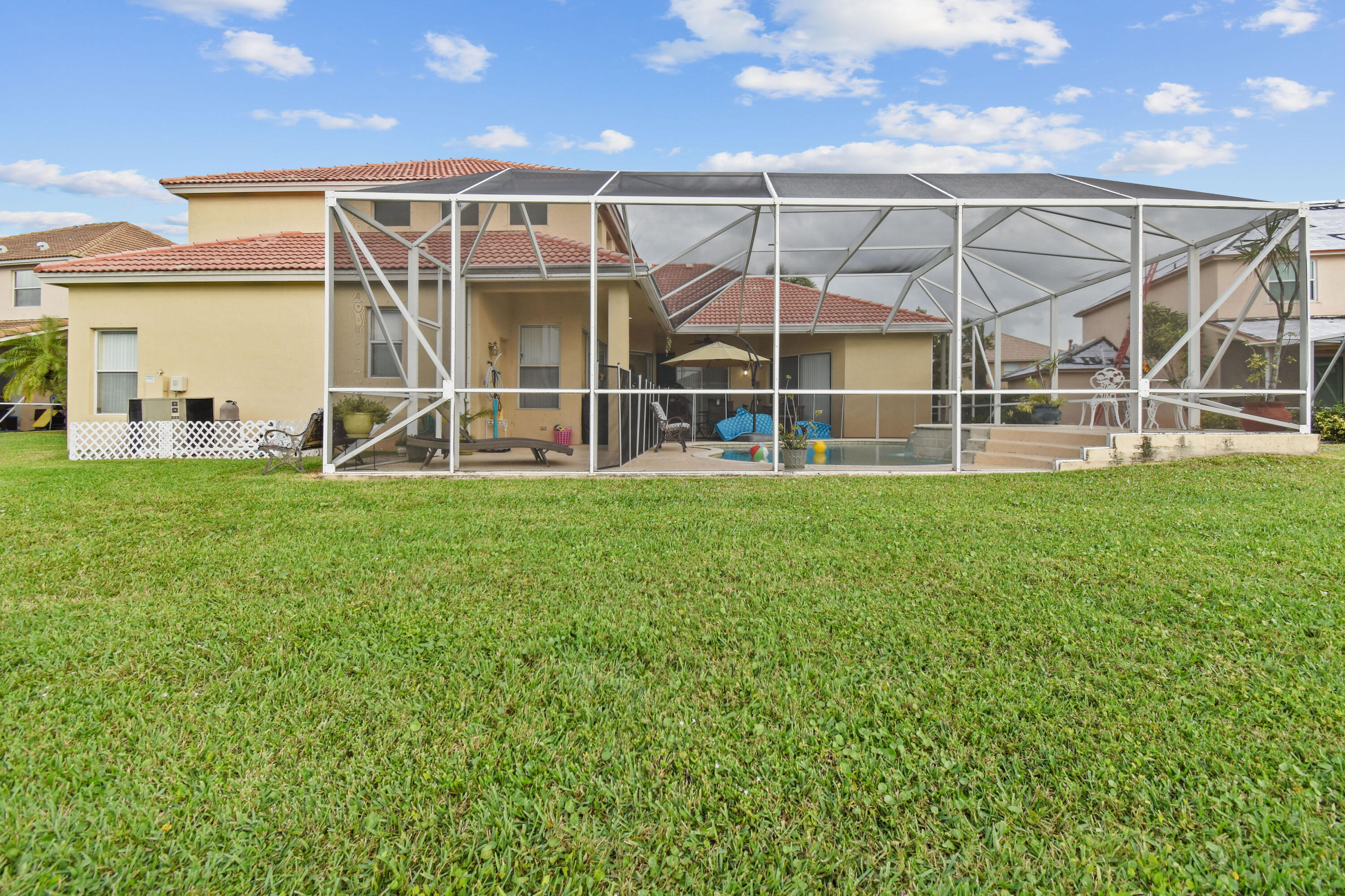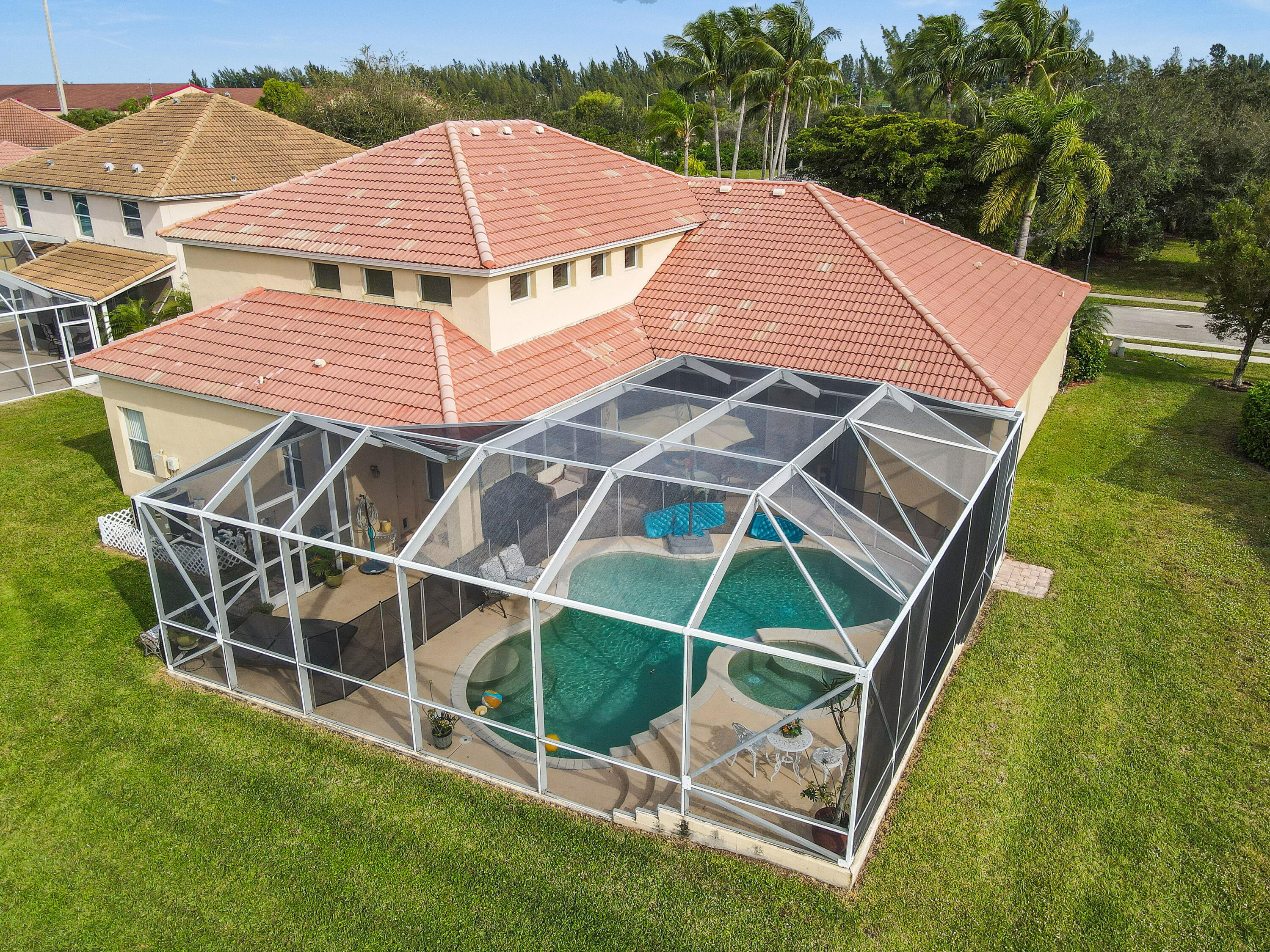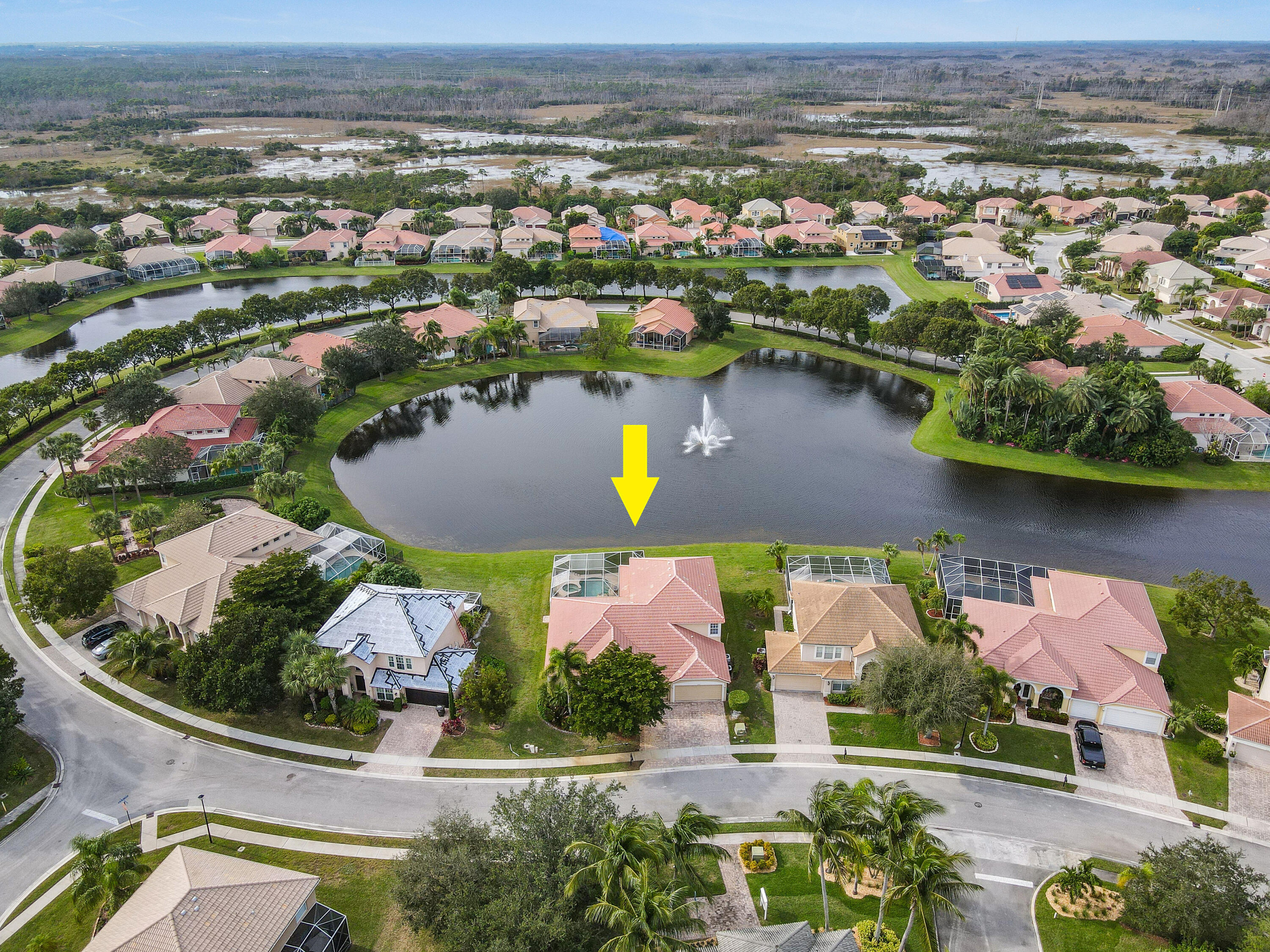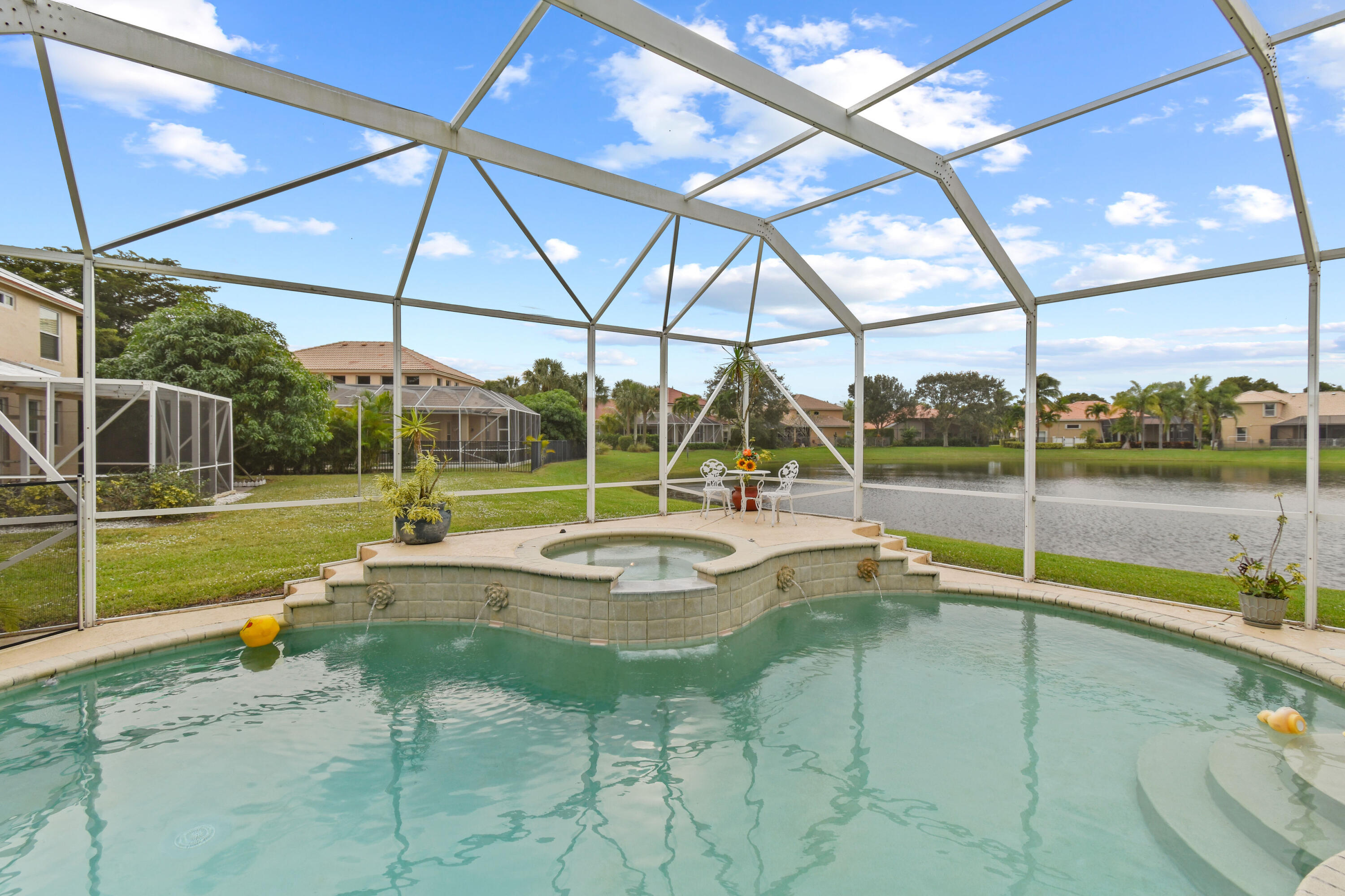 This home offers an amazing open floor plan.The lake view invites relaxation as you enjoy the sunset by the pool basking in its ambience. Master bedroom on the first floor and the other three rooms are as well (in the other wing of the house) giving you privacy. The loft upstairs can become a bedroom the second floor has the two lofts, five bedroom and full bath. New A/C unit with permit installed downstairs. Central Vacuum System.The three spacious cars garage offers spaceous room and includes an infrared sauna( for sale as well) to help you feel amazing. Across from clubhouse, tennis, playground and an array of guest parking spaces.