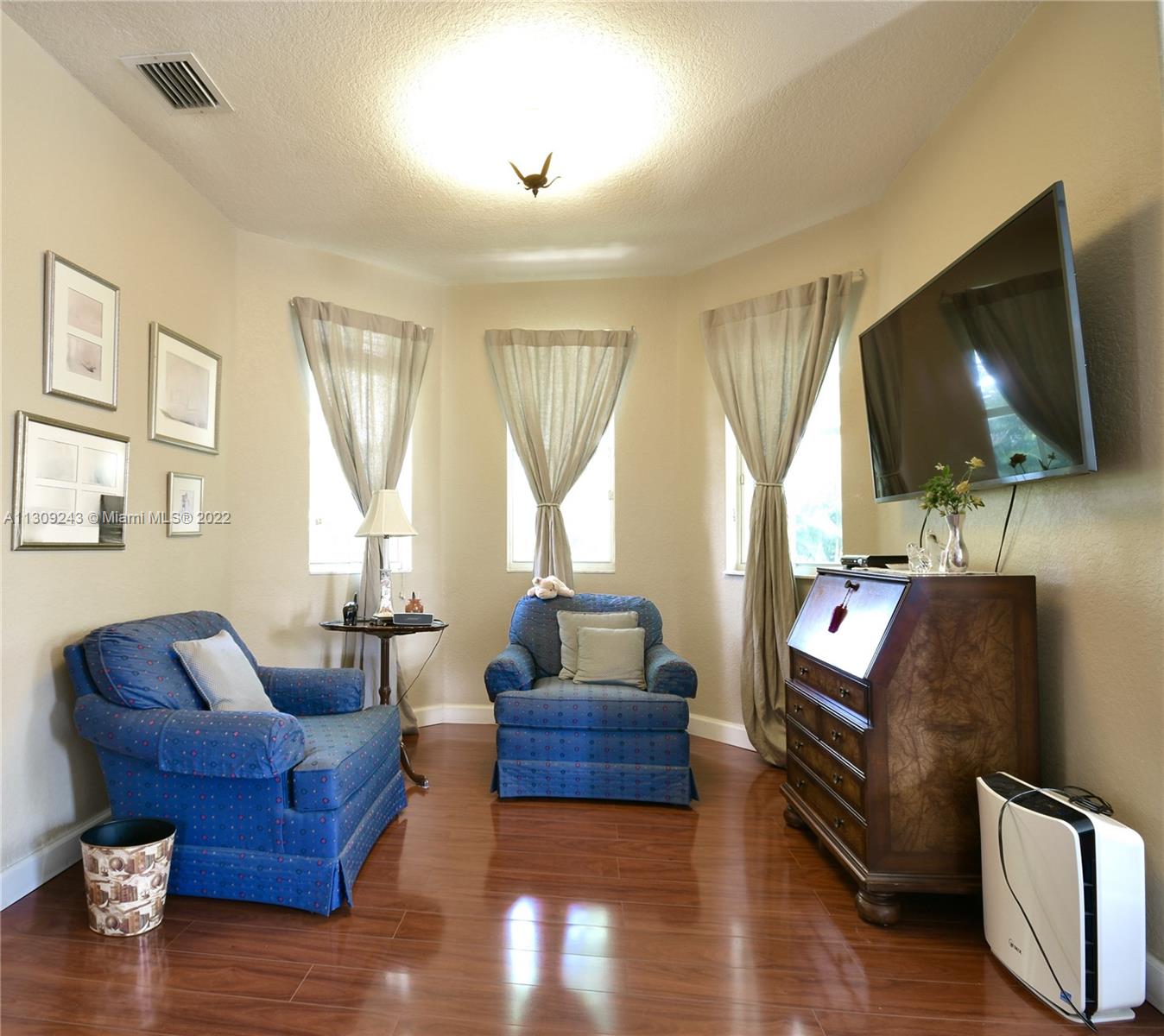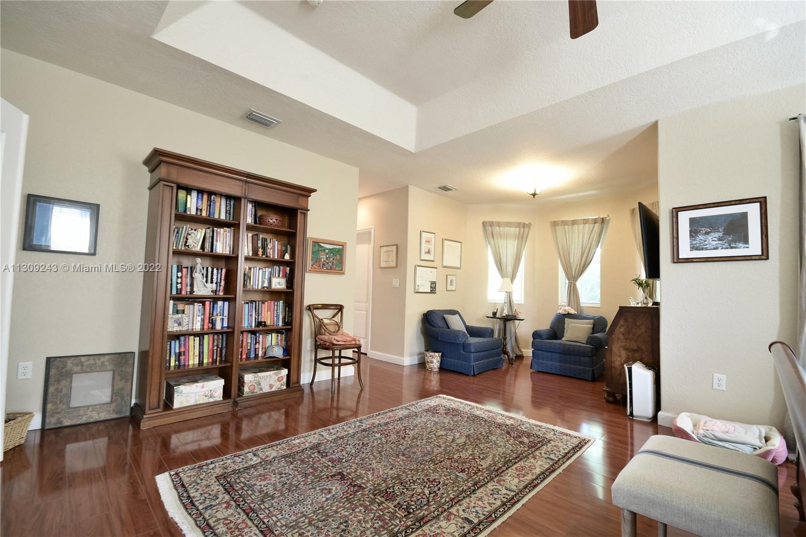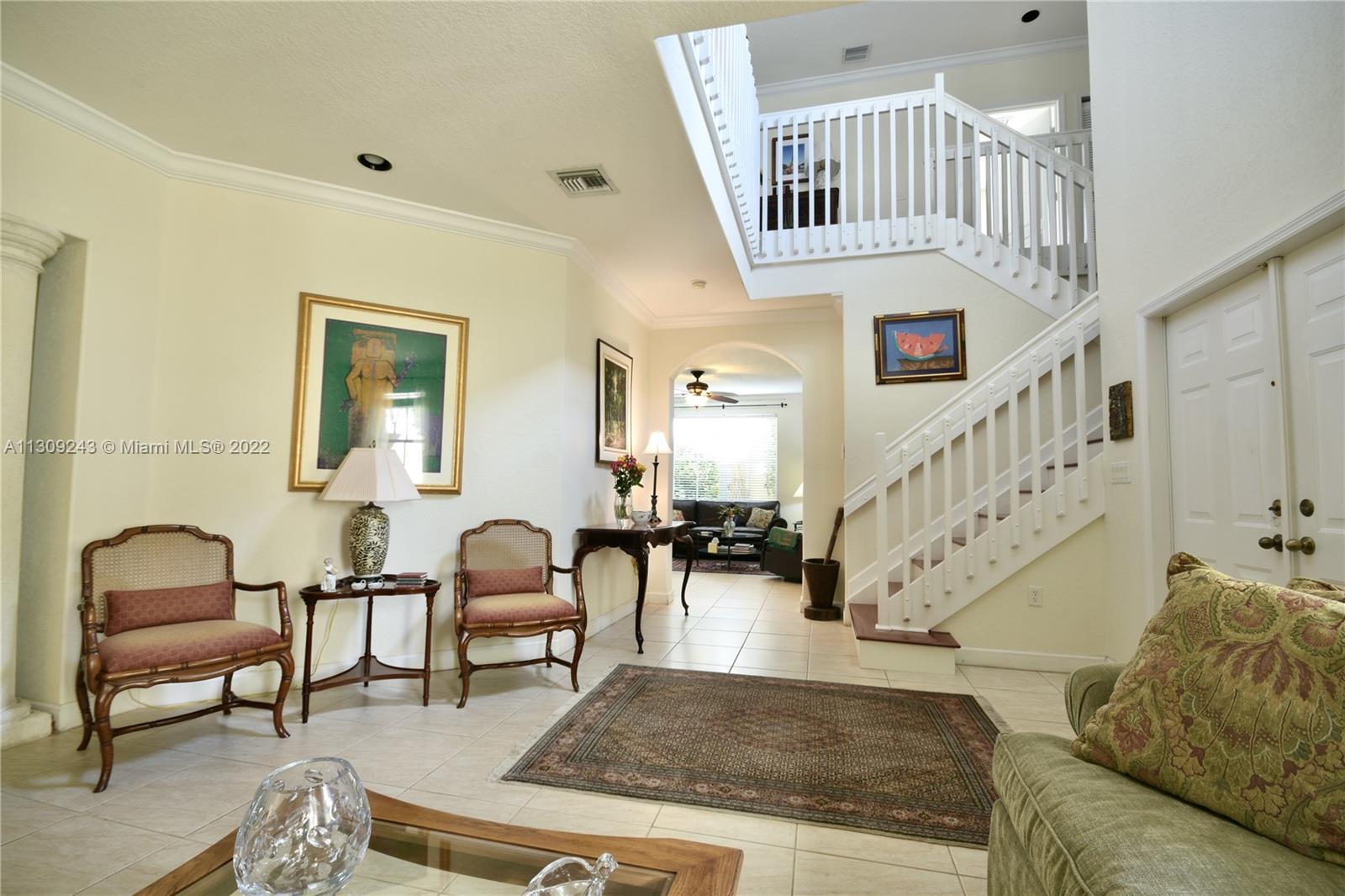 Beautiful & spacious home in the desirable community of Goldvue Estates. 4 Bedroom & 3.5 Baths on 2997 Sqft of living area. Ceramic tile throughout 1st floor. Property features a comfortable living room area, separate formal dining room, an inviting open kitchen with Stainless Steel Appliances, Granite counter tops and breakfast area. Big family room. Oversized Master Bedroom with a sitting area. Exclusive and private green view at backyard. The Community has a nice Pool & a Kids Playground. Excellent location, in the heart of Doral. Close to fine restaurants, Shopping Malls and entertainments. Walking distance to Walgreens, Publix & Starbucks. Close to Excellent Schools. LOW HOA $260, 24Hs security guard. CHECK OUT **VIRTUAL TOUR MATTERPORT**
