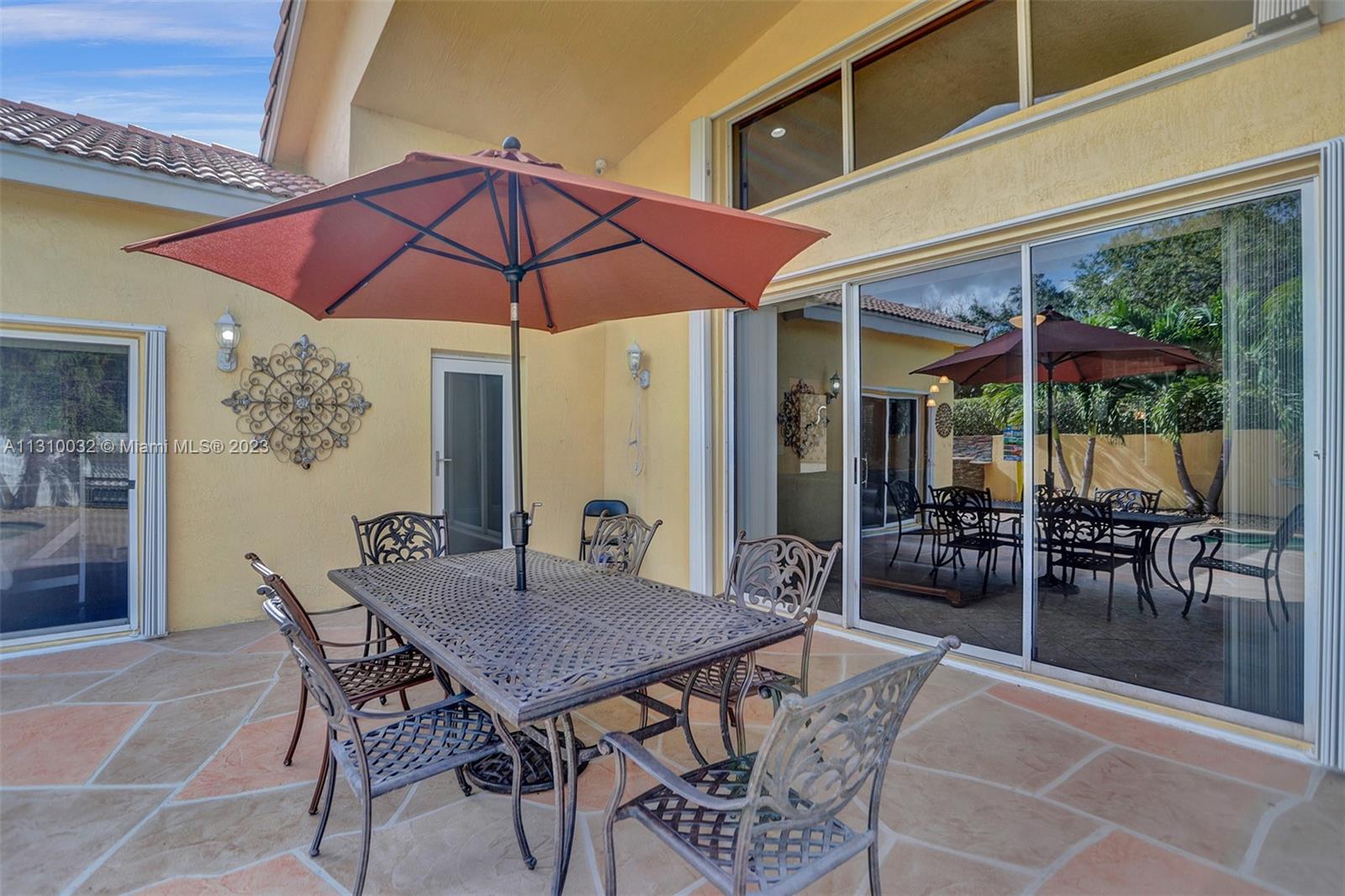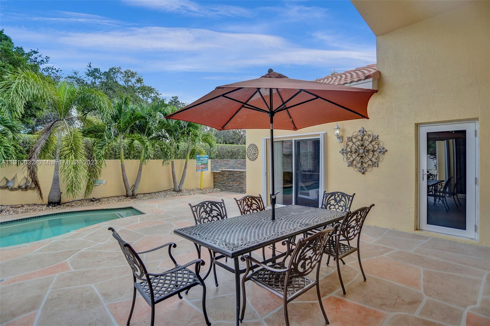BACK ON THE MARKET! Come experience this lovely family home with 4 bedrooms, 2.5 bathrooms, 2 car garage, heated pool and outdoor kitchen area. Split floor plan with primary bedroom on the left and the other 3 other bedrooms on the right side. Expansive primary bedroom with 2 closets. Primary bathroom has two sinks, tub and shower. Large open kitchen concept with island and Newer kitchen appliances. Newer A/C, Water Heater, washer and dryer. Impact front door and bathroom door leading to yard. Accordion shutters for all windows and sliding doors excluding one window which is impact.