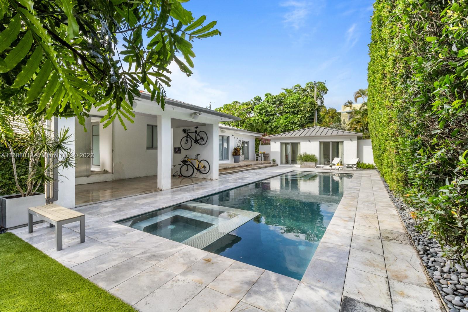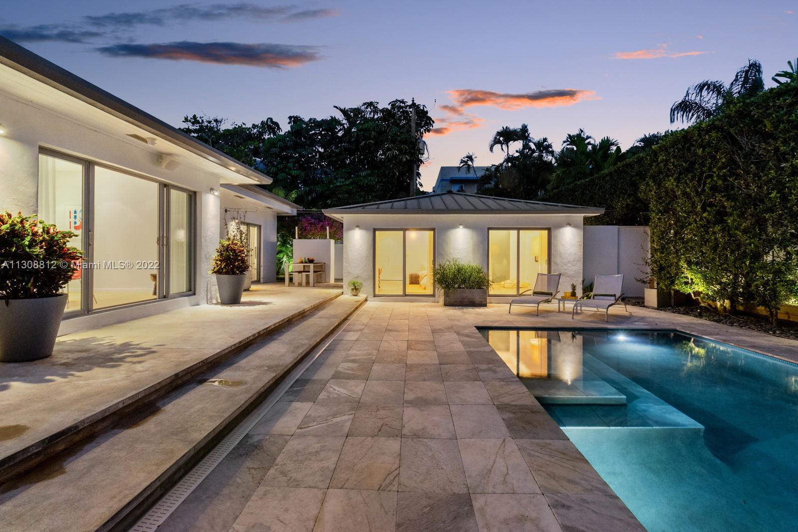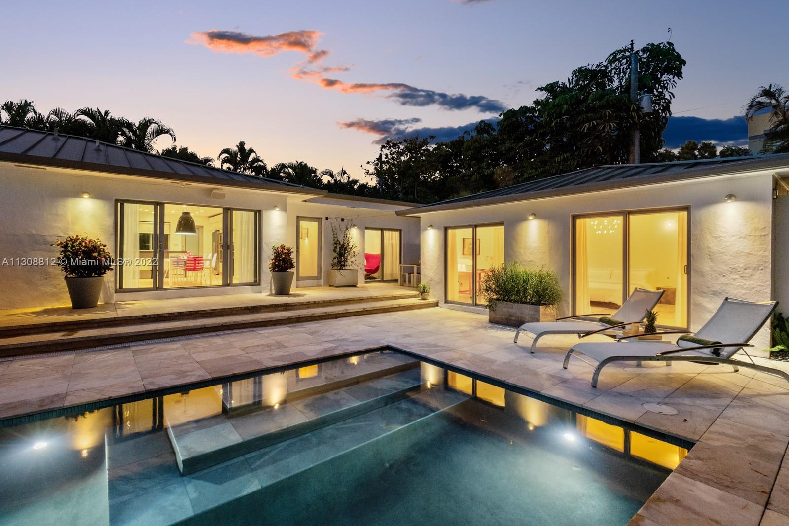Zen-inspired meticulously detailed residence that exudes a brilliant blend of tranquility, sophistication, and elegant simplicity. Built in the 50’s with solid, quality craftsmanship, it was completely remodeled in 2007 and refurbished in 2022 to the ultimate perfection. The open concept, sun drenched main home includes 2 beds 2 baths and the bungalow-style master bedroom, separated from main house to facilitate total privacy, with a double sink vanity and shower-steam room. Details include wood/concrete floors, formal living & dining rooms, modern kitchen, metal roof, high impact glass windows/doors, audio & camera surveillance & alarm systems, and a spectacular 41-foot long rectangular saltwater pool/spa surrounded by lush landscaping and accent lighting.
