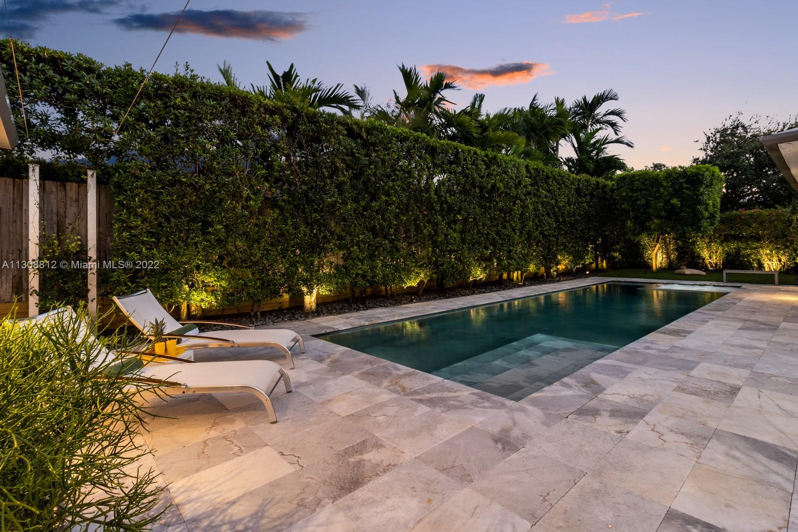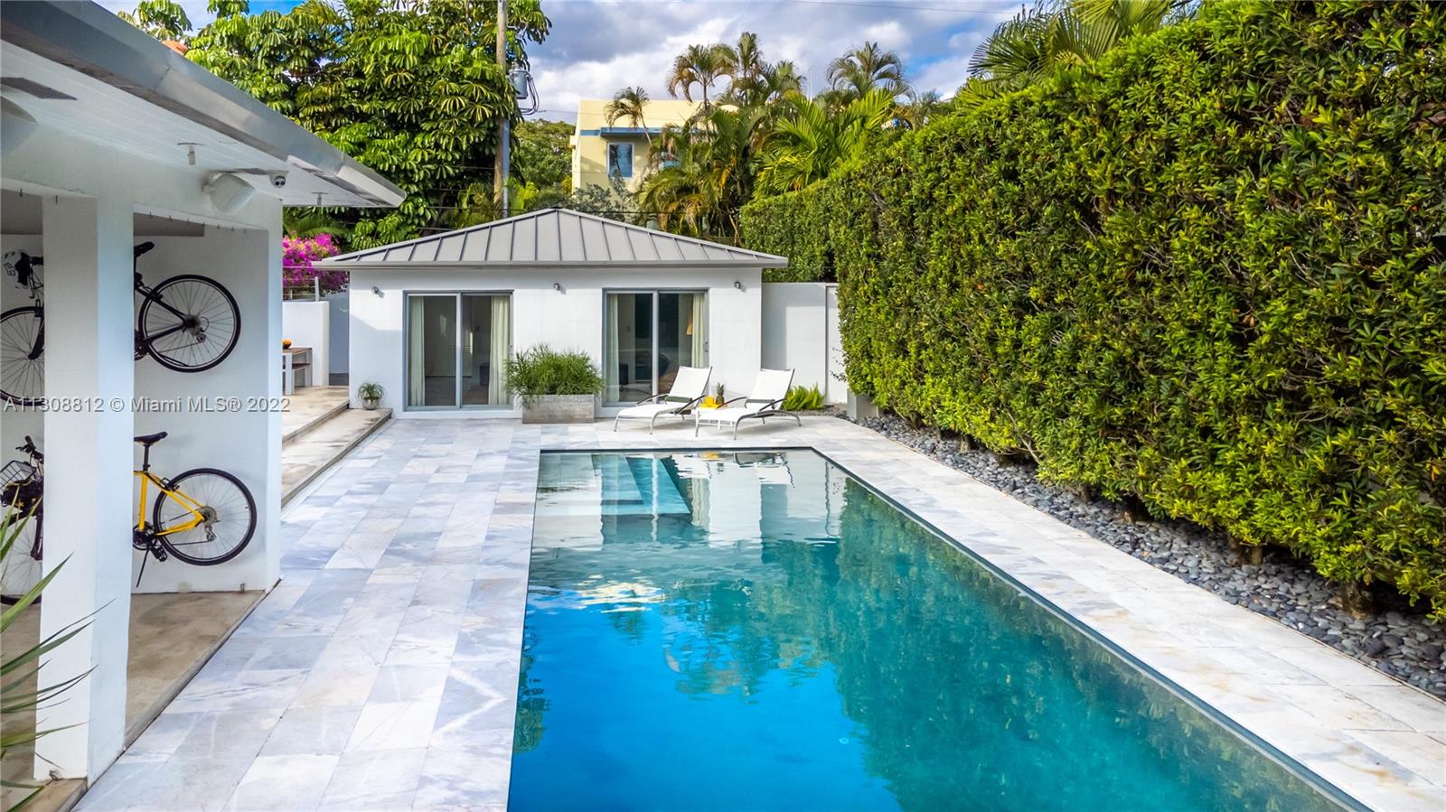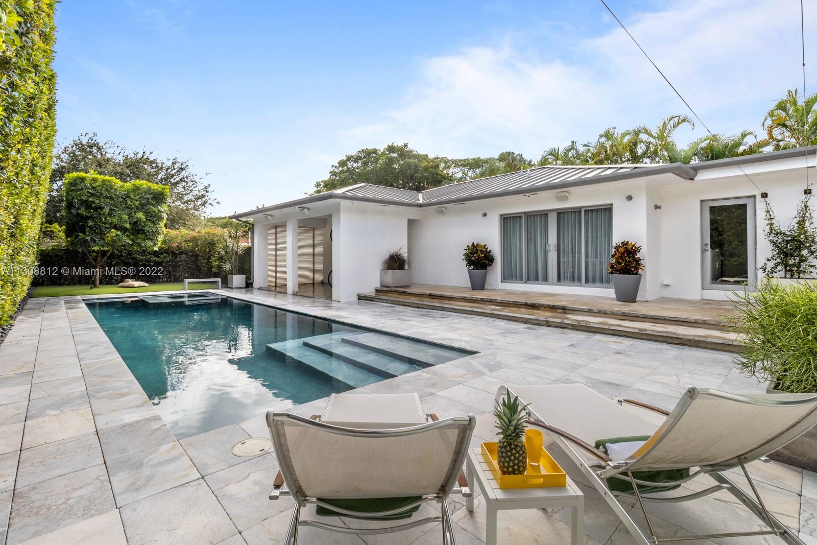 Zen-inspired meticulously detailed residence that exudes a brilliant blend of tranquility, sophistication, and elegant simplicity. Built in the 50’s with solid, quality craftsmanship, it was completely remodeled in 2007 and refurbished in 2022 to the ultimate perfection. The open concept, sun drenched main home includes 2 beds 2 baths and the bungalow-style master bedroom, separated from main house to facilitate total privacy, with a double sink vanity and shower-steam room. Details include wood/concrete floors, formal living & dining rooms, modern kitchen, metal roof, high impact glass windows/doors, audio & camera surveillance & alarm systems, and a spectacular 41-foot long rectangular saltwater pool/spa surrounded by lush landscaping and accent lighting.