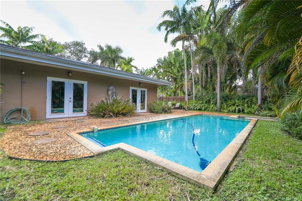 Gorgeous home in desirable community of Poinsettia Heights! Upgraded, renovated and expanded home features 3 large bedrooms and 3 full bathrooms, travertine marble floors throughout, designer kitchen with breakfast bar, granite and stainless steel appliances, formal living room and formal dining room, dual AC systems, french doors open to the private pool and spa area with new heater and salt chlorination system, fully fenced, high impact windows and doors, spacious master suite with separate jacuzzi tub and shower, second private master suite with walk-in closets, custom blinds and drapes, antique brick paved driveway and patios, and many upgrades more! Located in one of the most desirable neighborhoods of Fort Lauderdale and within steps to Wilton Manors!